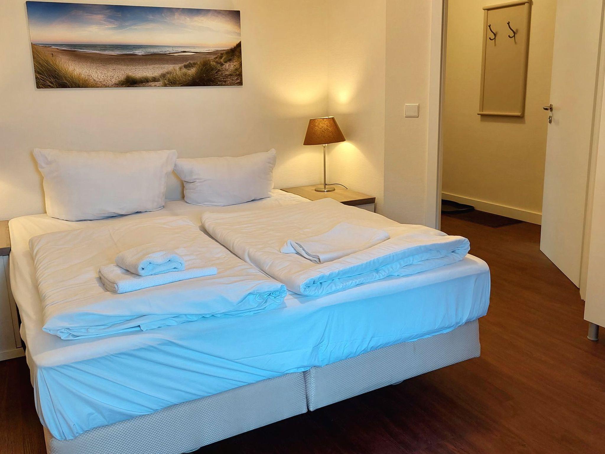 Die 2-Raum-Nichtraucherwohnung 16RB82 befindet sich im zweiten Obergeschoß des Hauses Düne 9 und ist mit einer Größe von 62 qm für bis zu 4 Personen ausgestattet. Der Flurbereich führt zu den einzelnen Räumen, darunter das Schlafzimmer, das Badezimmer und den kombinierten Wohn- und Essbereich.