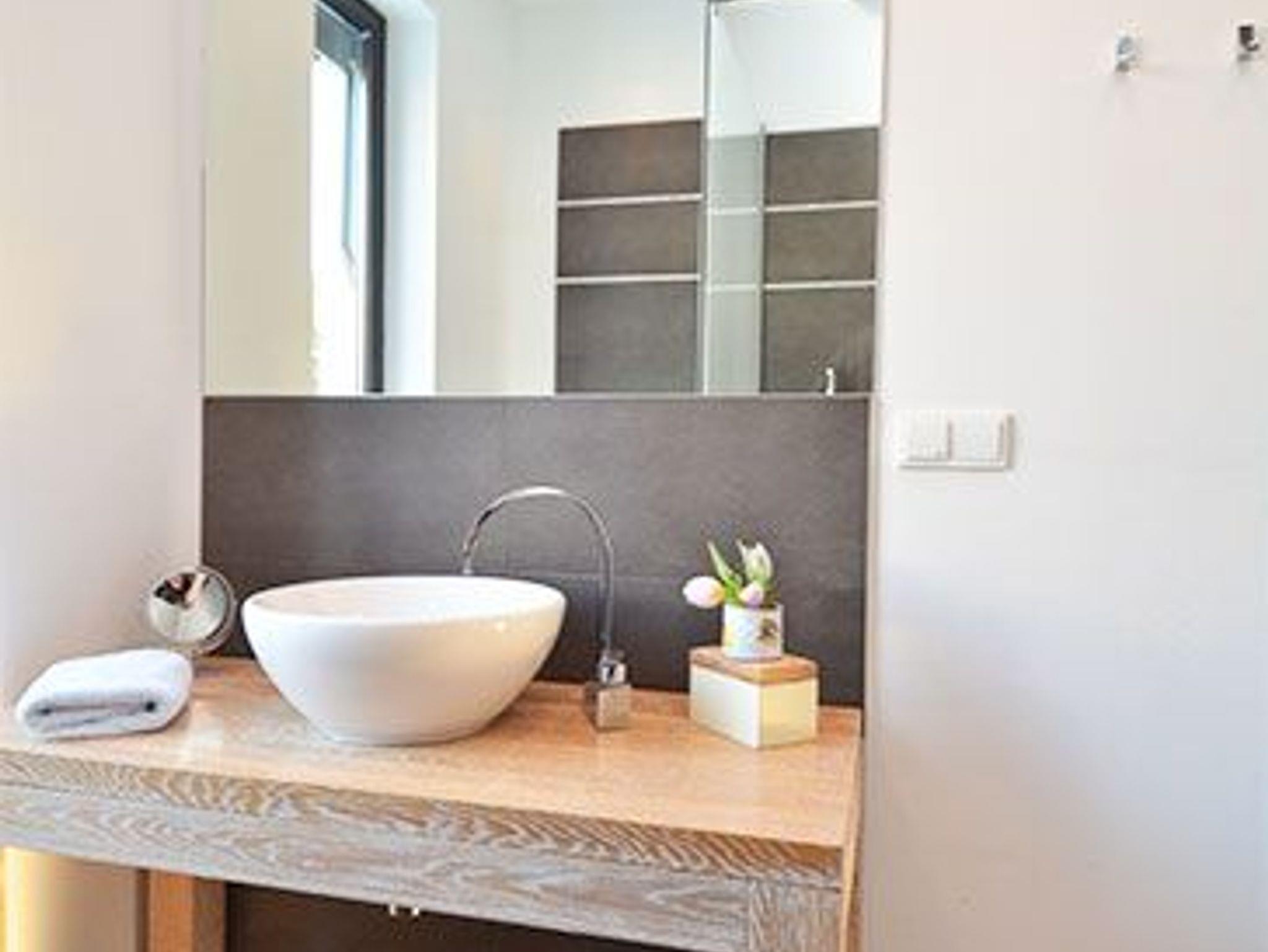 Die umlaufende Dachterrasse erinnert an einen Schloßwandelgang ist auf der Südseite der Villa zu einer Grillterrasse erweitert. Hier können Sie ab Mittag bis zum späten Nachmittag im Sonnenlicht baden. Eine weitere Terrasse auf dieser Ebene ist die separate, durch ein kleines Metalltor zu erreichende Rotweinterrasse zur Westseite. Hier können Sie den Abend bei einem schönen Glas Wein in Ruhe ausklingen lassen und die letzten Sonnenstrahlen des Tages genießen. Die Balkon- bzw. Terrassenmöbel stehen saisonal - in der Regel von Mai bis Ende September - zur Verfügung.