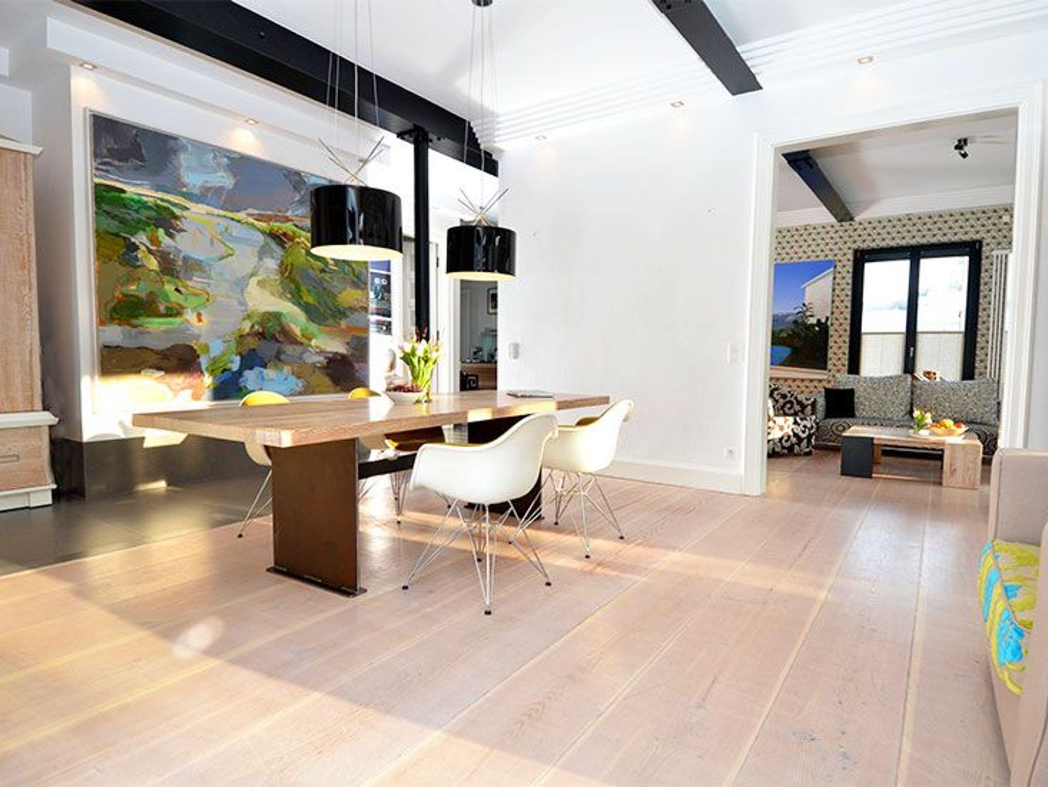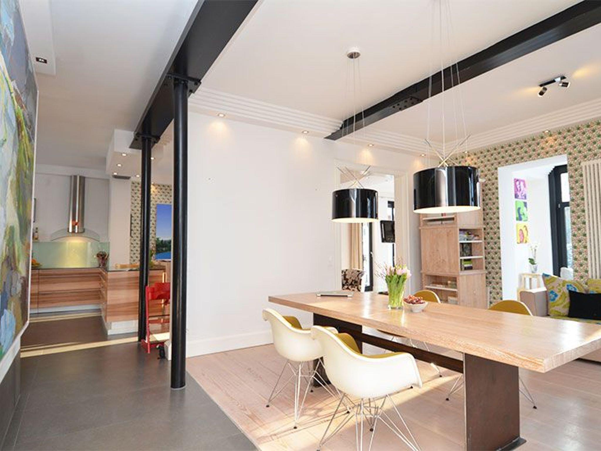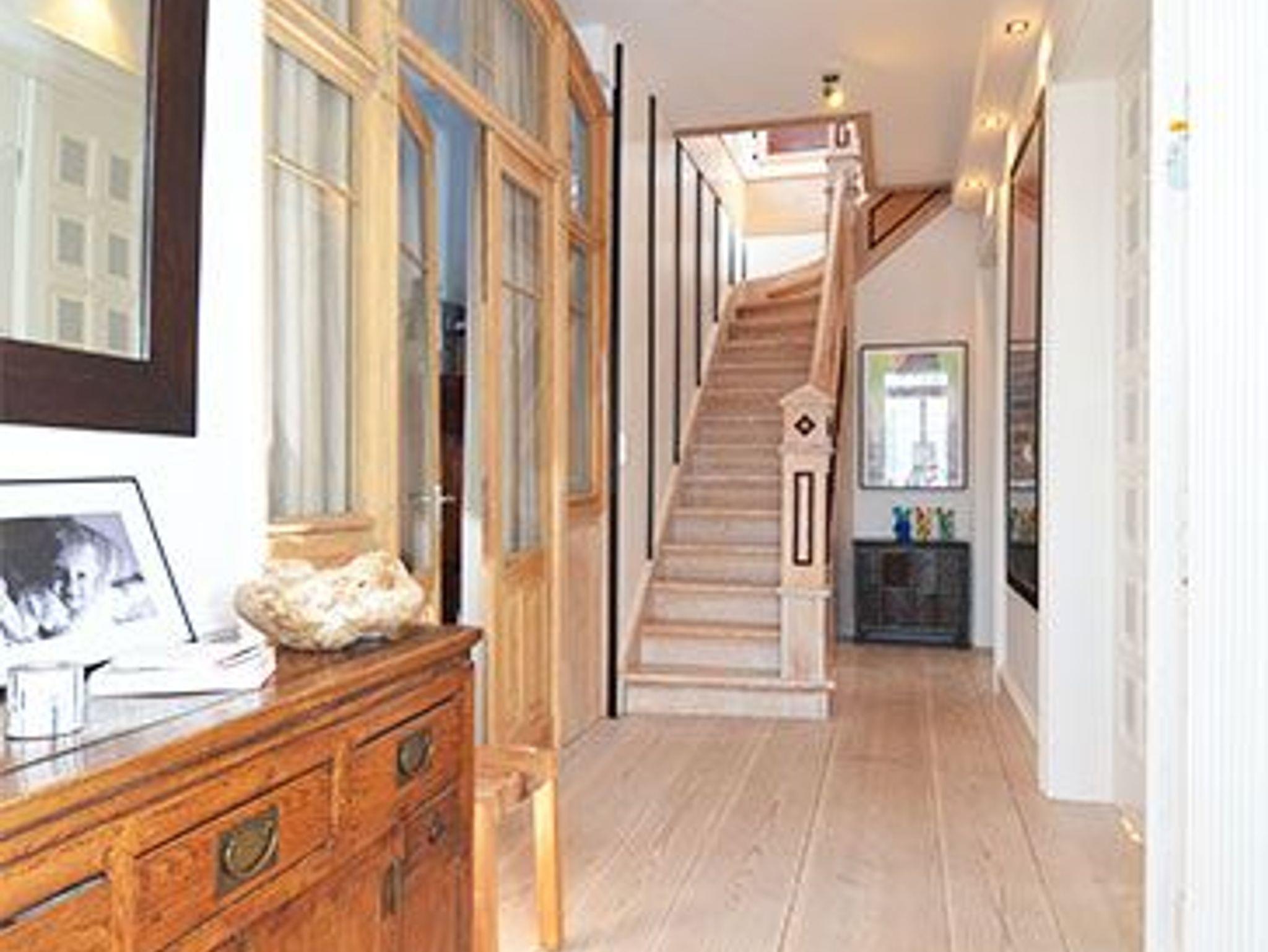 Villa Tusculum - lassen Sie sich begeistern von 340m² außergewöhnlichster Wohnfläche über drei Etagen! Sie betreten die Villa durch den Eingangsbereich mit dem Treppenhaus unter Glas. Dieses verglaste Treppenhaus wurde seitlich am Haus angebaut und eine eigens angefertigte Massivholztreppe aus gekälkter Eiche eingebaut. Mit Weiß gefüllte Poren betonen das expressive Holzbild von Eiche und ergeben durch die lebhafte Maserung ein rustikaleres und wärmeres Bodenbild.