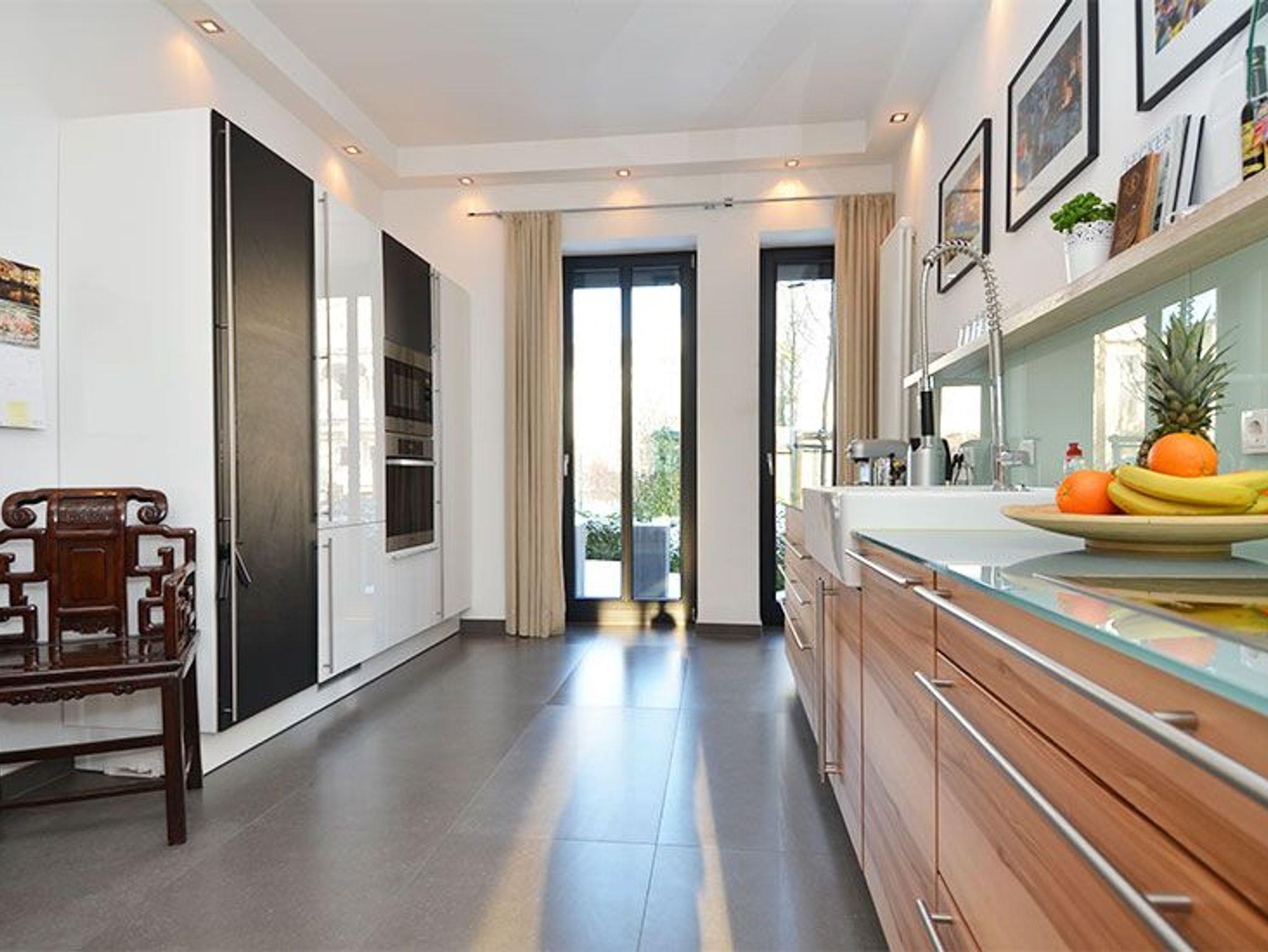 Die Küche lässt das Herz jeden Hobbykochs höher schlagen - es ist alles vorhanden, was benötigt wird und darüber hinaus viele Utensilien, die die Ausstattung komplettieren. Im Hauswirtschaftsraum stehen auch eine Waschmaschine und ein Trockner zur Verfügung. Sämtliche Einbaugeräte sind von der Firma Miele. Eine amerikanische Esstheke mit 3 Barhockern trennt den Kochbereich optisch vom Wohnbereich.
