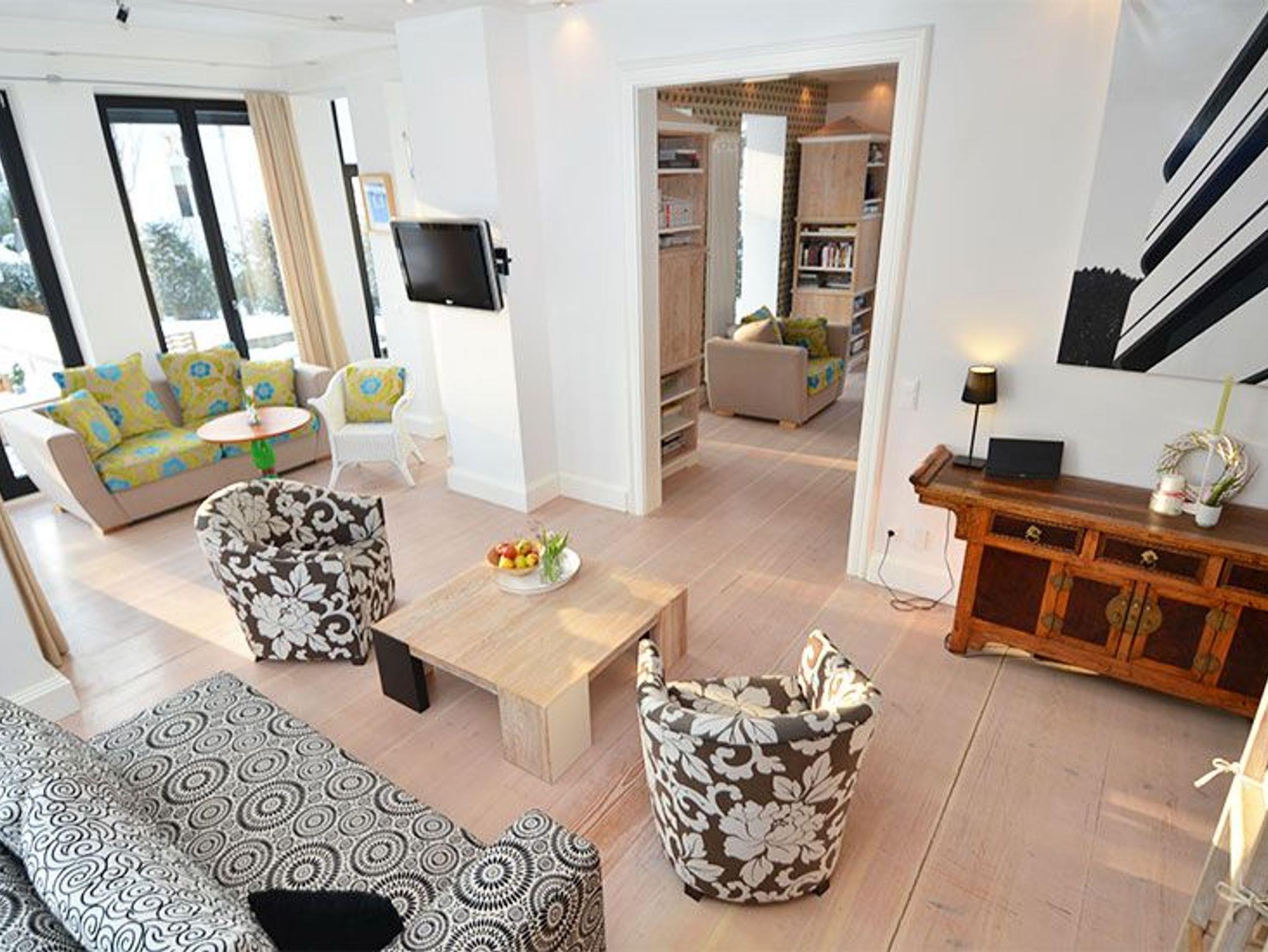Die ausgedehnte Wohnlandschaft überzeugt mit einem Wintergarten mit den zwei gemütlichen Chaiselonguen, dem Essbereich mit dem großen Esstisch für bis zu 6 Personen, der harmonisch im Wohnbereich integrierten offen Küche und dem Wohnbereich mit behaglichen Sitzmöbeln, Soundsystem und Flachbild-TV. W-LAN ist ebenfalls vorhanden. Eine kleine Relaxecke im Wohnbereich - liebevoll Café Claire genannt - mit Korbsessel, Tischchen und Couch eröffnet den Blick in den Garten und auf den Pool.
