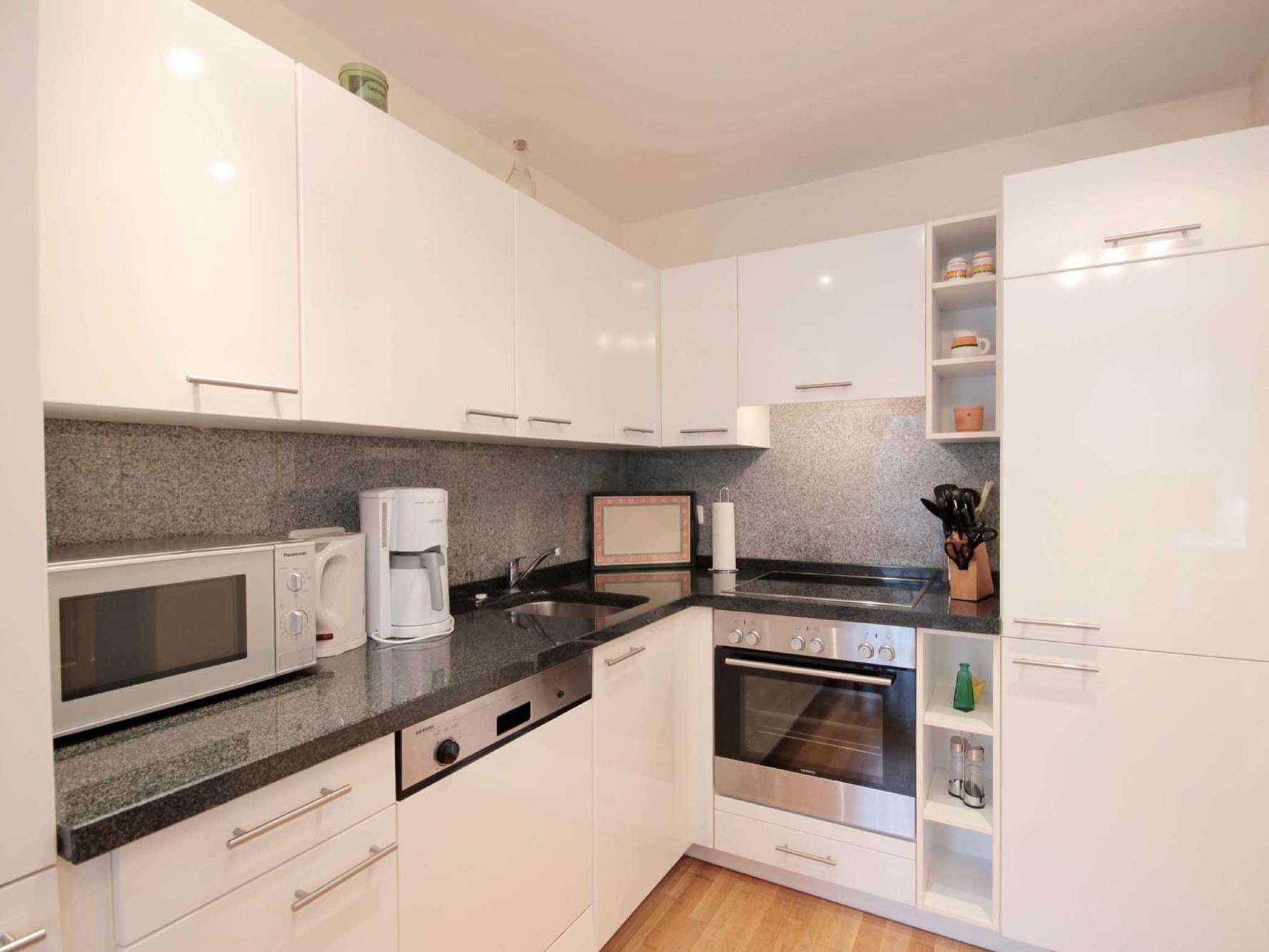 Die Ferienwohnung ist aufgeteilt in einen gemütlichen Wohnraum, eine offene moderne Markeneinbauküche mit Granitarbeitsplatte, ein Schlafzimmer und ein Duschbad mit Waschtisch und WC. Das Wohnzimmer ist mit einem Essplatz und einer Sitzgruppe, die auch eine Schlafgelegenheit für die 3. Person bietet, möbliert. Die technische Ausstattung beinhaltet ein Fernsehgerät. Die Küche ist mit Kühlschrank, Backofen, Ceranfeld, Geschirrspüler und weiteren Elektrogeräten komplett ausgestattet. Das Schlafzimmer verfügt über ein Doppelbett und einen Kleiderschrank. Ab sofort können all unsere Gäste einen kostenfreien WLAN-Zugang nutzen.