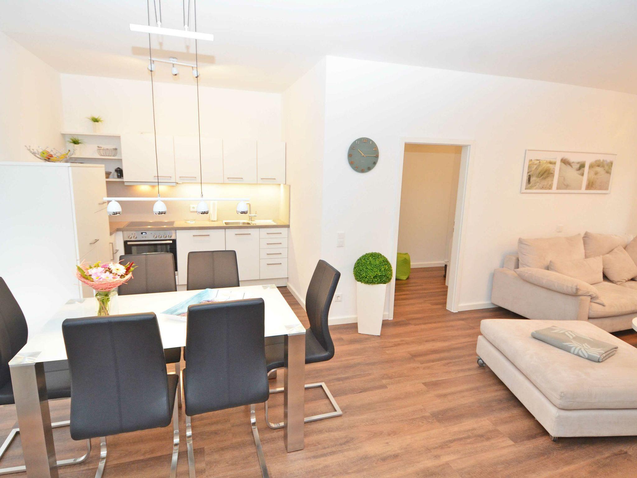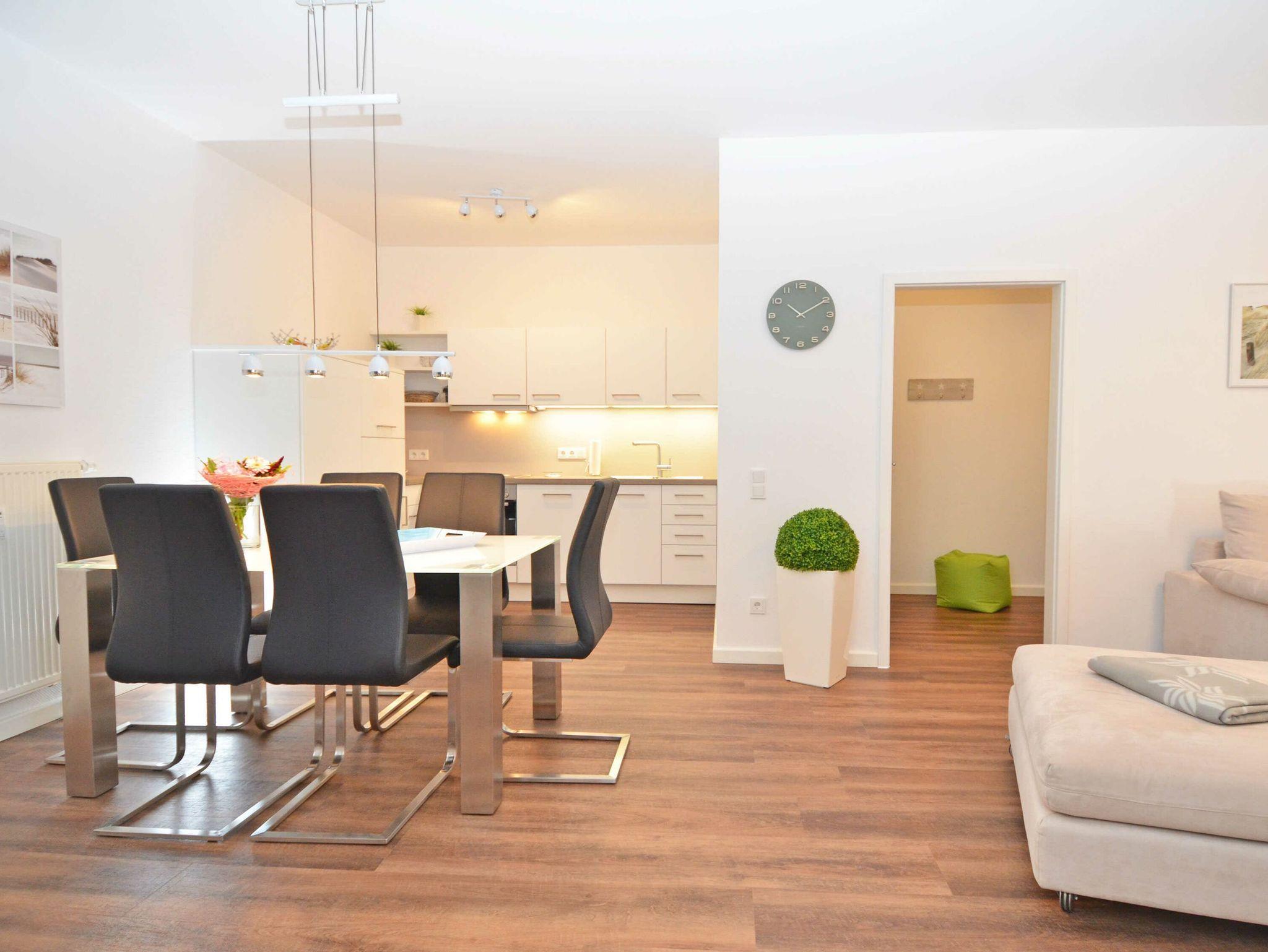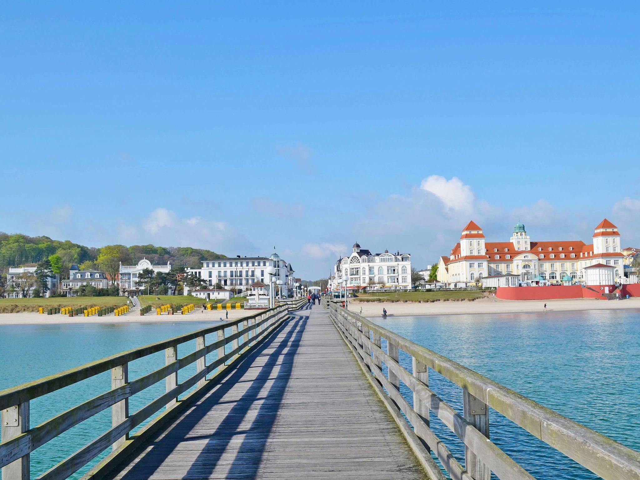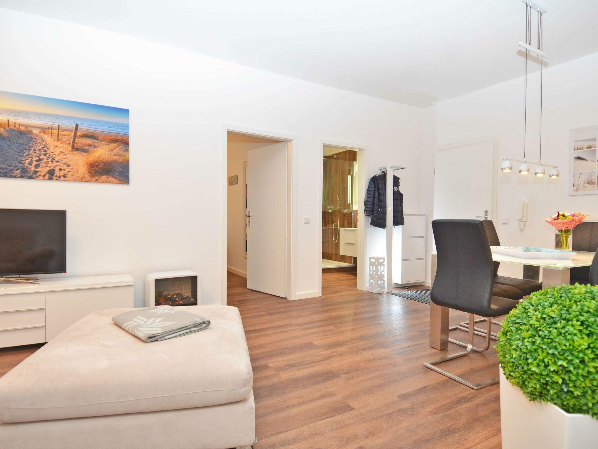 Modernes 3-Raum-Appartement in Binz mit Balkon, Sauna und seitlichem Meerblick.