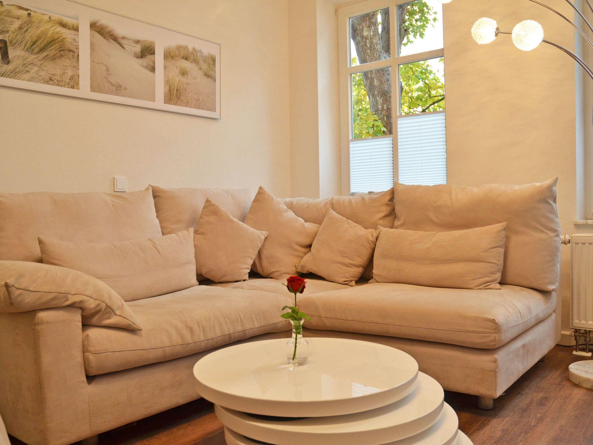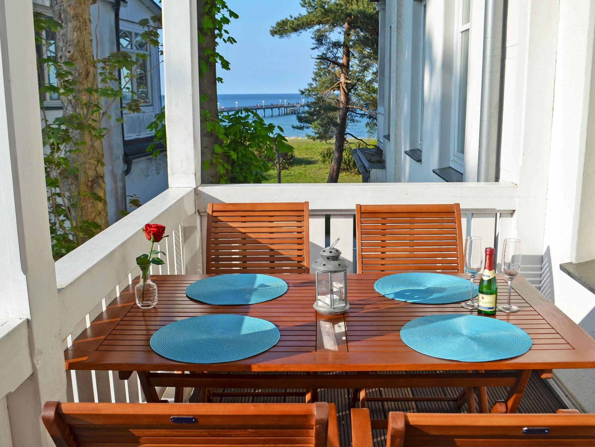 Herzlich Willkommen im Miramare ... Dieses 3-Raum-Appartement im 1. Obergeschoss der Villa Strandblick bezaubert auf rund 68 qm Wohnfläche mit seiner modernen und gepflegten Einrichtung, die eine behagliche Wohlfühl-Atmosphäre ausstrahlt. Hier genießen Sie Ruhe und Erholung, vor allem natürlich auf dem Balkon im Bäderstil, wo Sie die Abendsonne und einen seitlichem Ostseeblick in Richtung Seebrücke und Kreideküste haben.