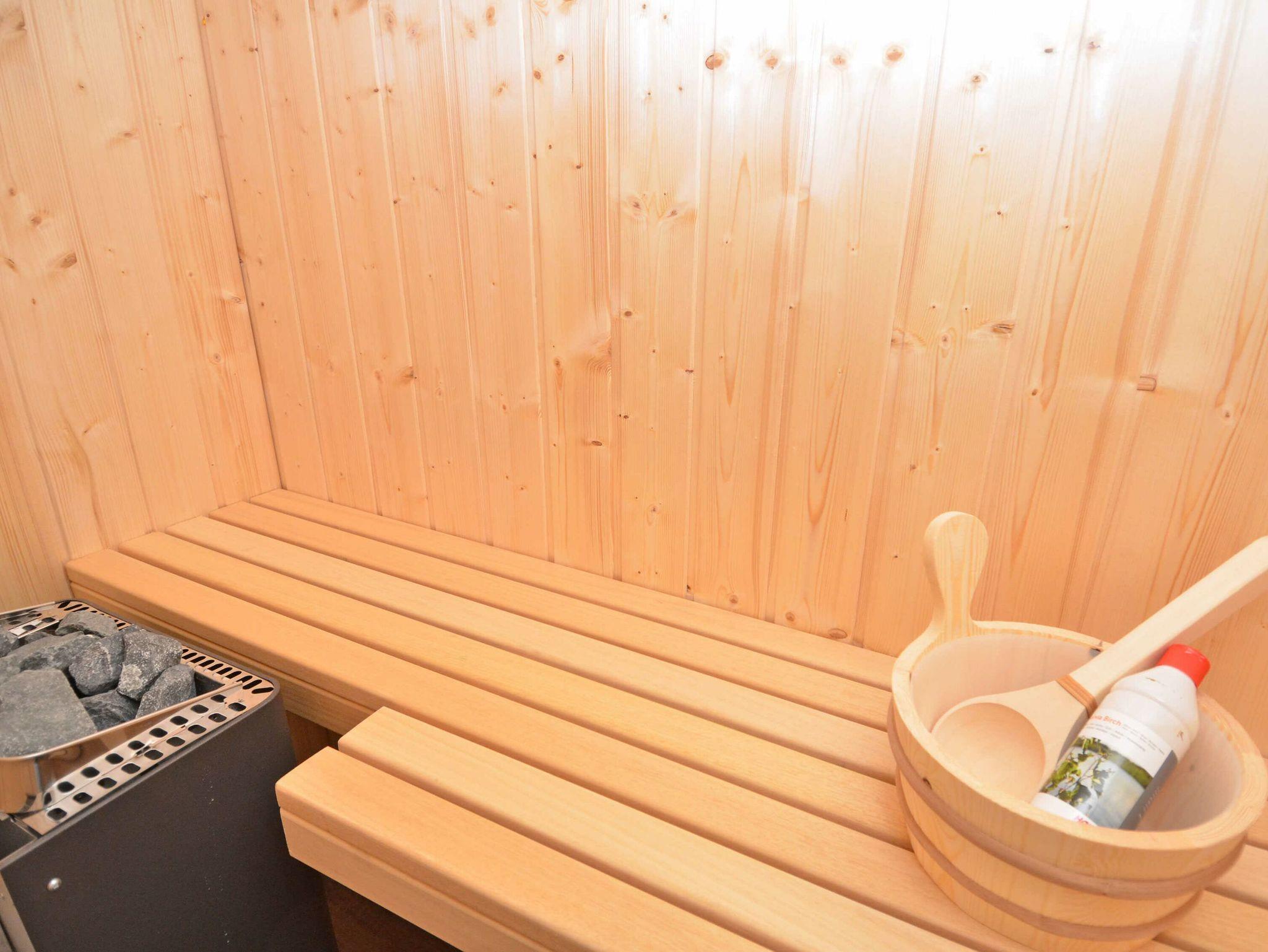 Im größeren Schlafzimmer befinden sich ein bequemes Boxspringbett in der Größe 1,80 x 2,00 m, ein Einbauschrank, ein weiterer Flachbild-TV sowie Verdunklungsrollos. Von hier haben Sie einen direkten Zugang zur wohnungseigenen Sauna und auch zum Balkon.