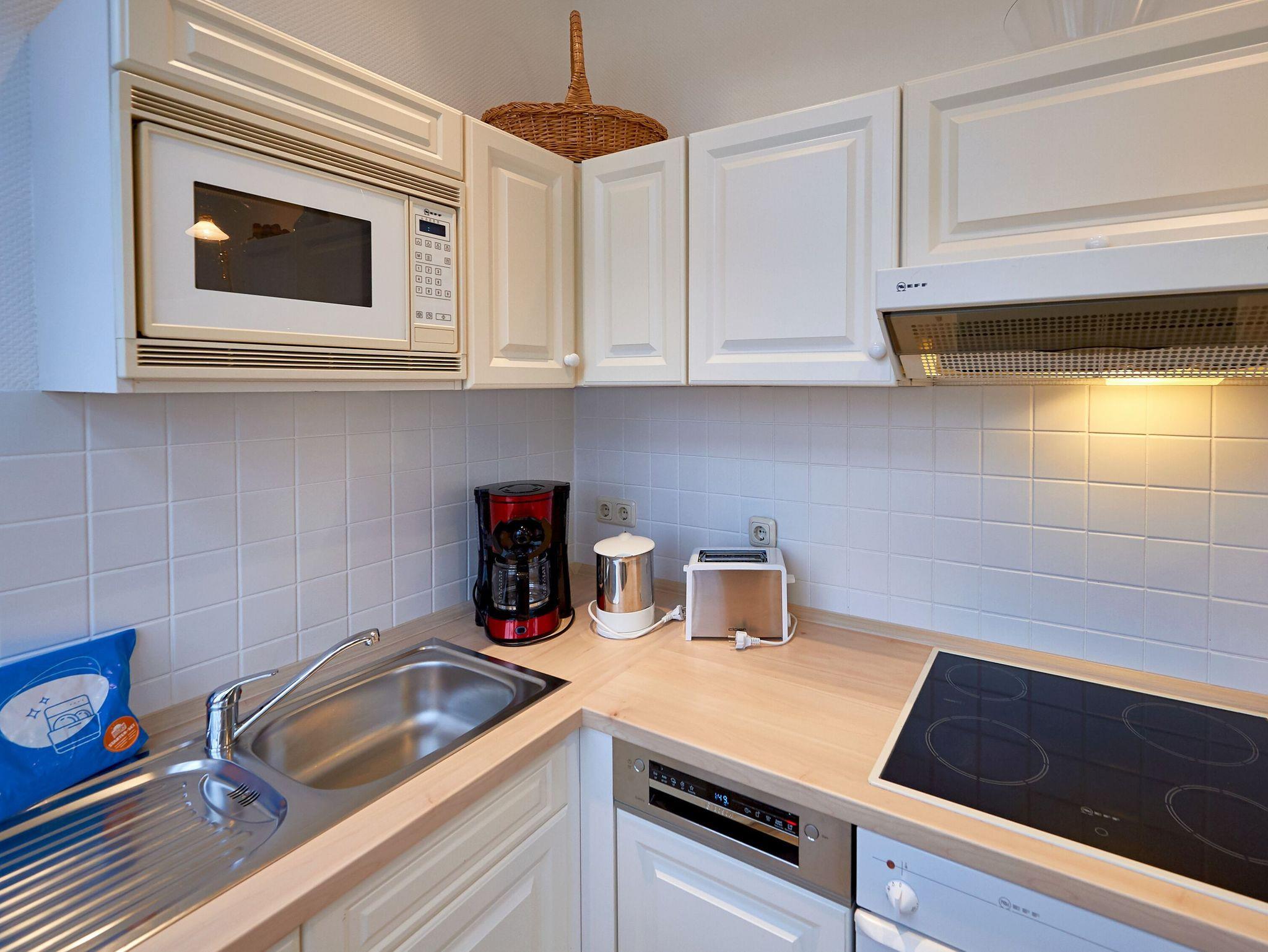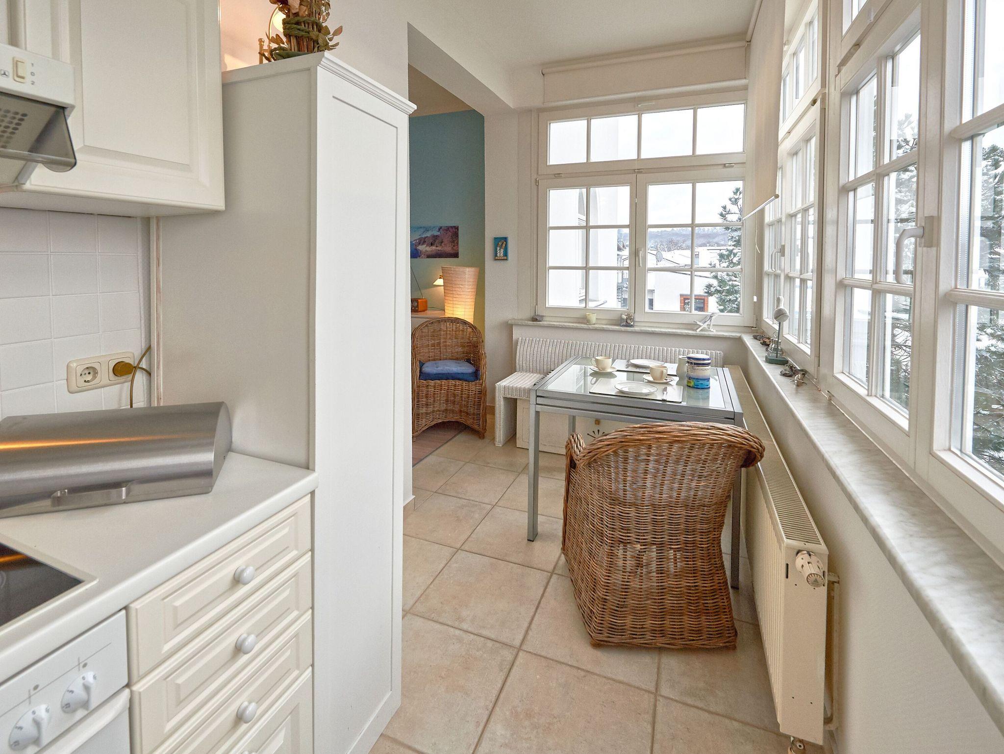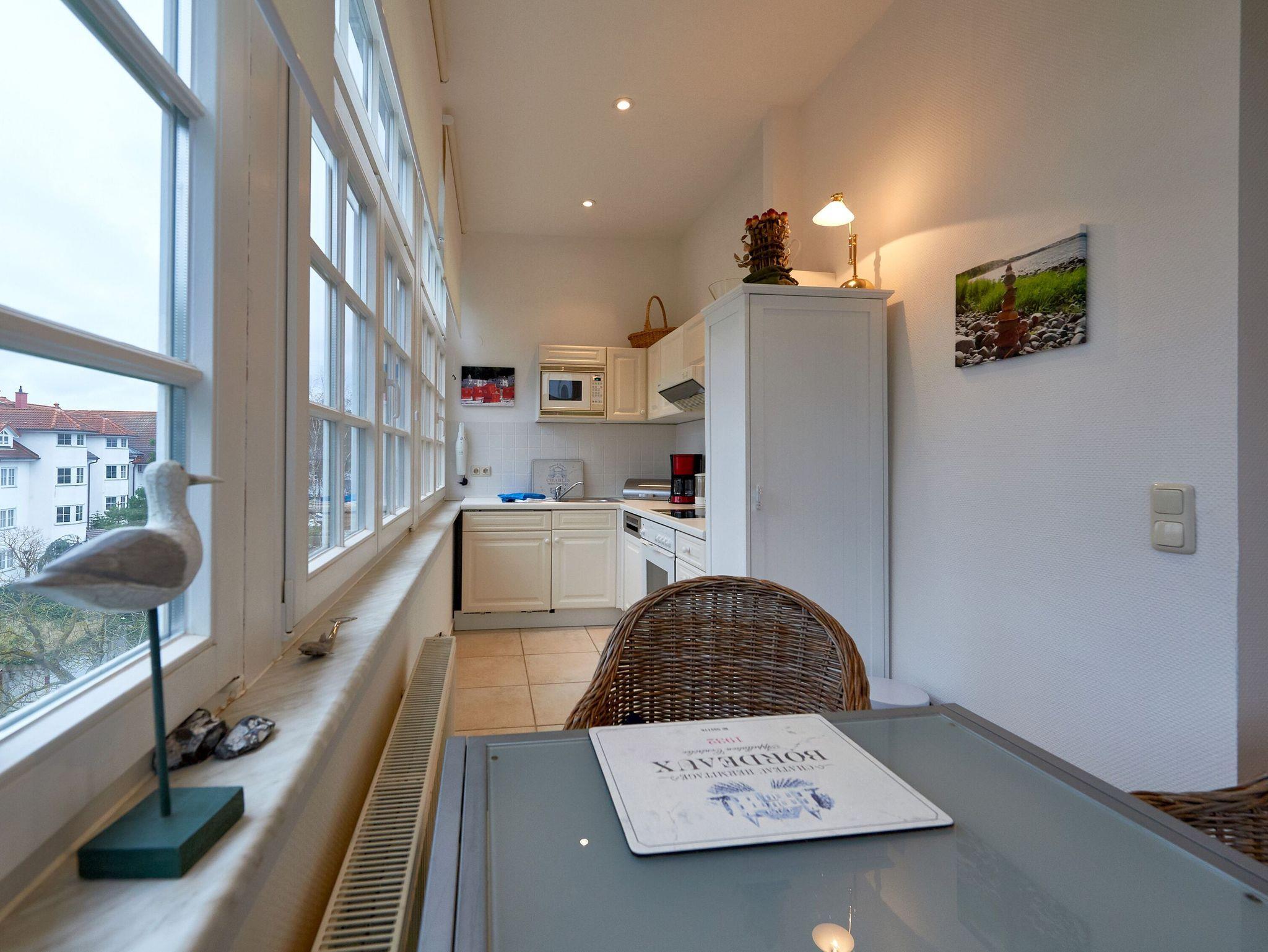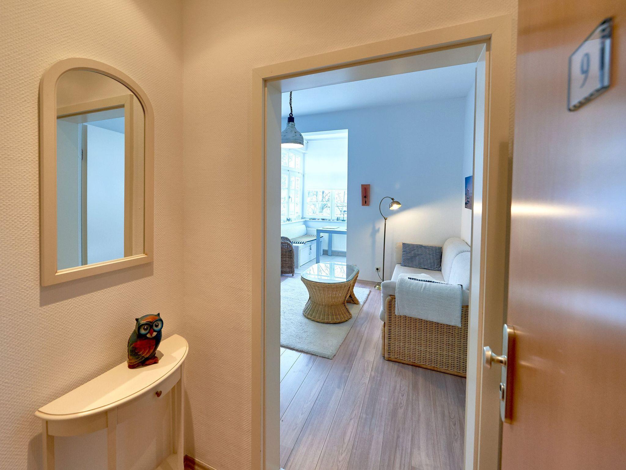 Das Apartment Nr. 9 erwartet Sie im zweiten Stock und ist bequem mit dem Aufzug zu erreichen. Sie beziehen eine außerordentlich freundliche, helle 2-Raum-Wohnung (45 qm) mit im Wohnraum integrierter, komplett ausgestatteter Küche in der sonnigen Veranda. Die Wohnung ist für 1-3 Personen geeignet.
