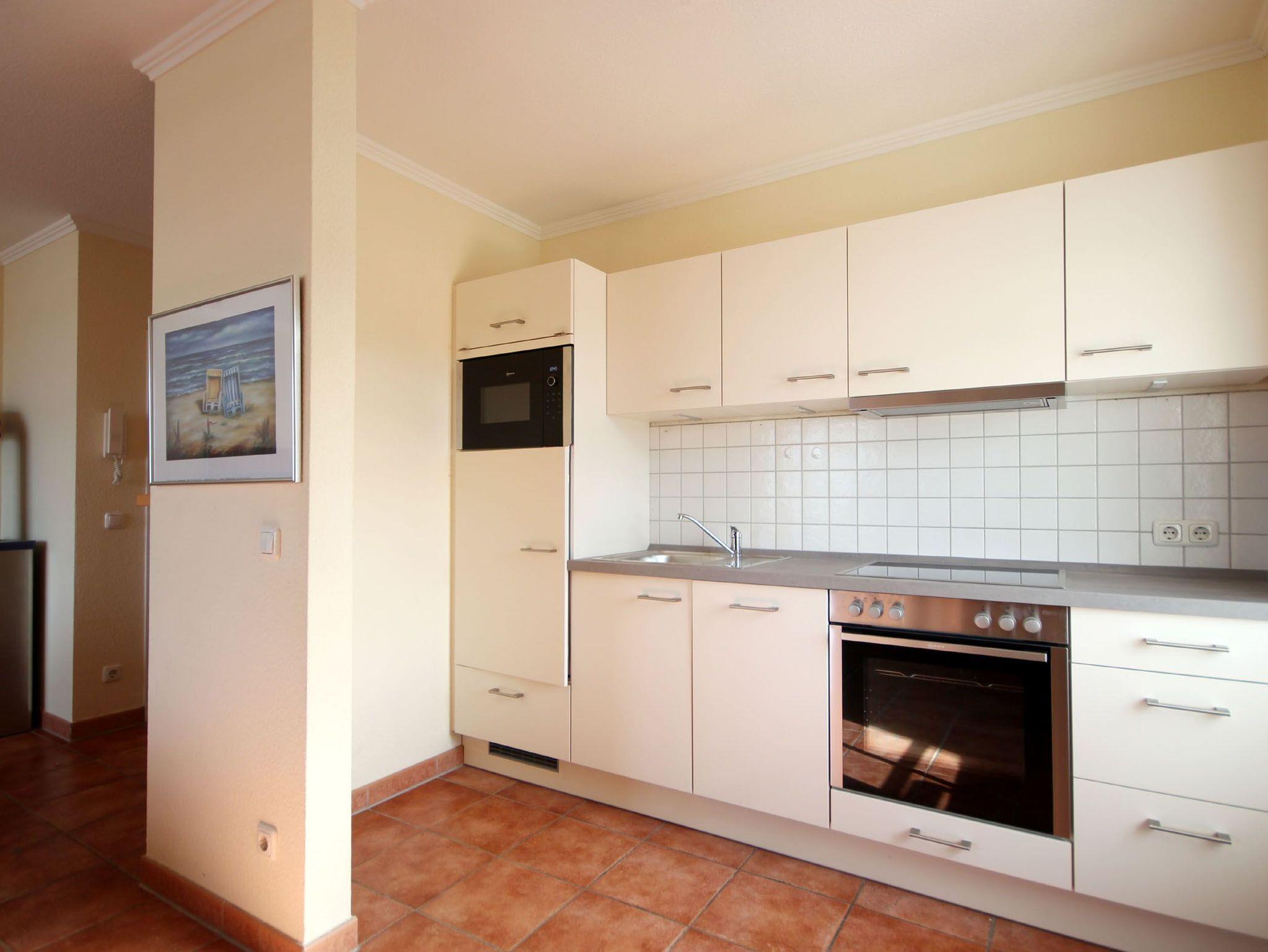 Ihre 3-Zimmer Penthousewohnung 9RB9 Isabell2, mit umlaufender Dachterrasse, die Ihnen im Sommer zu jeder Tageszeit entspannte Sonnenstunden garantiert und Kaminofen im Wohnbereich, der auch in der kalten Jahreszeit kuschelige Stimmung aufkommen lässt, ist ca. 78 qm groß und mit bis zu 4 Personen zu nutzen. Neben dem großzügigen Wohnbereich gibt es zwei separate Schlafräume, Küche, Flur, ein Tageslichtbad mit Waschtisch, Dusche und WC. Ein Schlafraum ist mit einem großen Doppelbett und einem Kleiderschrank ausgestattet. Der zweite Schlafraum verfügt über ein Schlafsofa für zwei weitere Personen, einen Kleiderschrank sowie Zugang zur Dachterrasse. Im Wohnraum gibt es neben dem Kaminofen einen separaten Esstisch und eine Sitzecke mit TV. Die neue Küchenzeile ist mit Geschirrspüler, Mikrowelle, Backofen, Kühlschrank mit kleinem Gefrierfach und diversen Kleingeräten komplett ausgestattet.