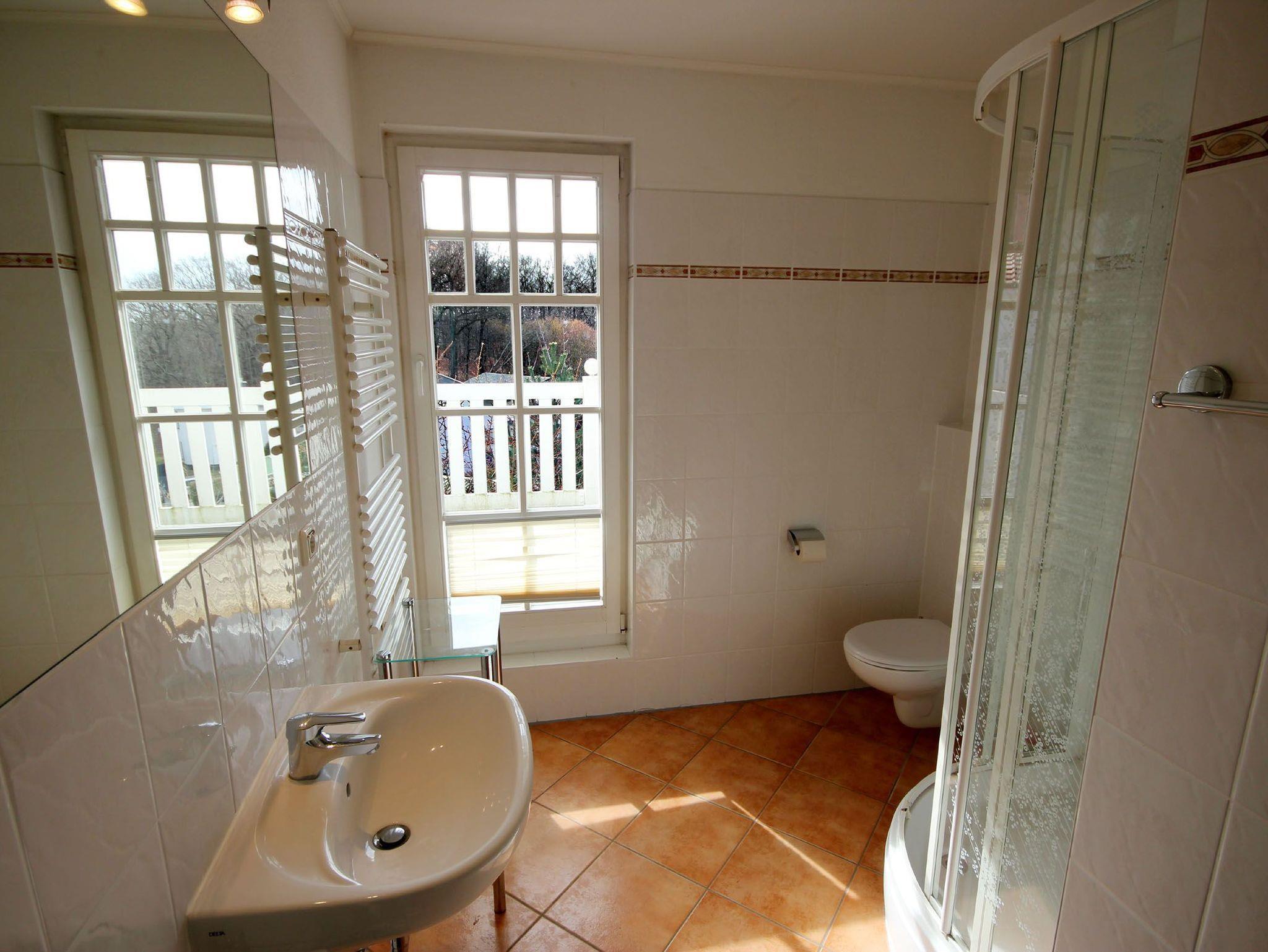 Die Unterkunft befindet auf dem Klünderberg. Die leichte Hanglage auf einem der Binzer Hügeln garantiert aus vielen Wohnungen schöne Ausblicke auf den Binzer Ortskern, teilweise bis zur Ostsee.