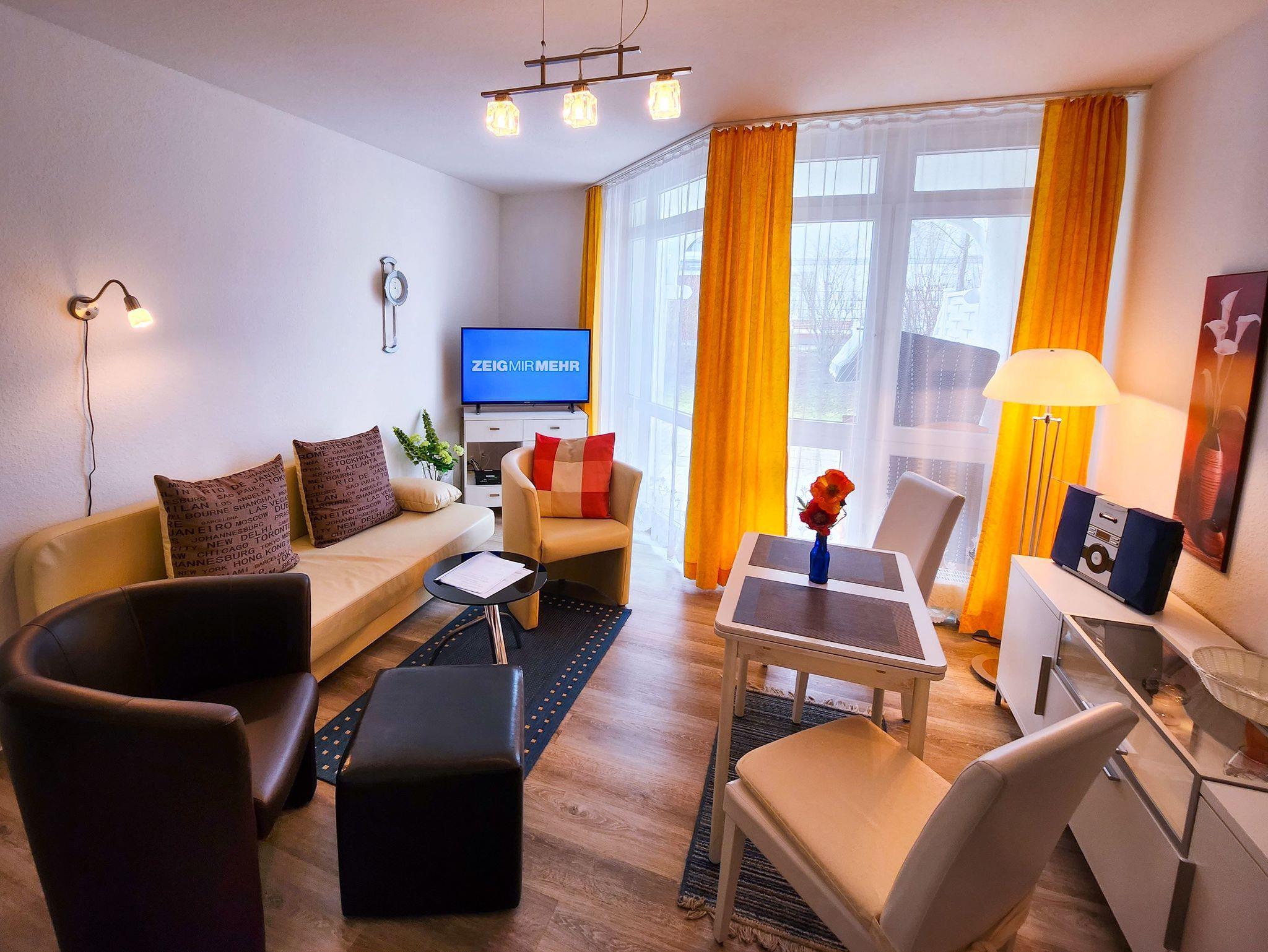 Komfortables 2-Raum-Appartement mit Hallenbad und Gartenblick im Wohnpark Binz, zentral und ruhig gelegen.
