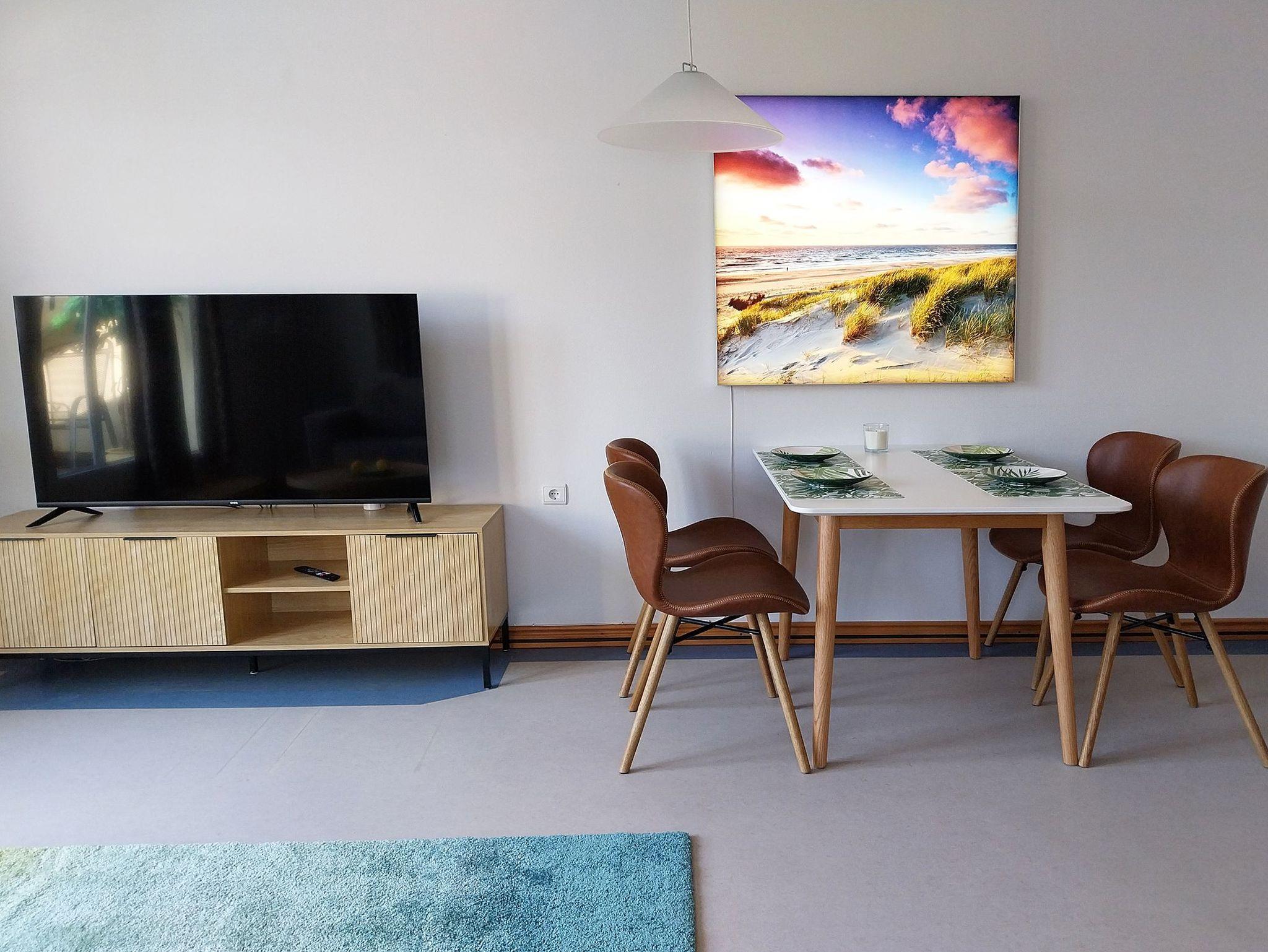 Moderne Ferienwohnung im Dünenpark Binz, nur 100 m vom Strand, mit Balkon und eigenem Parkplatz.