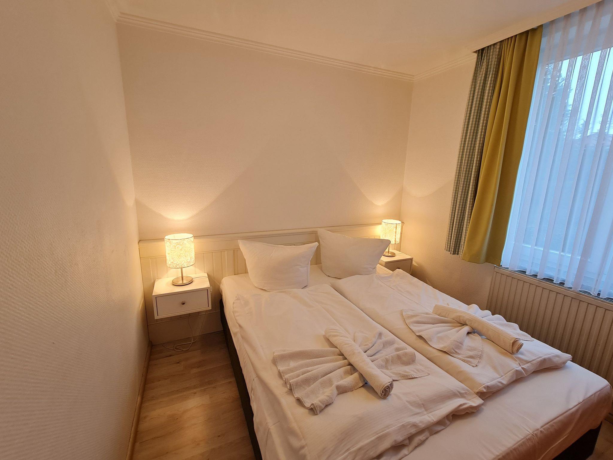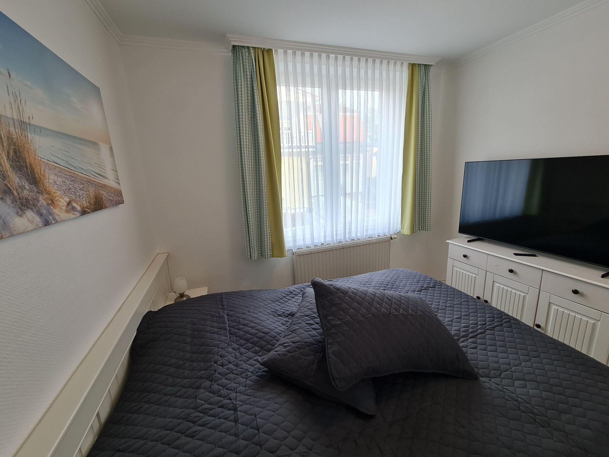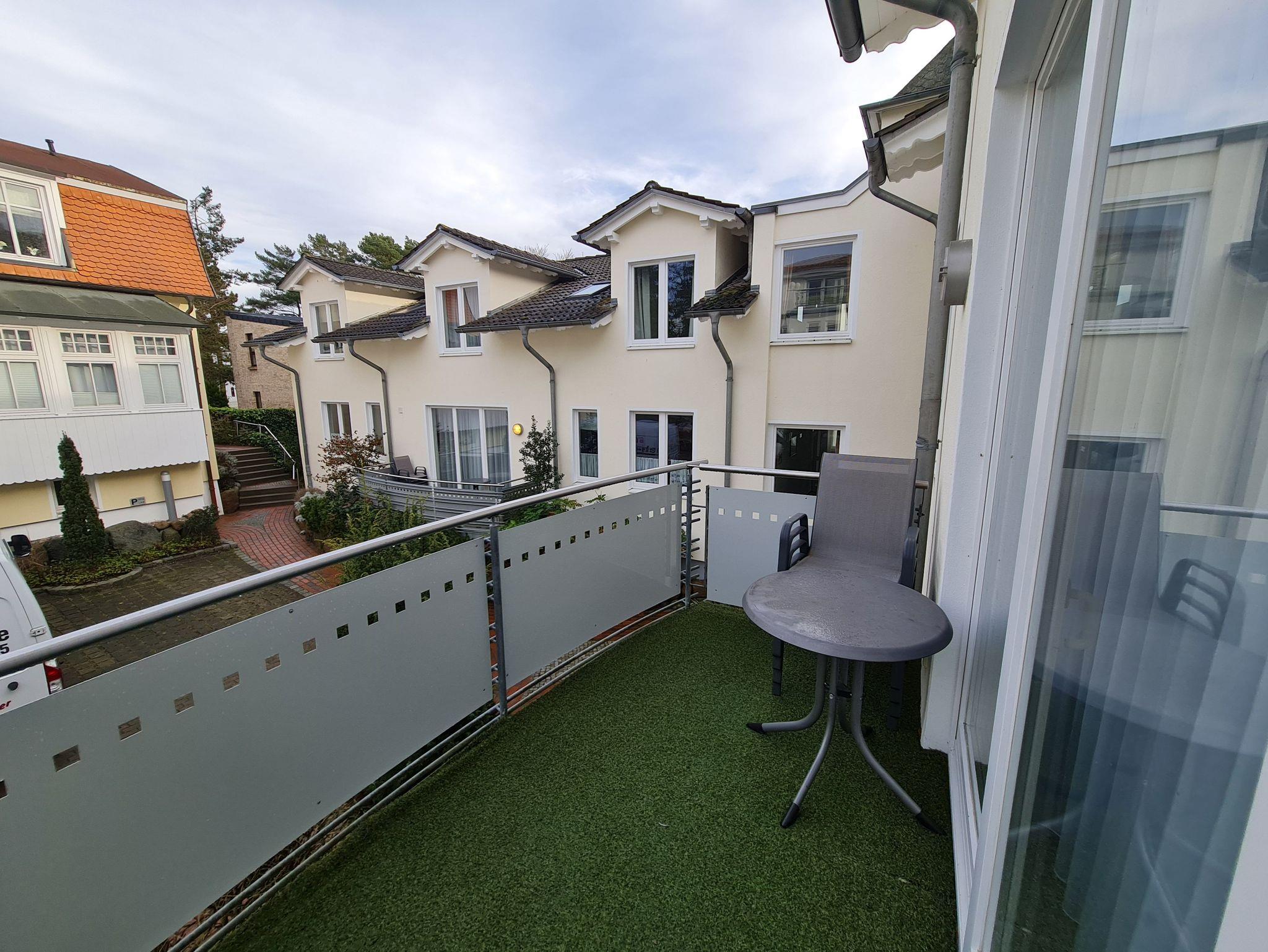 Die ca. 57 m² große Wohnung hat einen großen Balkon und ist zum ruhigen Innenhof ausgerichtet. Sie können den Wellnessbereich (Schwimmbad, Sauna, Infrarotkabine) im Haus bequem im Bademantel mit dem Aufzug erreichen. Zwei separate Schlafzimmer (eins davon mit separatem Fernseher) mit Doppelbetten stehen Ihnen zur Verfügung. Der Wohnbereich ist mit einer Sitz- und Essgruppe, großem Smart-TV, sowie einer separaten Küche mit Cerankochfeld, Mikrowelle mit Grill, Geschirrspülmaschine, Kühlschrank, Kaffeemaschine, Toaster usw. versehen. Ein schönes Badezimmer mit Dusche, WC und großem Spiegel komplettieren die Ferienwohnungen. Beste Voraussetzungen für 2 bis 4 Personen in Binz einen erholsamen Urlaub zu verleben.Ein PKW-Parkplatz bis max. 1.85m Höhe in der Tiefgarage ist im Preis enthalten. Kostenfreies WLAN steht zur Verfügung.