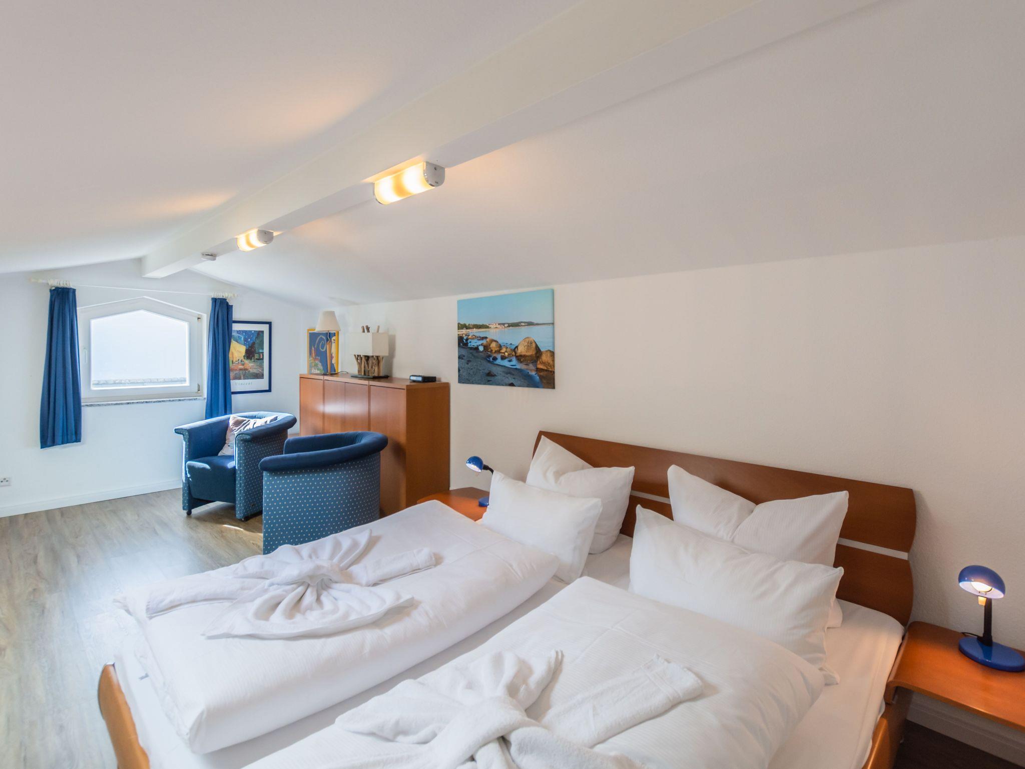 Sie erwarten stilvoll eingerichtete 1 - 3 Zimmer-Ferien-Apartments, mit Balkon mit frontalem Meerblick oder mit Südbalkon mit Blick in den Granitzer Wald, Pkw-Stellplatz am Haus, Waschmaschine und Trockner gegen Gebühr sowie ein Strandkorb in der Sommersaison. In allen Apartments steht Ihnen WLAN zur Verfügung. Ein Fahrstuhl ist im Seeschloss vorhanden, womit Sie ganz komfortabel die Apartments erreichen.