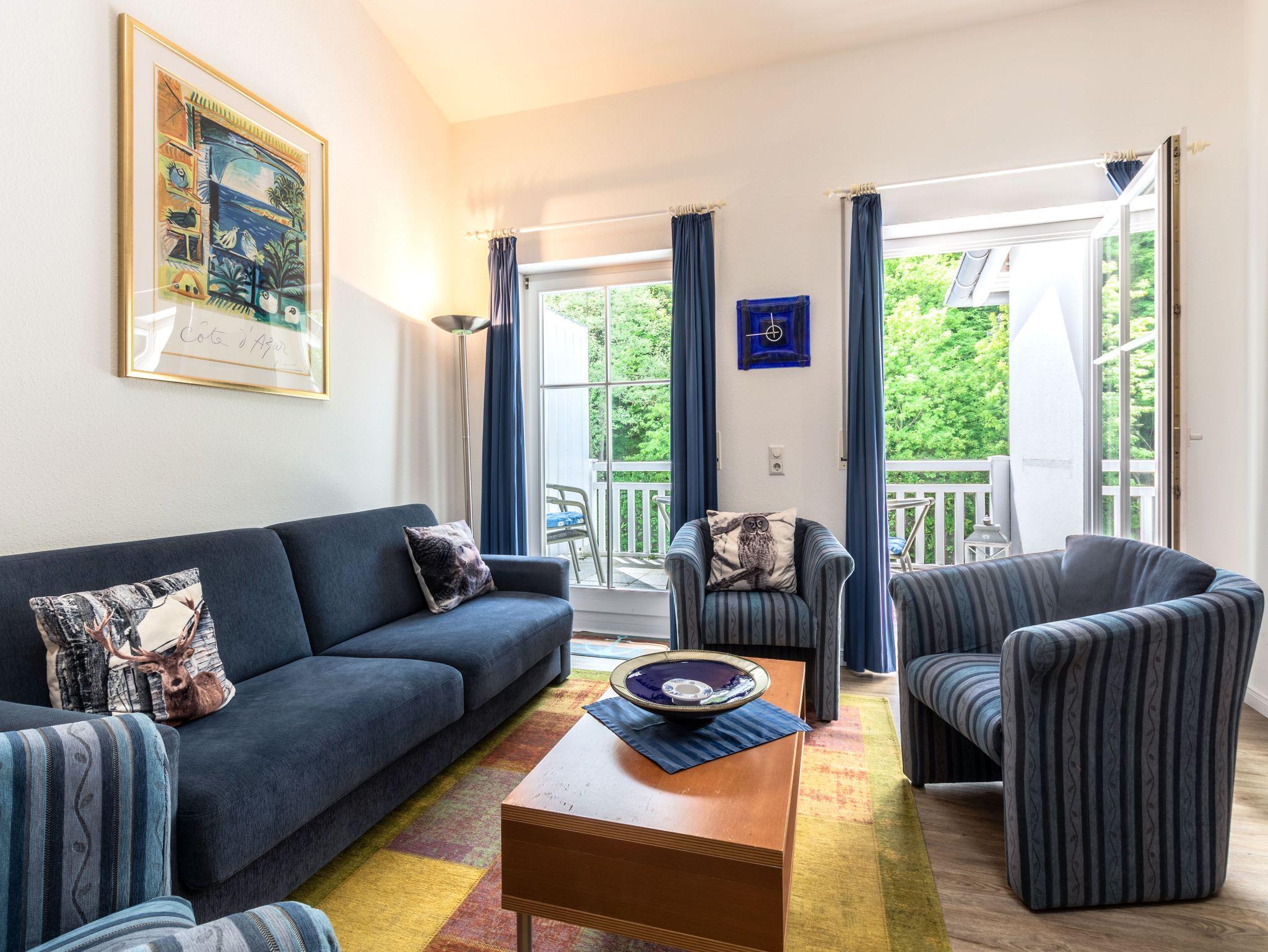 Die liebevoll eingerichtete Wohnung ist über einen Aufzug bequem erreichbar. Der Wohnraum ist mit einem gemütlichen Sofa ausgestattet und lädt zu entspannten Abenden mit Familie oder Freunden ein. Für Unterhaltung sorgen ein Flachbildfernseher sowie eine kleine Auswahl an Büchern, und dank kostenfreiem WLAN bleiben Sie auch im Urlaub bestens verbunden. Vom Wohnzimmer aus gelangen Sie direkt auf den sonnigen Südbalkon mit Blick in den idyllischen Granitzer Wald ? ein herrlicher Platz für das Frühstück im Freien oder einen Glas Wein in der Abendsonne.