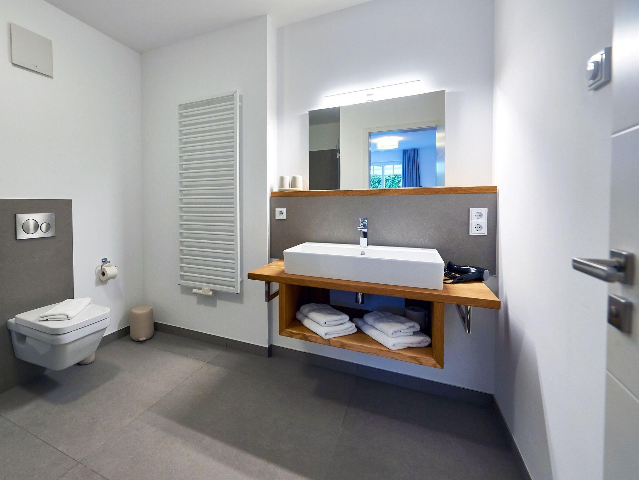 Die beiden Schlafzimmer sind mit überaus bequemen Boxspringbetten (1,80 x 2,00m), großzügigen Kleiderschränken für Ihre Urlaubsgaraderobe und zusätzlichen Fernsehgeräten ausgestattet. Jeweils angeschlossen ist ein eigenes Badezimmer mit bodentiefen Duschen, WC, beleuchtetem Waschtisch, Fön und beheizbarem Handtuchtrockner.