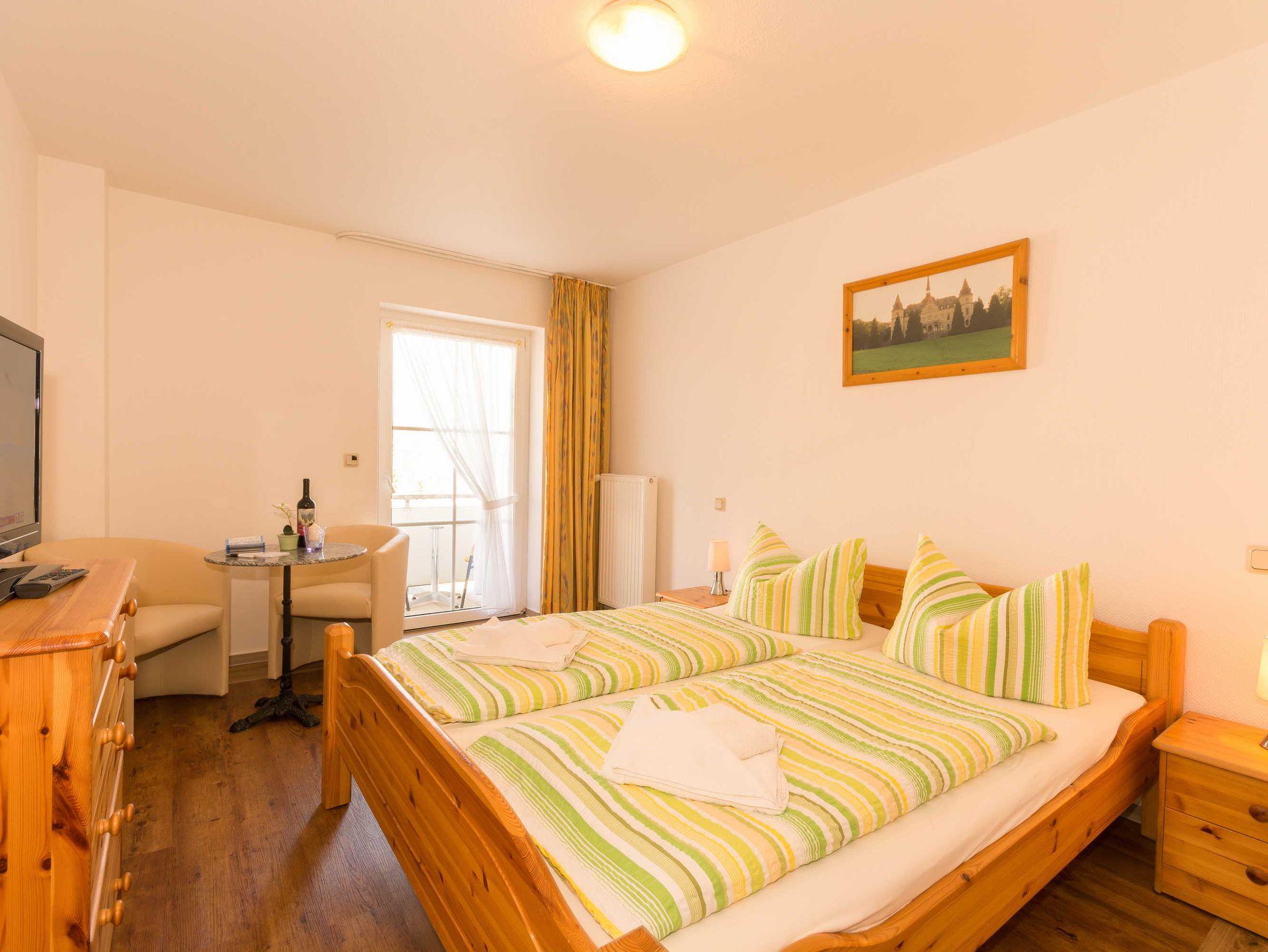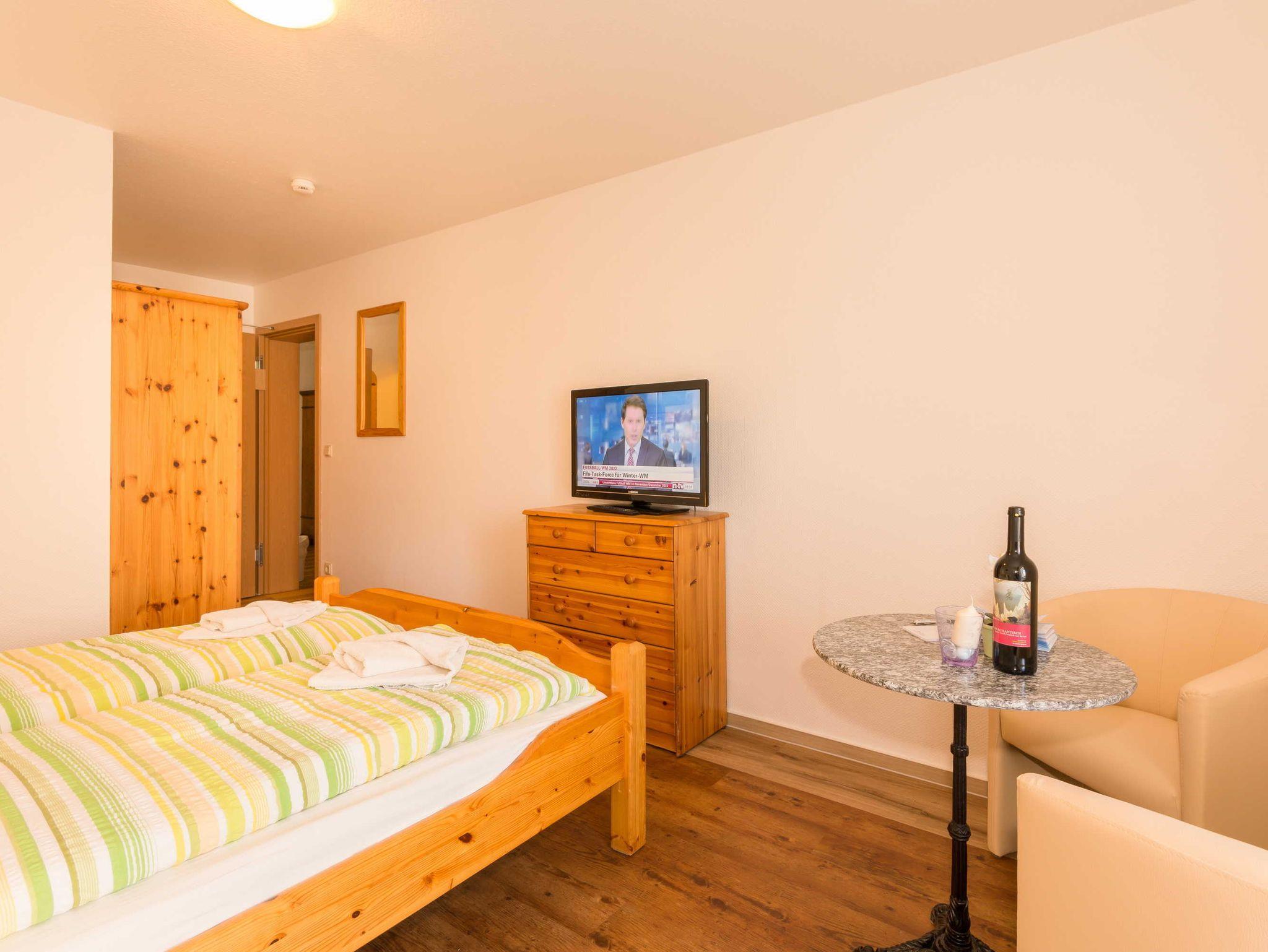 - Doppelzimmer (Standard) mit Doppelbett und kleiner Sitzecke, sowie Kabel-TV/Flachbildschirm, Bad mit Dusche und WC, sowie Haartrockner; WLan/Internetanschluss;