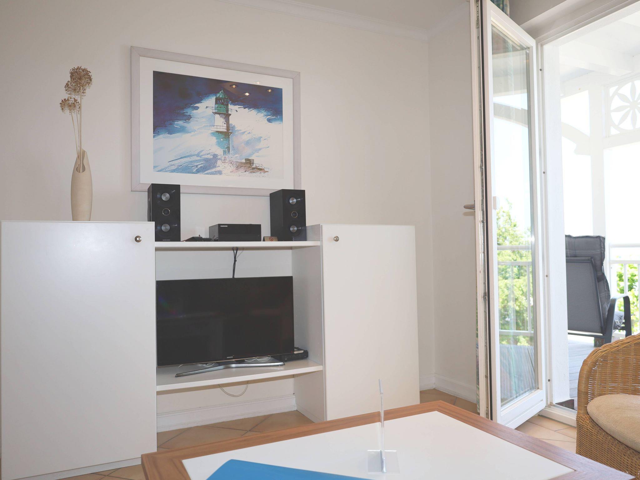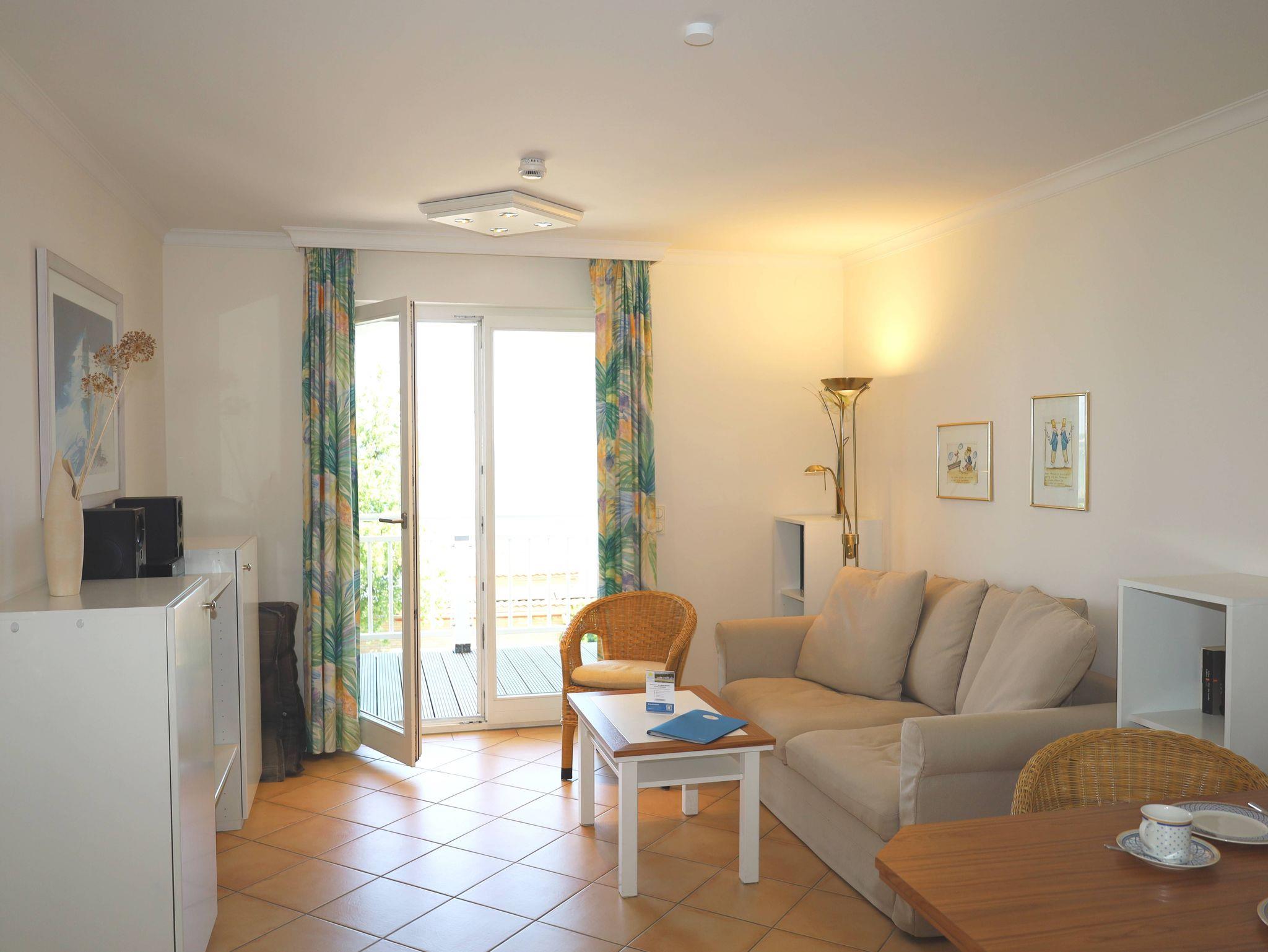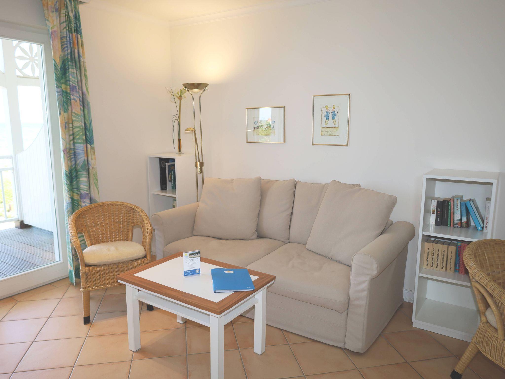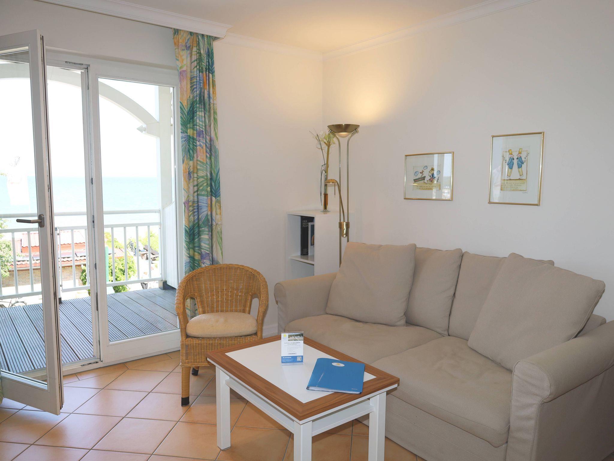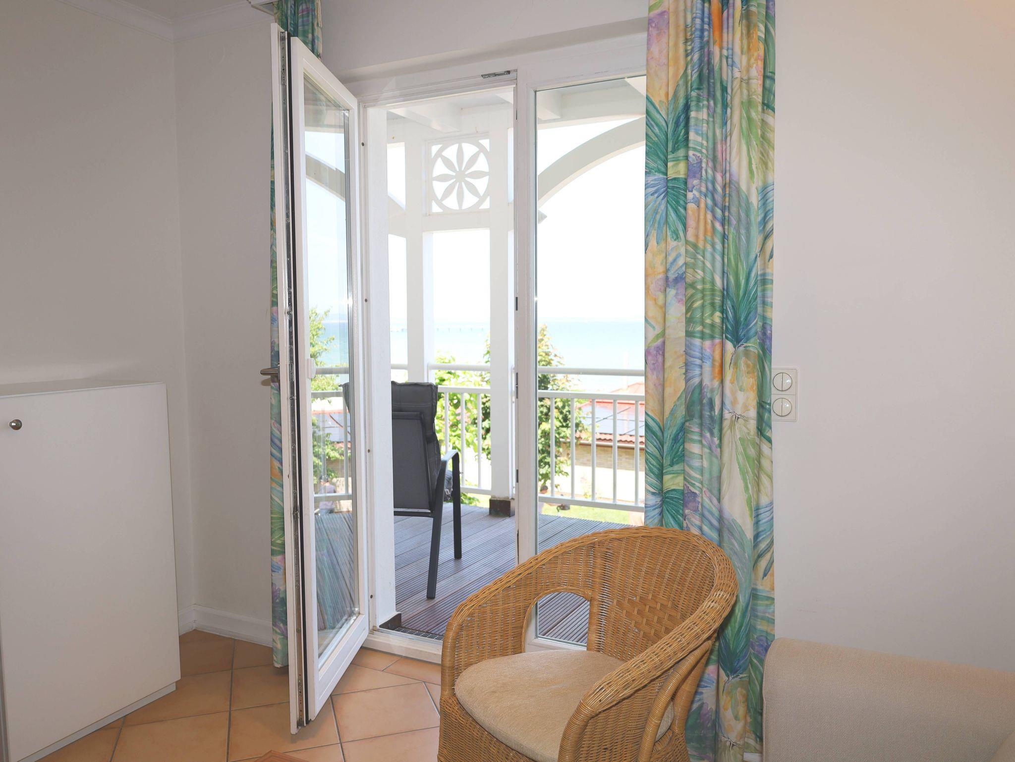 Dieses stilvoll eingerichtete 2-Raum-Apartment im 1. Obergeschoss der Villa bietet auf ca. 47 m² den perfekten Rückzugsort für erholsame Urlaubstage. Die Nichtraucher- und haustierfreie Wohnung besticht durch ihren großen, möblierten Balkon mit frontalem Ostseeblick, den Sie sowohl vom Wohnzimmer als auch vom Schlafzimmer aus betreten können.