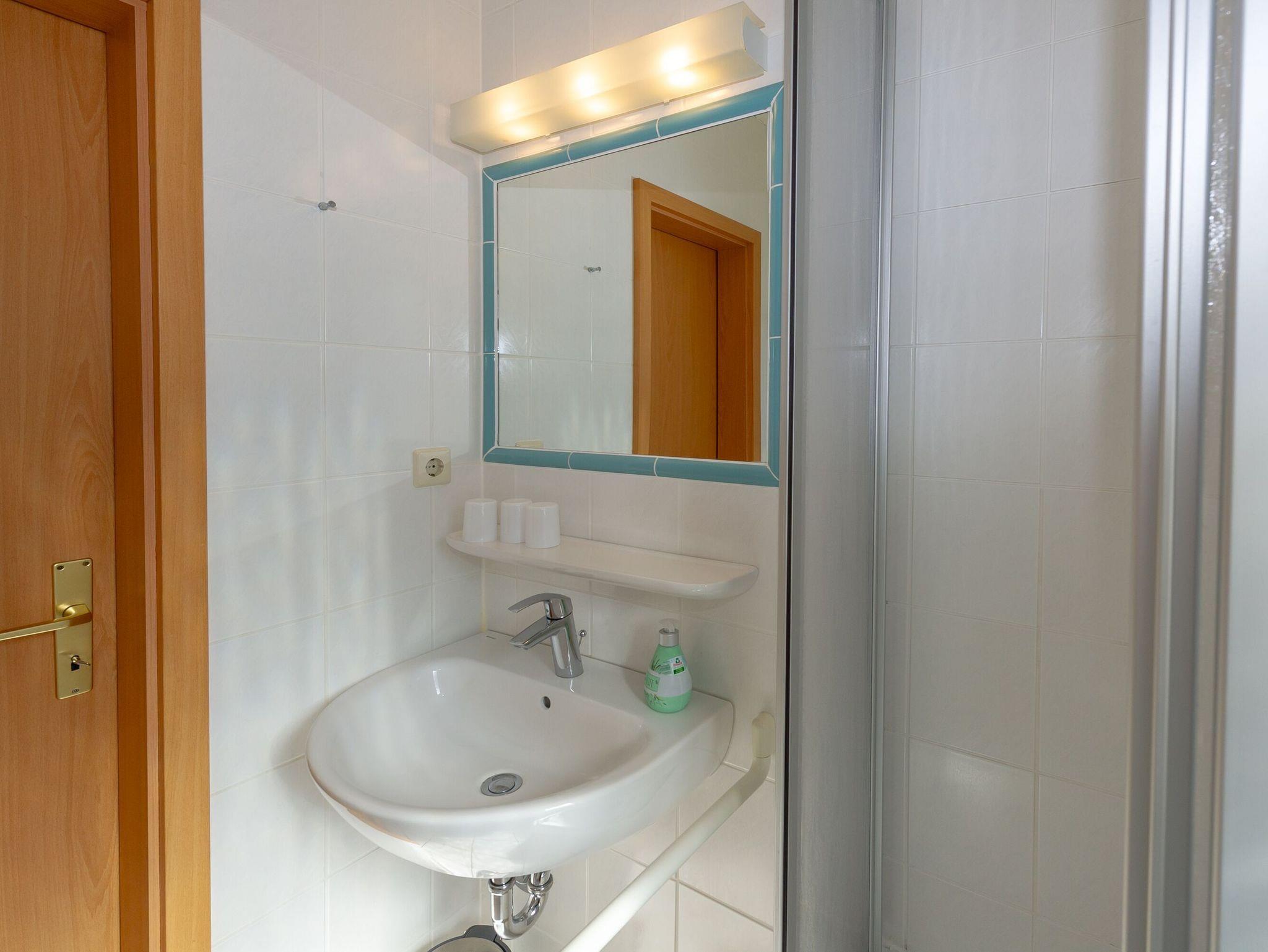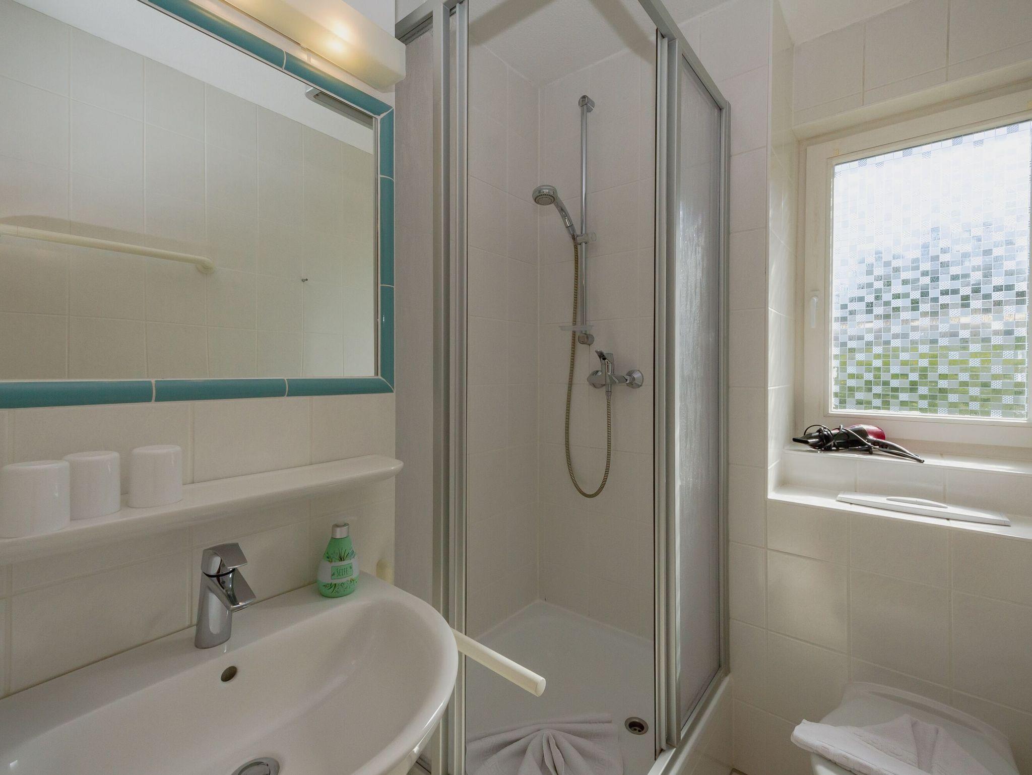 Im separaten Schlafzimmer finden Sie ein komfortables Doppelbett und im Kleiderschrank ausreichend Platz für Ihre Urlaubsgarderobe. Ihr Badezimmer verfügt über Dusche/WC, ein Waschbecken mit Spiegel sowie einen Fön.