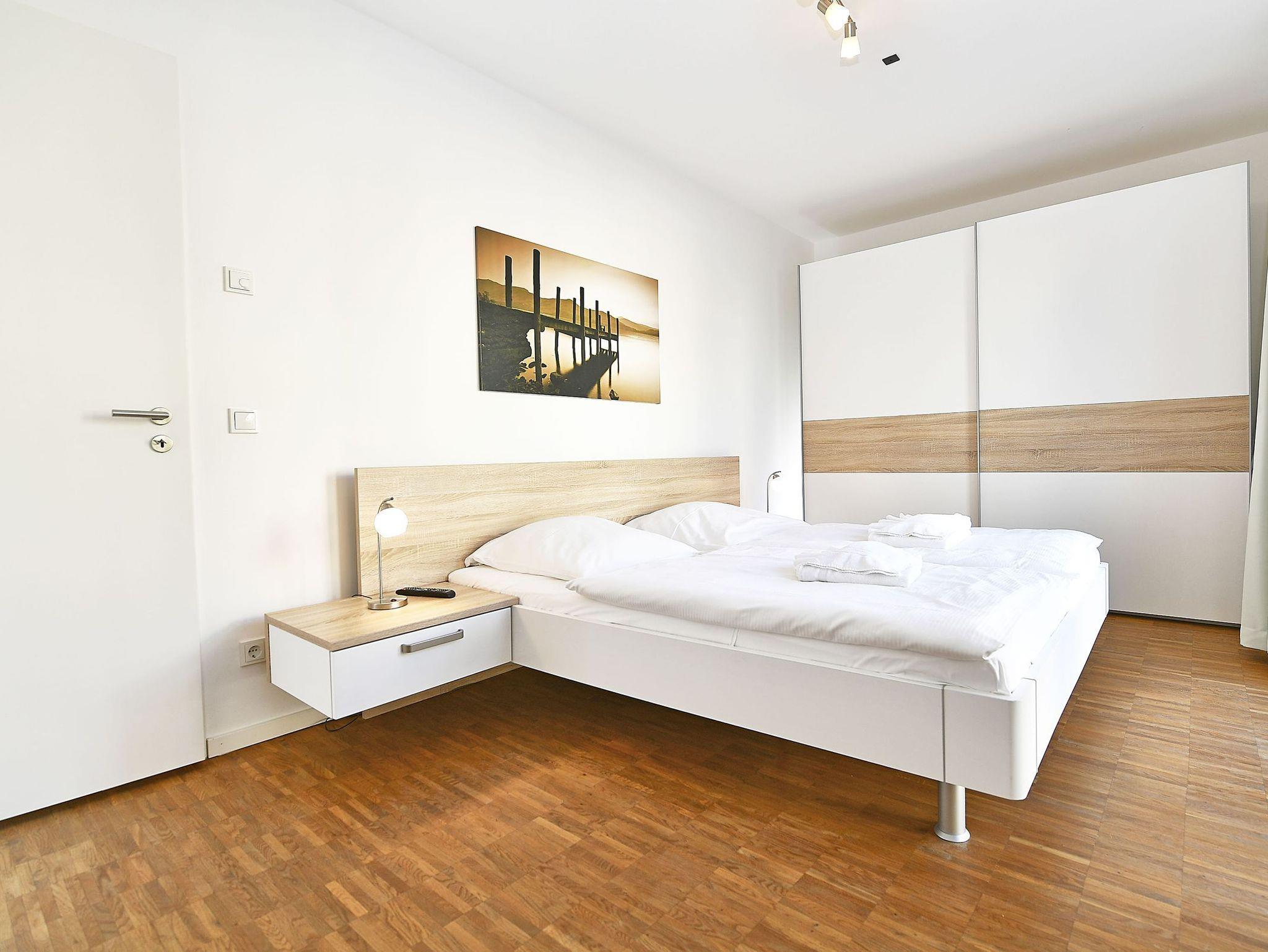 Im Schlafzimmer können Sie sich in einem bequemen Doppelbett (1,80 m x 2,00 m) mit verstellbaren Lattenrosten und einem weiteren Flachbild-Fernseher erholen. Im großen Kleiderschrank ist Platz für Ihre Urlaubsgarderobe.