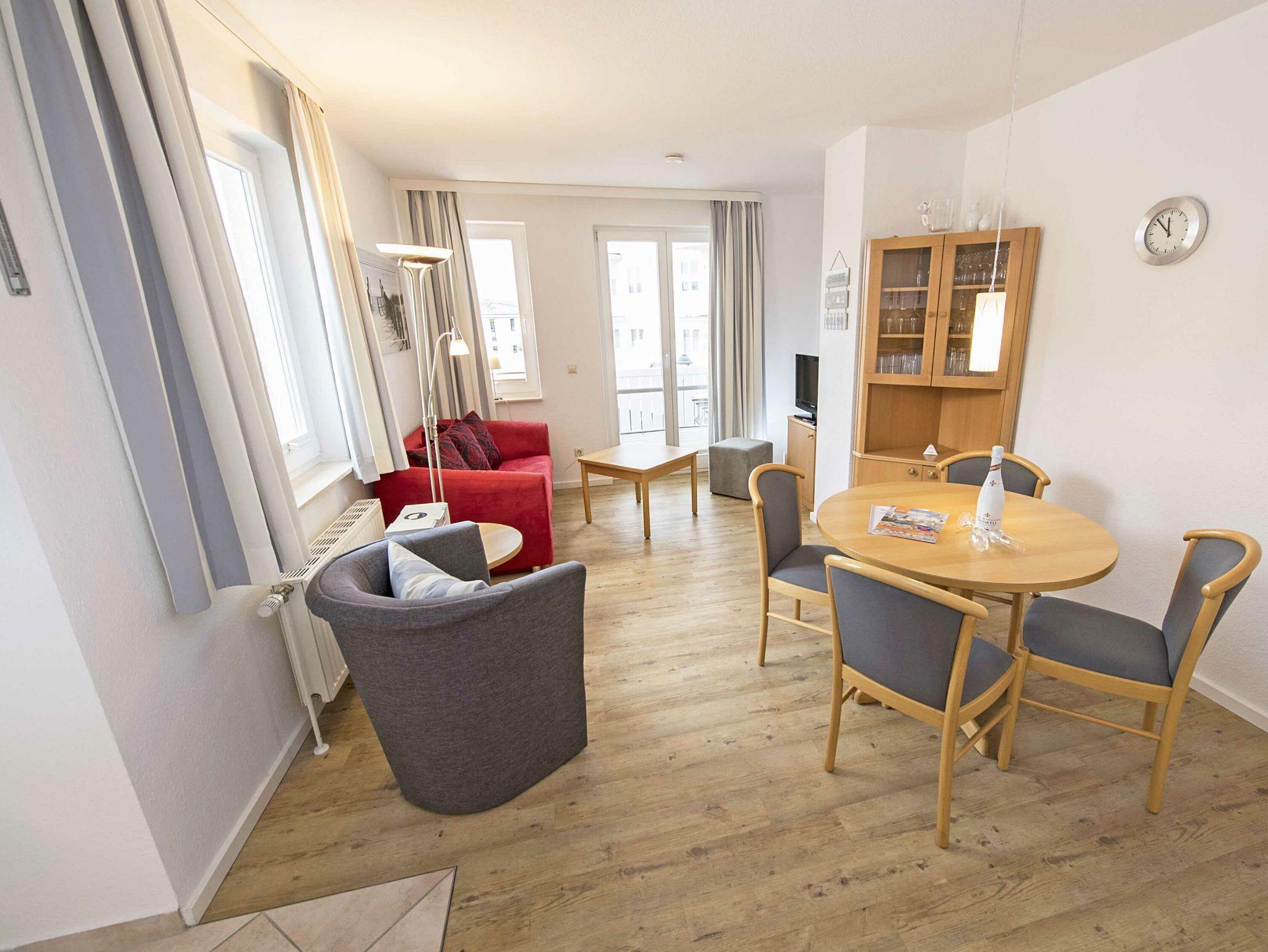 Modernes 2-Raum-Appartement mit Balkon und teilweisem Blick zum Schmachter See in Binz.