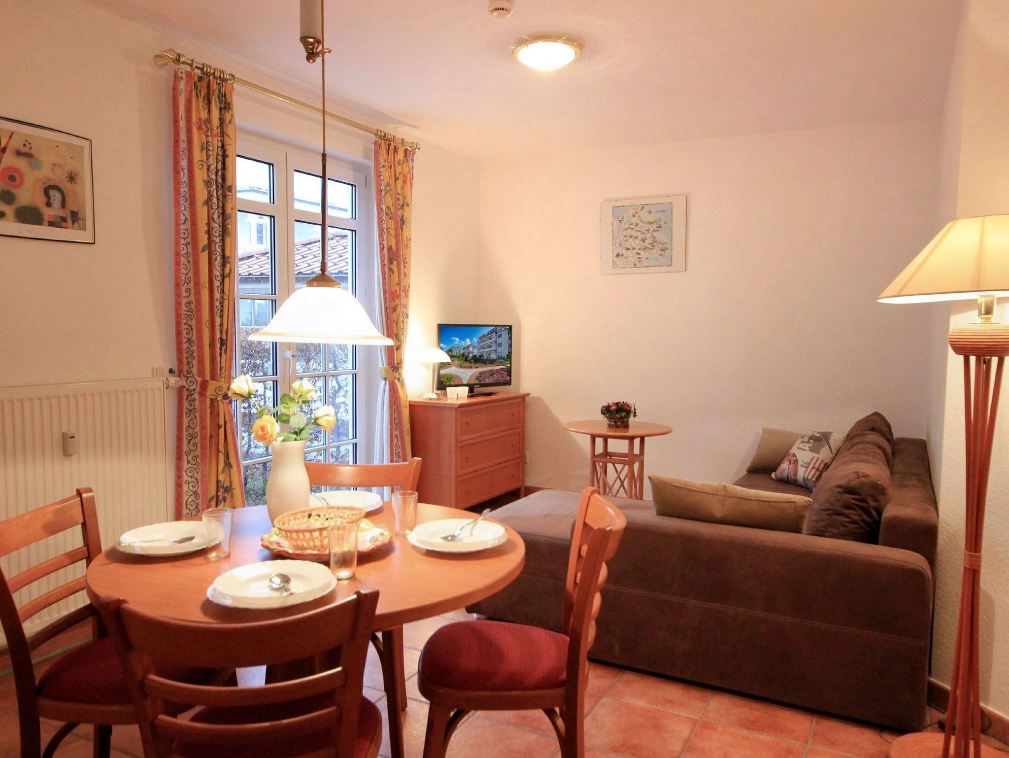 Ihre gemütliche Ferienwohnung 9RB2 mit eigener Terrasse befindet sich im Erdgeschoss der Villa Dornbusch. Die 2 Zimmer - Wohnung hat eine Größe von ca. 44 qm und ist mit bis zu 4 Personen belegbar.