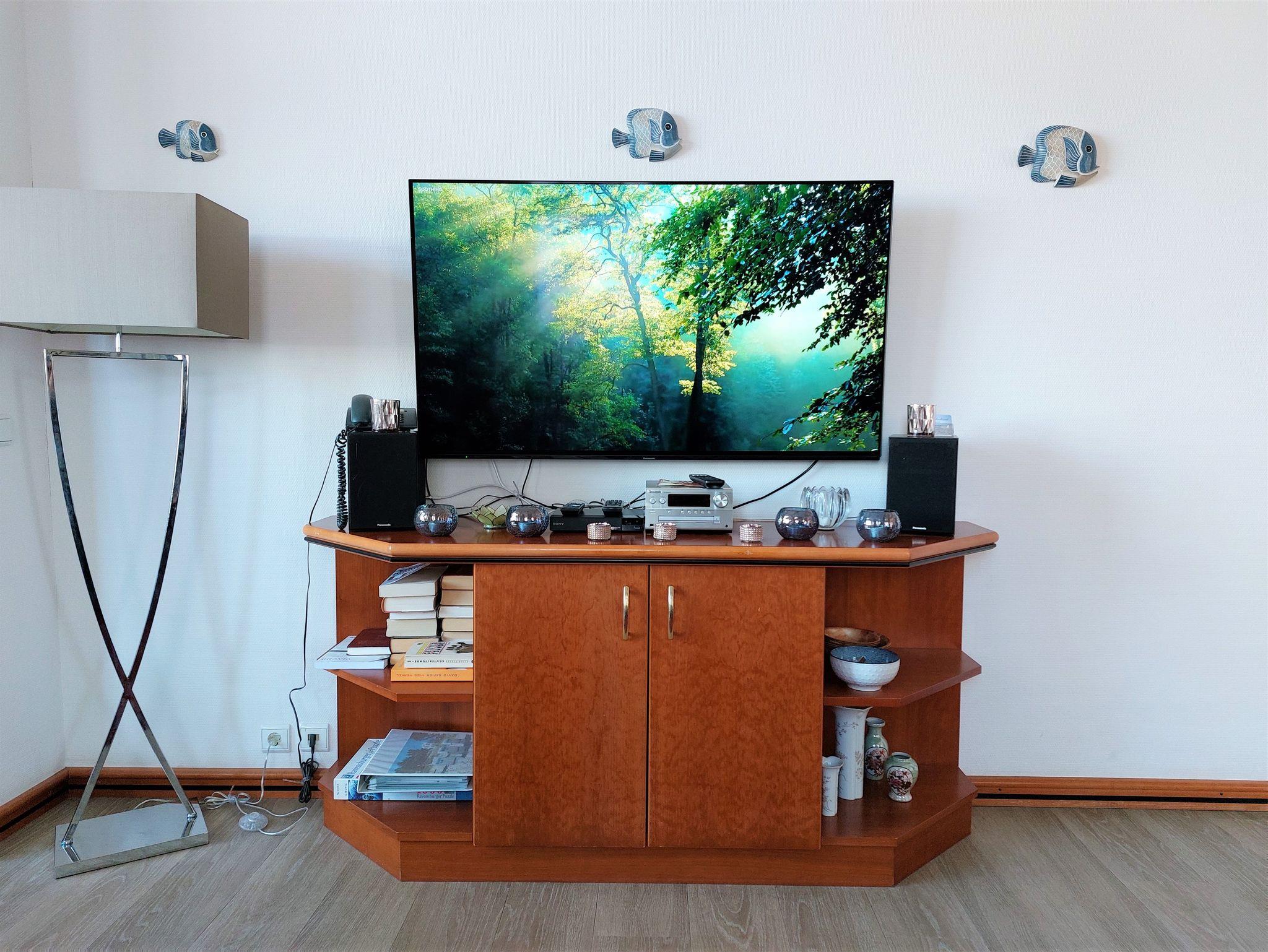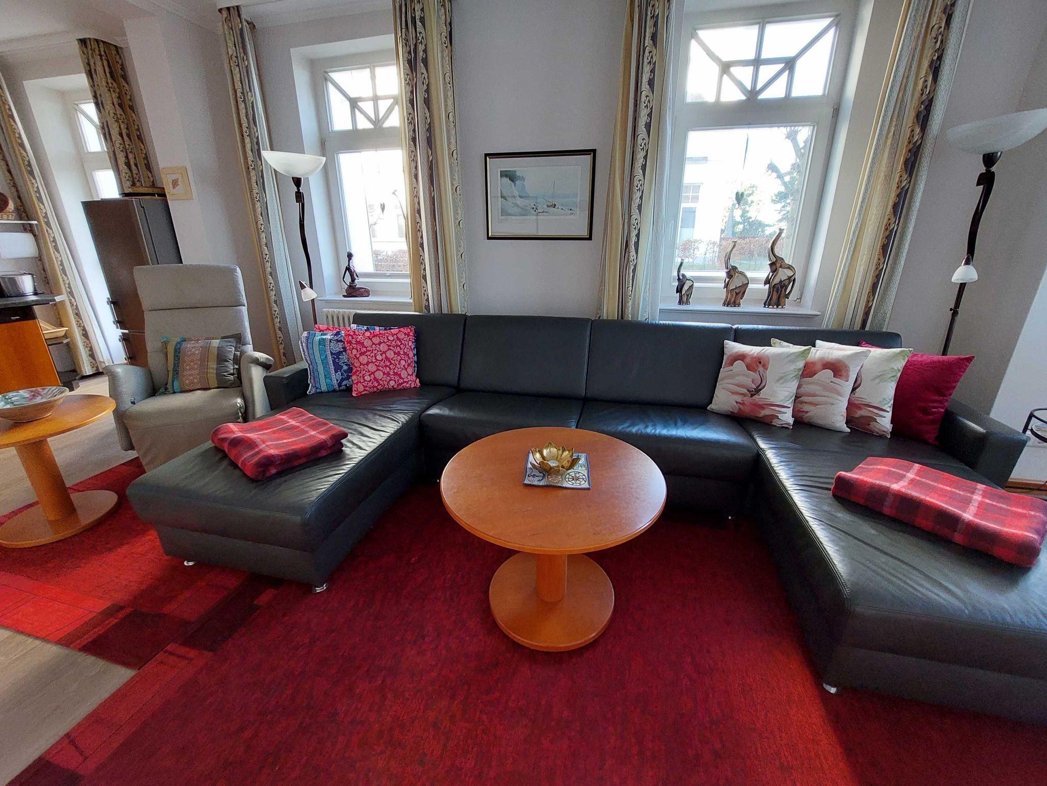 Das komfortable und stilvolle App. 552, im Hochparterre gelegen, verfügt über ein großes Wohn-/Esszimmer mit einer bequemen Ledercouch, auf der eine Aufbettungsmöglichkeit für eine 5./6. Person gegen Gebühr besteht (Liegefläche 1,40 m x 2,00 m), 55-Zoll Smart TV, Radio mit CD, USB und Bluetooth und -DVD-Blu-ray-Player. WLAN ist inklusive. Der Essplatz ist direkt an den großen Fenstern platziert, damit Sie morgens traumhafte Sonnenaufgänge und abends spektakuläre Sonnenuntergänge erleben können.