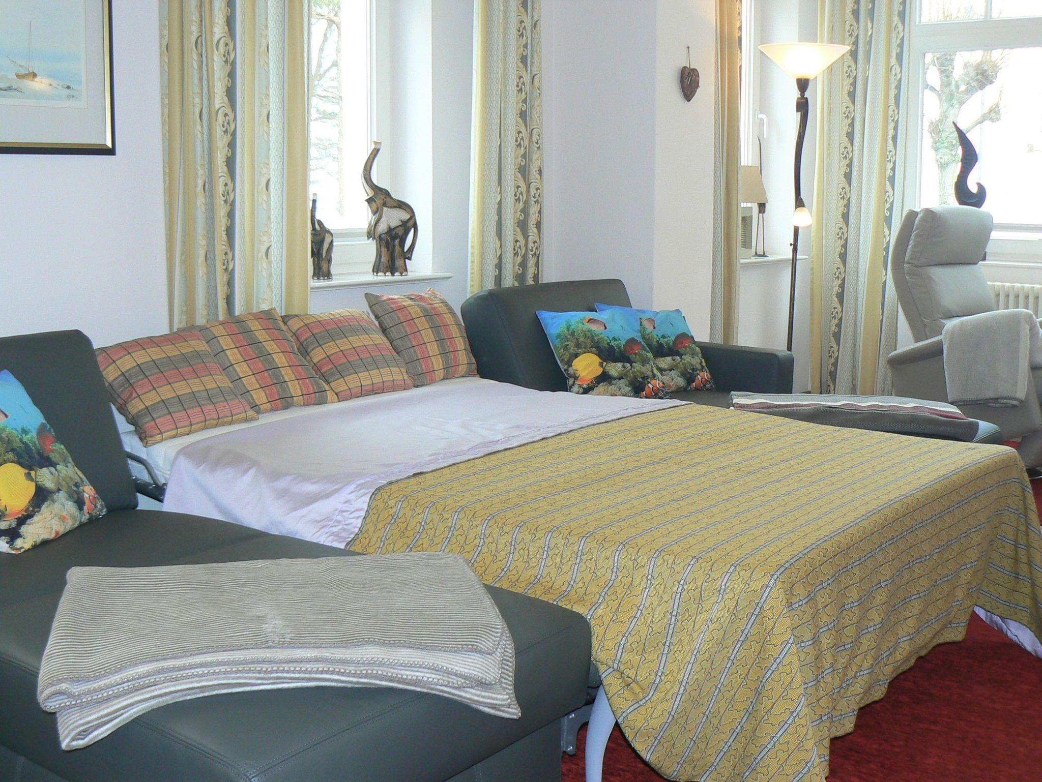 Sofern statt der Doppelbelegung der Schlafzimmer eine Schlafmöglichkeit auf der Couch im Wohnbereich gewünscht wird, wird ein Wäsche-Aufpreis in Höhe von 6,- Euro berechnet.