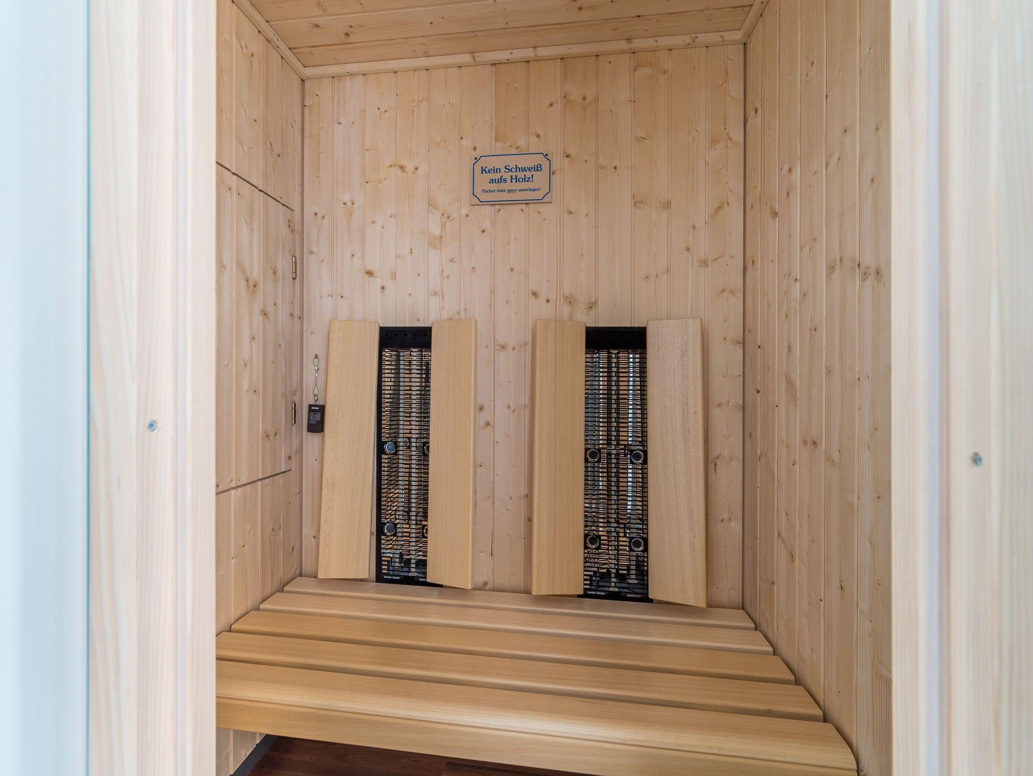 Ein modernes Duschbad mit Infrarot-Sauna sowie ein separates Schlafzimmer mit einem komfortablen Doppelbett, einem Flachbild-TV und ausreichend Stauraum für Ihre Garderobe gehören ebenfalls zu diesem Appartement.