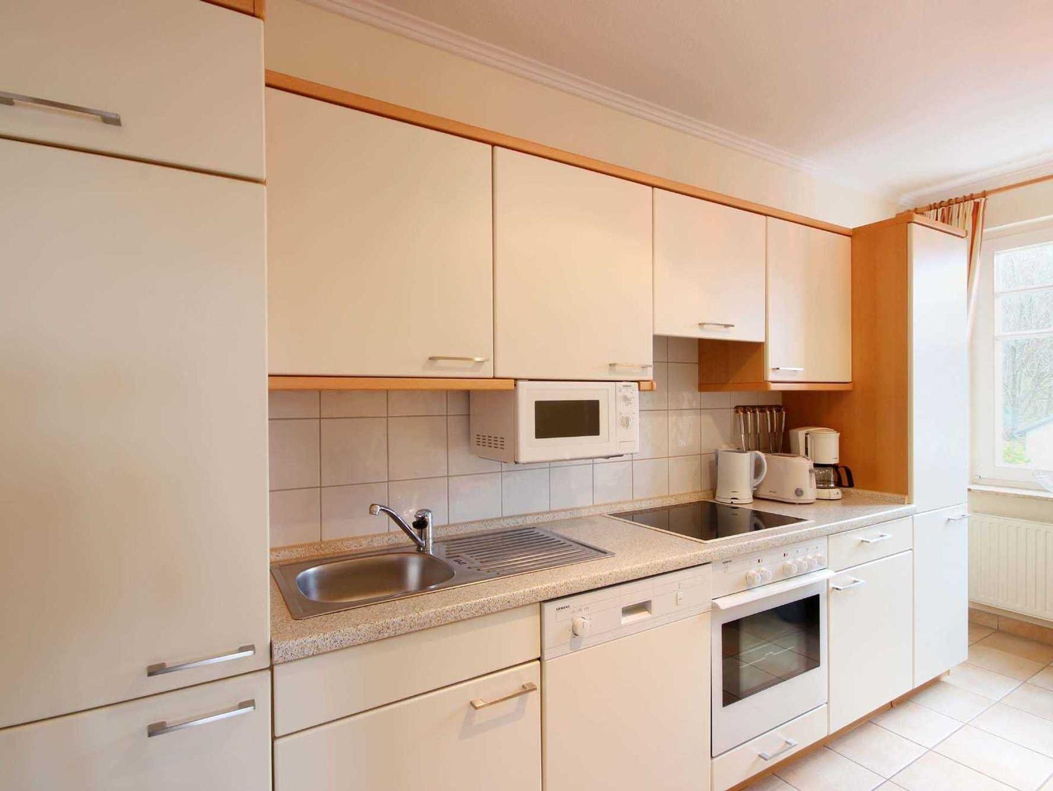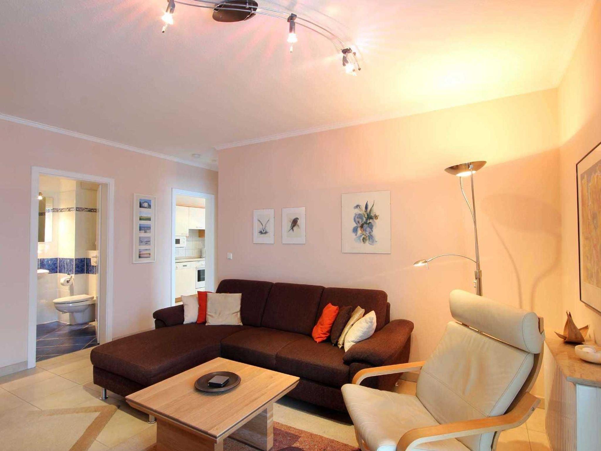 Im Wohnraum kann auf dem Schlafsofa eine weitere Person schlafen. Außerdem finden Sie im modernen Wohnbereich einen Schwingsessel, Flachbild - TV, einen DVD-Recorder sowie einen kostenfreien WLAN-Zugang. Die moderne Küche ist mit Geschirrspülmaschine, Backofen, Mikrowelle, Kühlschrank und diversen Kleingeräten ausgestattet. Einen schönen Süd-Westbalkon befindet sich vor dem Wohnraum.