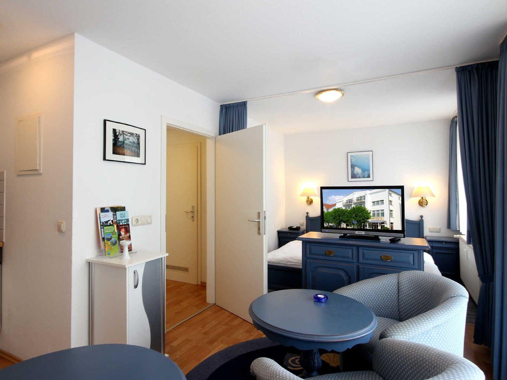 Ihre 1-Zimmerwohnung 23RB4 hat eine Größe von ca. 30 qm und ist für 2 Personen eingerichtet. Sie befindet sich im Hochparterre und verfügt über einen Südbalkon. Dem kombinierten Wohn- Schlafraum schließt sich eine halboffene Küche und der Balkon an. Vom vorgelagerten Flur aus erreichen Sie das geräumige Duschbad mit Waschtisch, Handtuchheiztrockner und WC. Im Wohn-Schlafraum finden Sie neben einer Sitz- und einer Essecke ein massives Doppelbett, ein Flachbild-TV, der kostenlose WLAN-Zugang und ein Radio. Die Küche verfügt u.a. über Backofen, Geschirrspülmaschine, Mikrowelle Kühlschrank, Kaffeemaschine, Toaster, Wasserkocher und diverse andere Küchenhelfer. Im Flur finden Sie einen geräumigen Kleiderschrank. Ihr Vierbeiner ist hier Herzlich Willkommen! Ein kostenloser PKW-Stellplatz steht Ihnen auf dem Parkplatz Zentrum (ca. 400 m vom Objekt entfernt) während Ihres Aufenthaltes zur Verfügung.