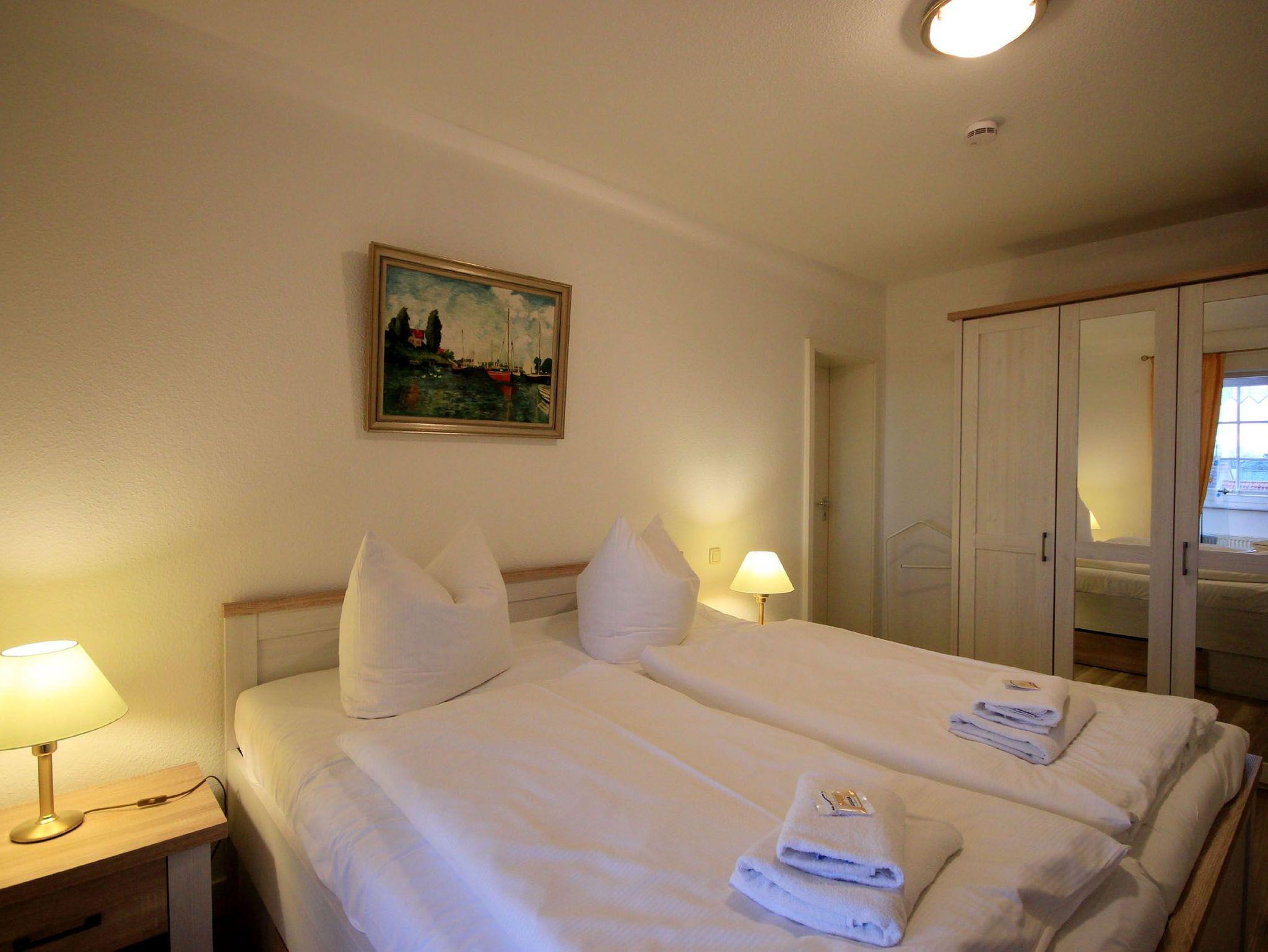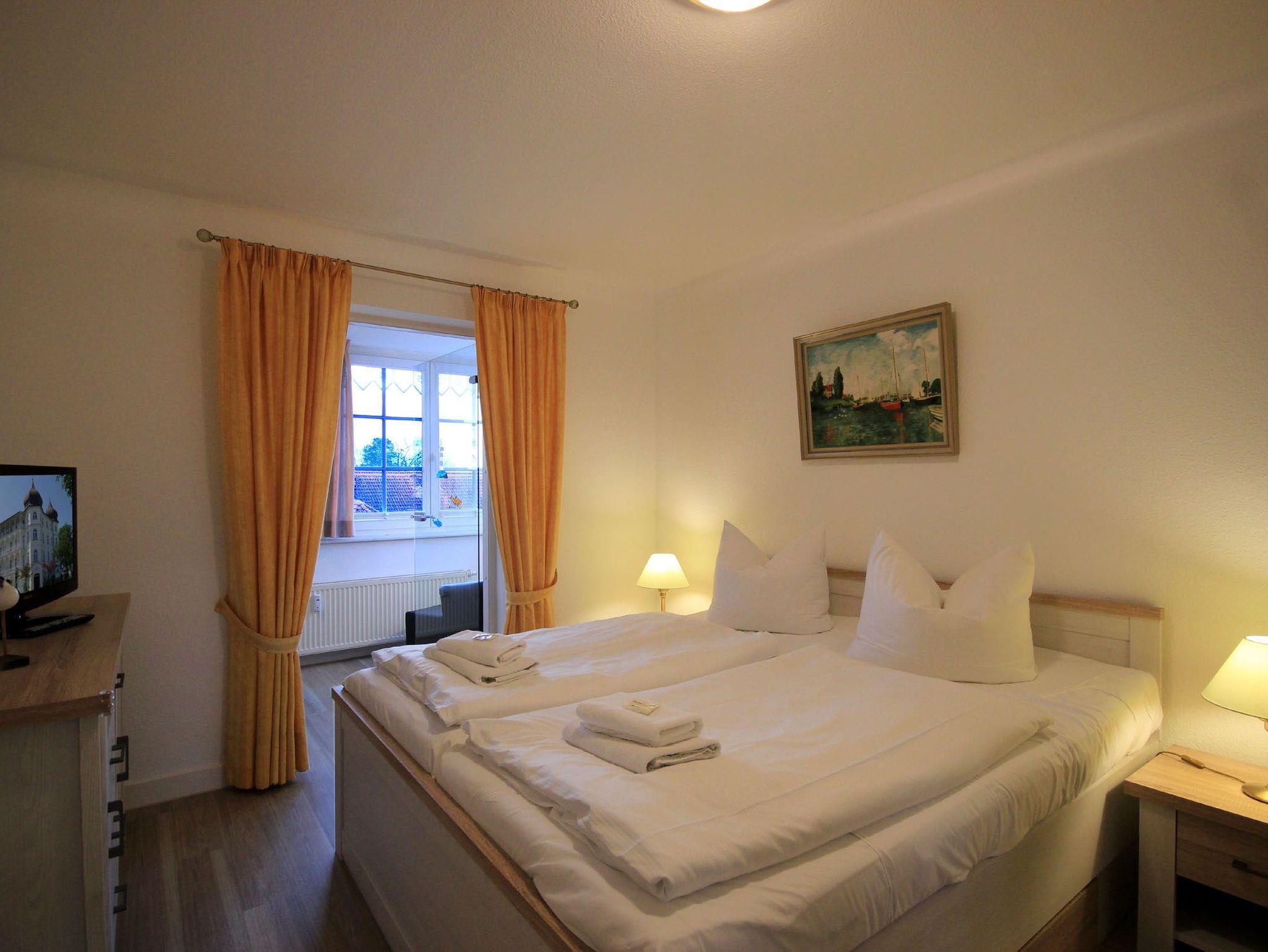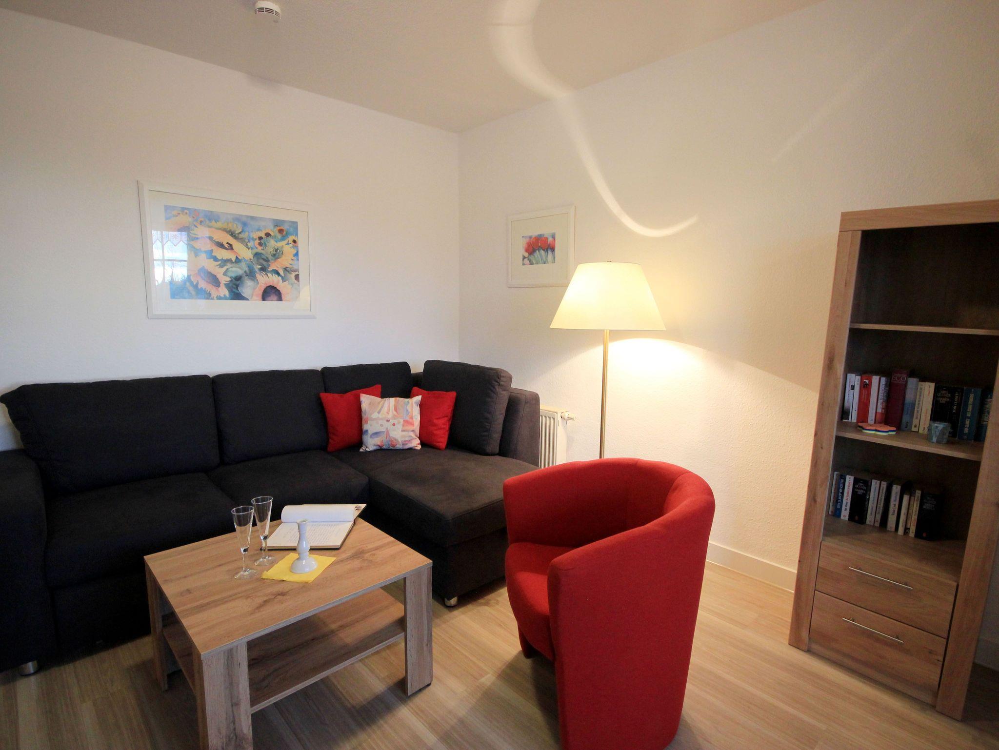 Die Wohnung teilt sich auf in Wohnraum mit Sitzgruppe, TV-Gerät mit integrierten Radiosendern, Schlafraum mit Doppelbett, TV auf einem Sideboard und großem Schrank, Bad und Veranda mit Küchenzeile. Diese verfügt über einen Geschirrspüler, einen Herd mit Ceranfeld, einen Backofen, einen Kühlschrank mit Gefrierfach und weitere Kleingeräte. Die gemütliche Polster-Wohnlandschaft im Wohnzimmer kann zur Doppelbettcouch umgebaut werden und dient im Bedarfsfall für die 3. und 4. Person als Schlafgelegenheit. Durch das Schlafzimmer erreicht man das Badezimmer, welches mit Waschtisch, Föhn, Dusche, Duschhocker und WC ausgestattet ist. Die Wohnung verfügt über kostenloses WLAN.