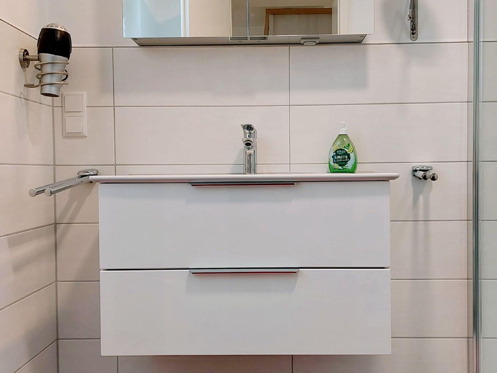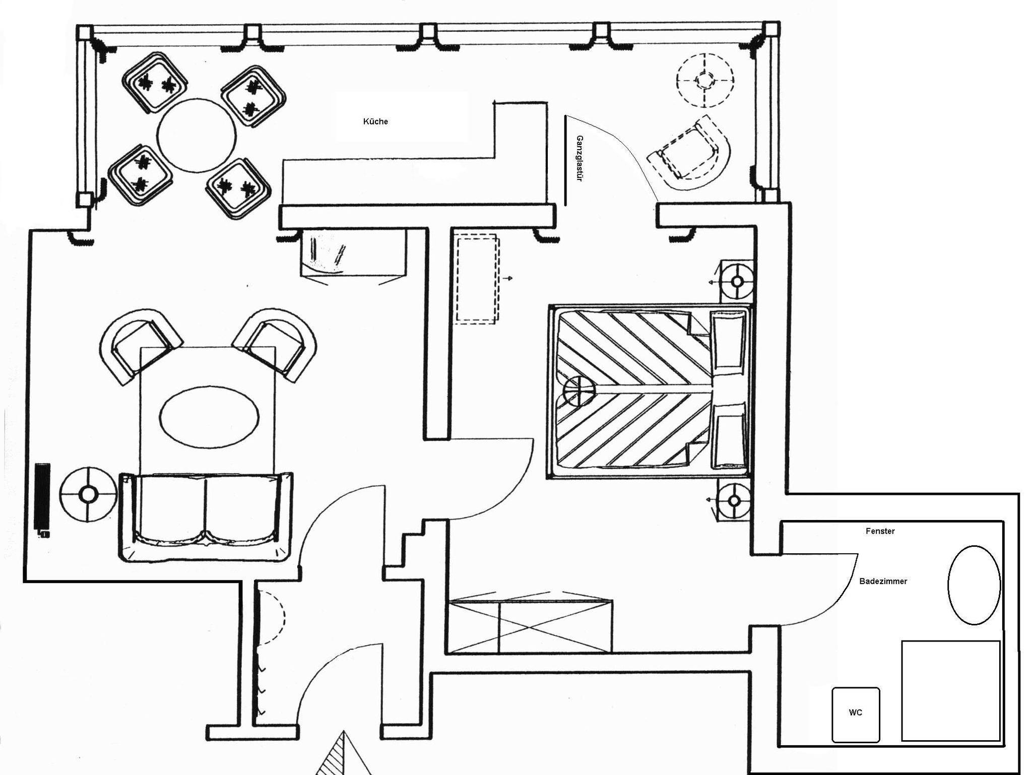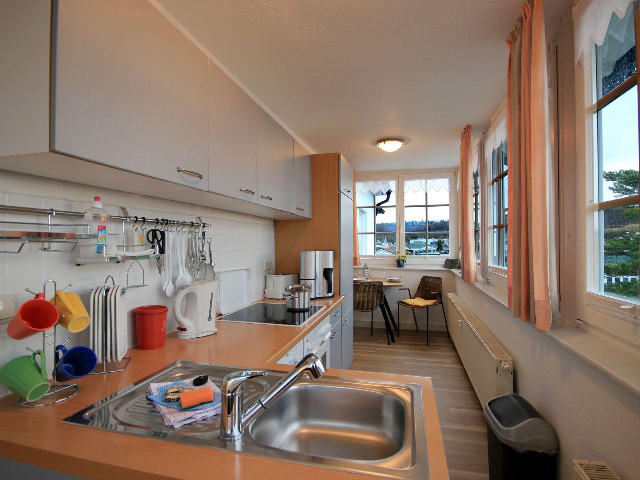 Die Wohnung teilt sich auf in Wohnraum mit Sitzgruppe, TV-Gerät mit integrierten Radiosendern, Schlafraum mit Doppelbett, TV auf einem Sideboard und großem Schrank, Bad und Veranda mit Küchenzeile. Diese verfügt über einen Geschirrspüler, einen Herd mit Ceranfeld, einen Backofen, einen Kühlschrank mit Gefrierfach und weitere Kleingeräte. Die gemütliche Polster-Wohnlandschaft im Wohnzimmer kann zur Doppelbettcouch umgebaut werden und dient im Bedarfsfall für die 3. und 4. Person als Schlafgelegenheit. Durch das Schlafzimmer erreicht man das Badezimmer, welches mit Waschtisch, Föhn, Dusche, Duschhocker und WC ausgestattet ist. Die Wohnung verfügt über kostenloses WLAN.
