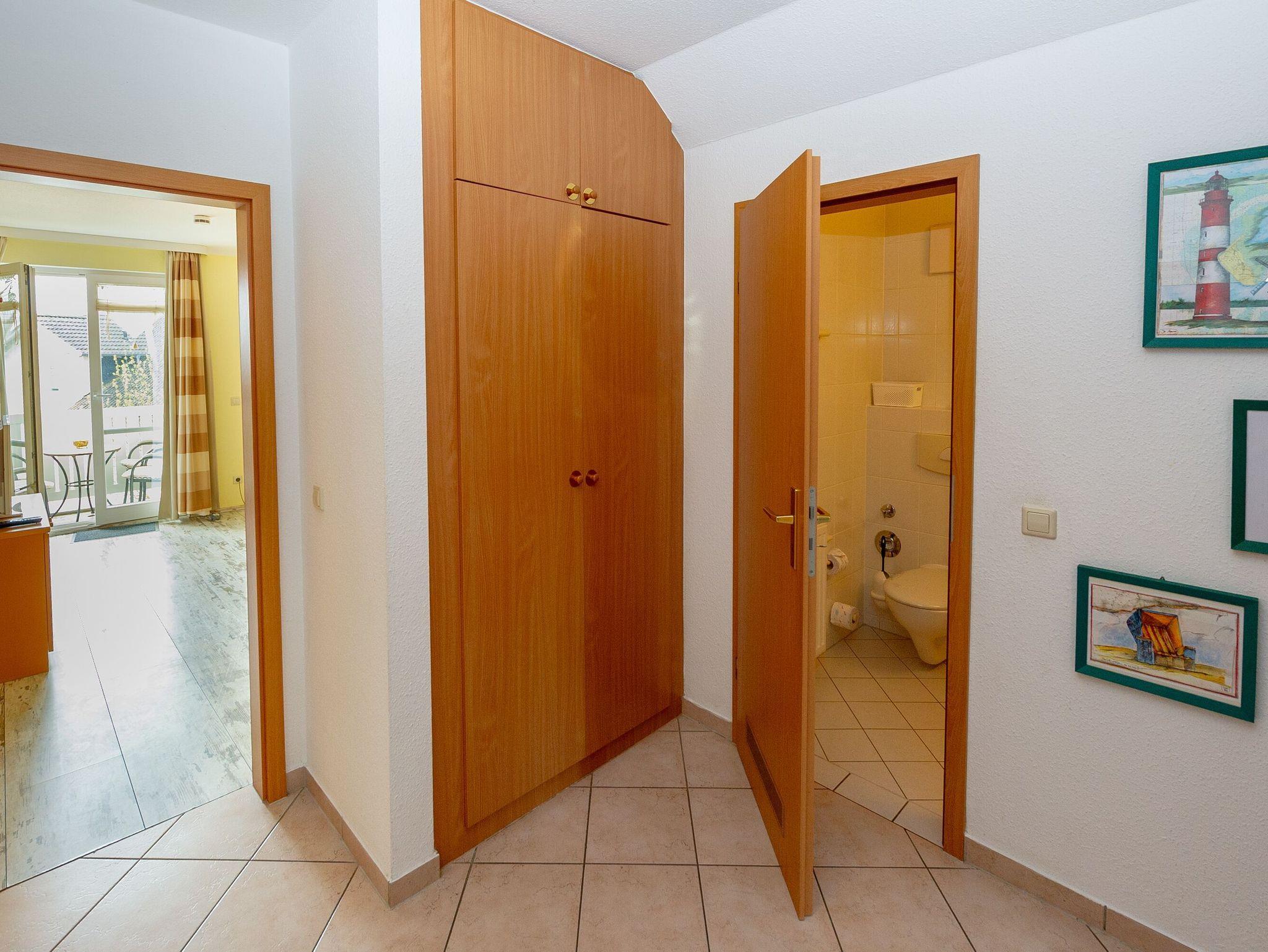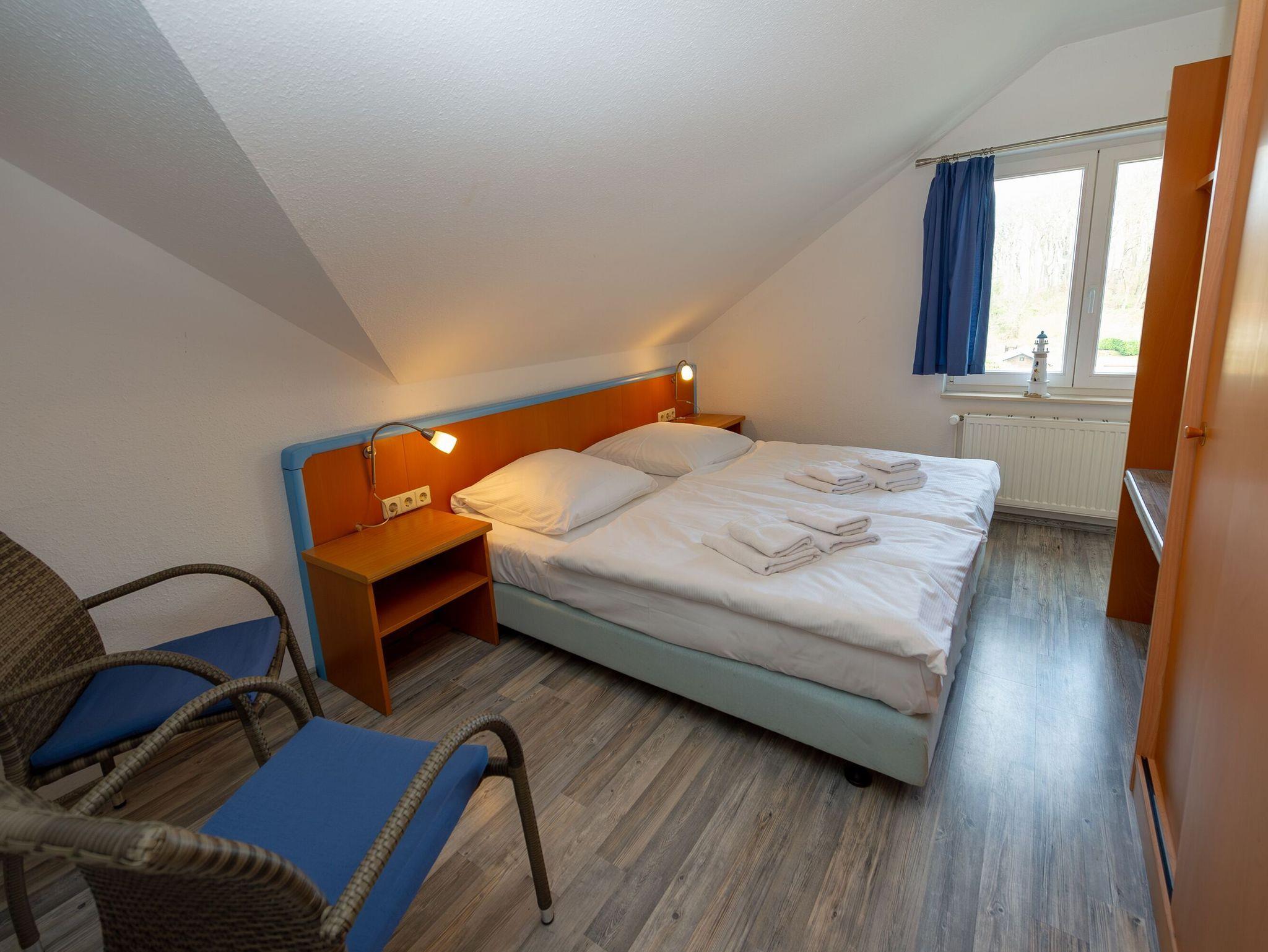Im separaten Schlafzimmer finden Sie ein gemütliches Doppelbett und natürlich auch einen Kleiderschrank mit ausreichend Platz für Ihre Garderobe. Das Bad verfügt über Dusche/WC, Waschbecken, Spiegel und einen Fön. Alle Böden sind entweder gefliest oder mit einem modernen Belag in heller Landhausendielenoptik ausgestattet.