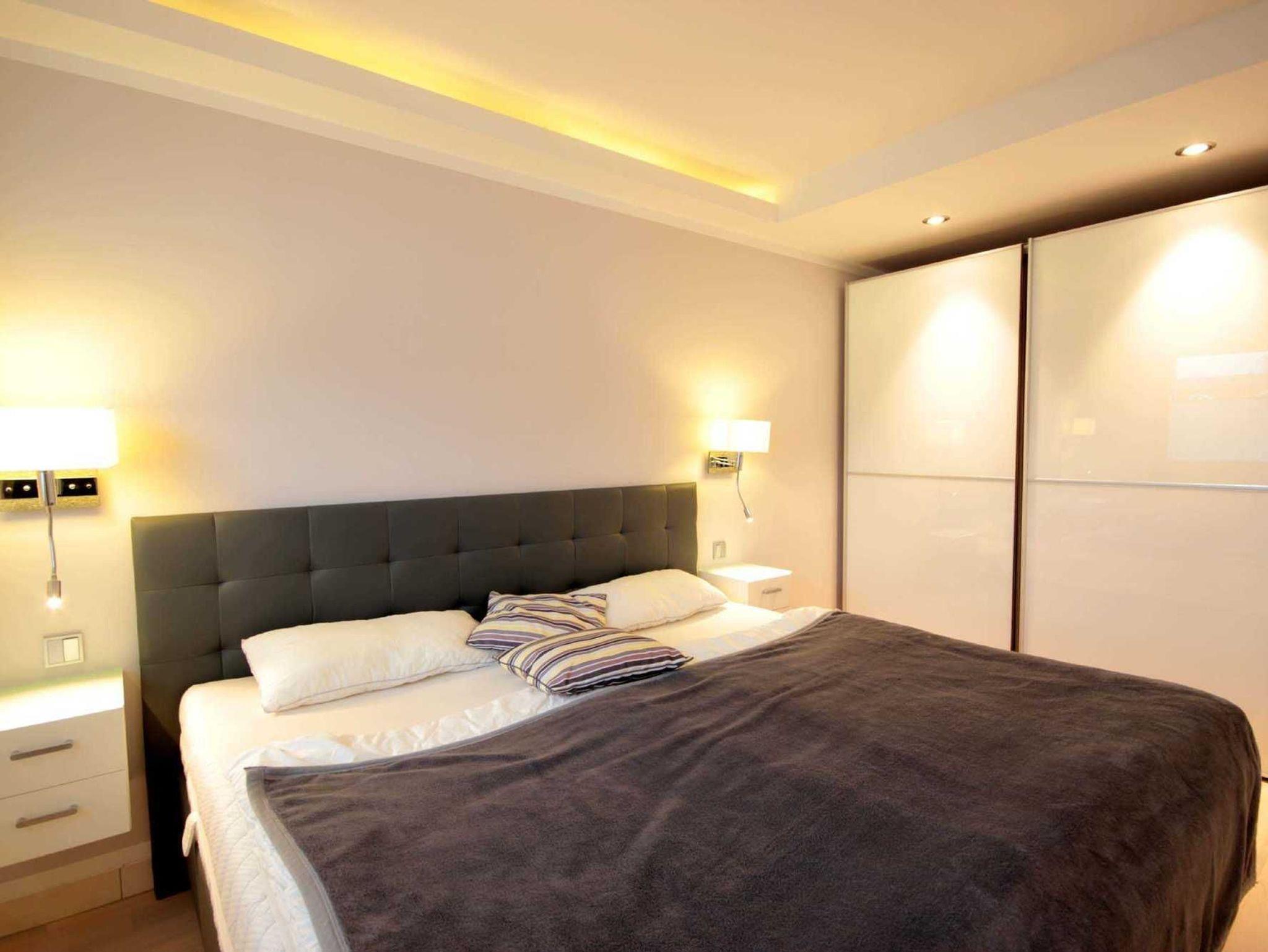 Der zweite Schlafbereich begrüßt Sie mit einem Doppelbett (1,80m x 2,00m) und einem weiteren Flachbild-TV. Zusätzliche Verdunklung-Plissees bieten in beiden Schlafräumen eine erholsame Nachtruhe.