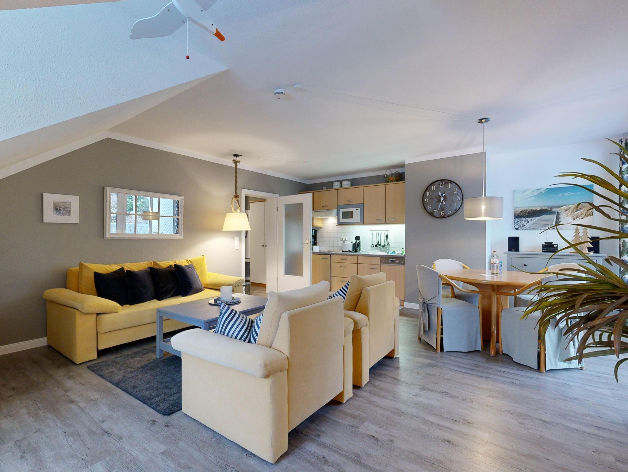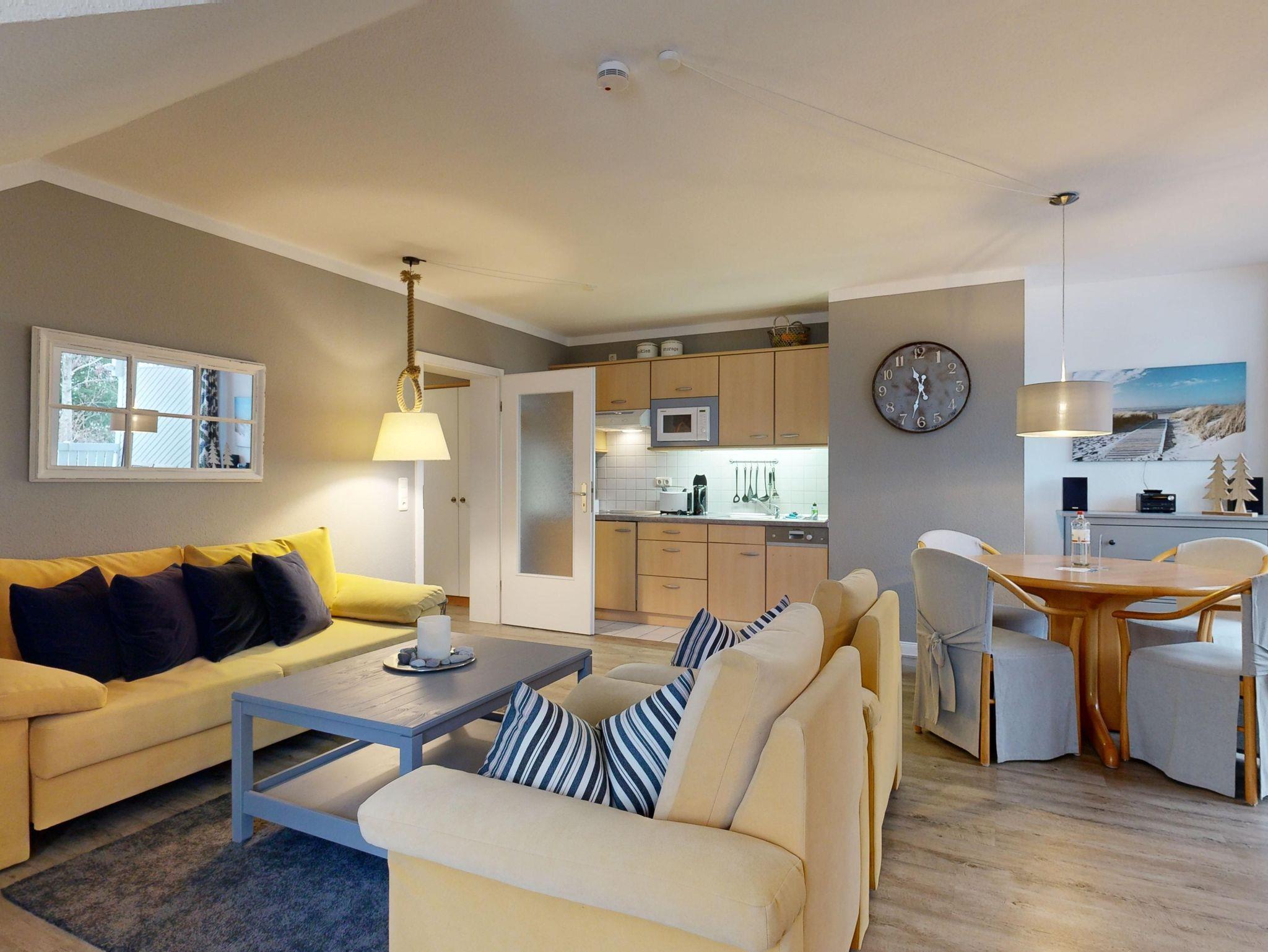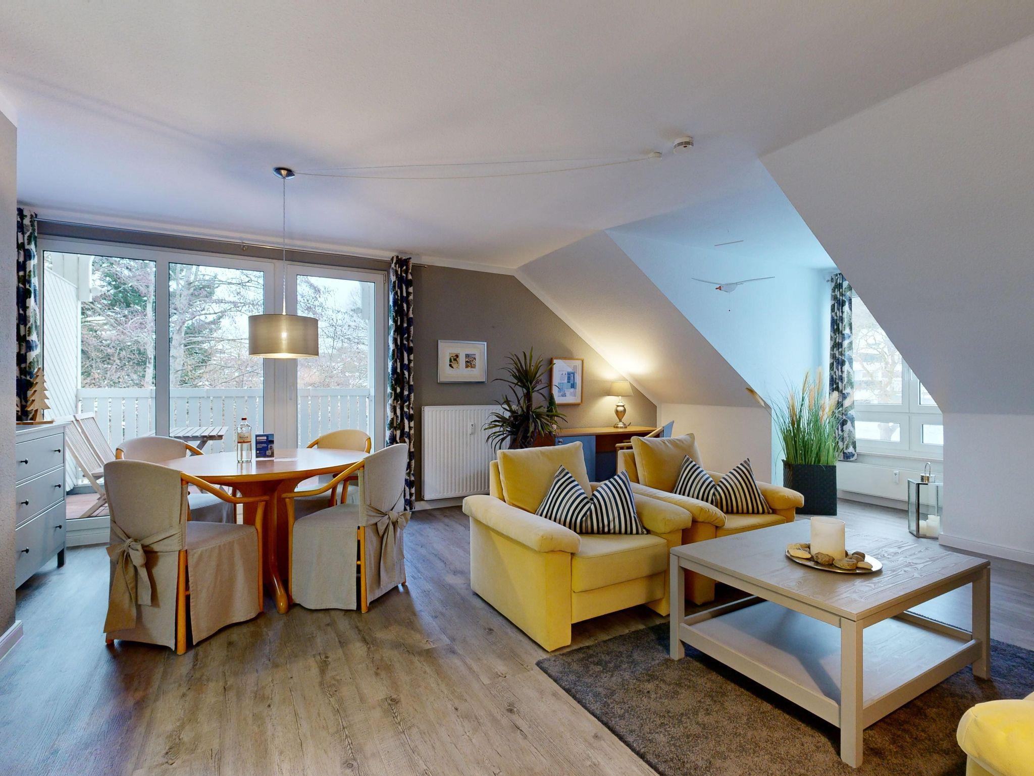 Ferienwohnung Binzer Sterne 59 für bis zu 6 Personen im im 2. OG, Typ C (3 Zimmer / 68 m²) des Appartementhauses Binzer Sterne, 2 Schlafzimmer, Parkplatz (gegen Gebühr) und freies WLAN.