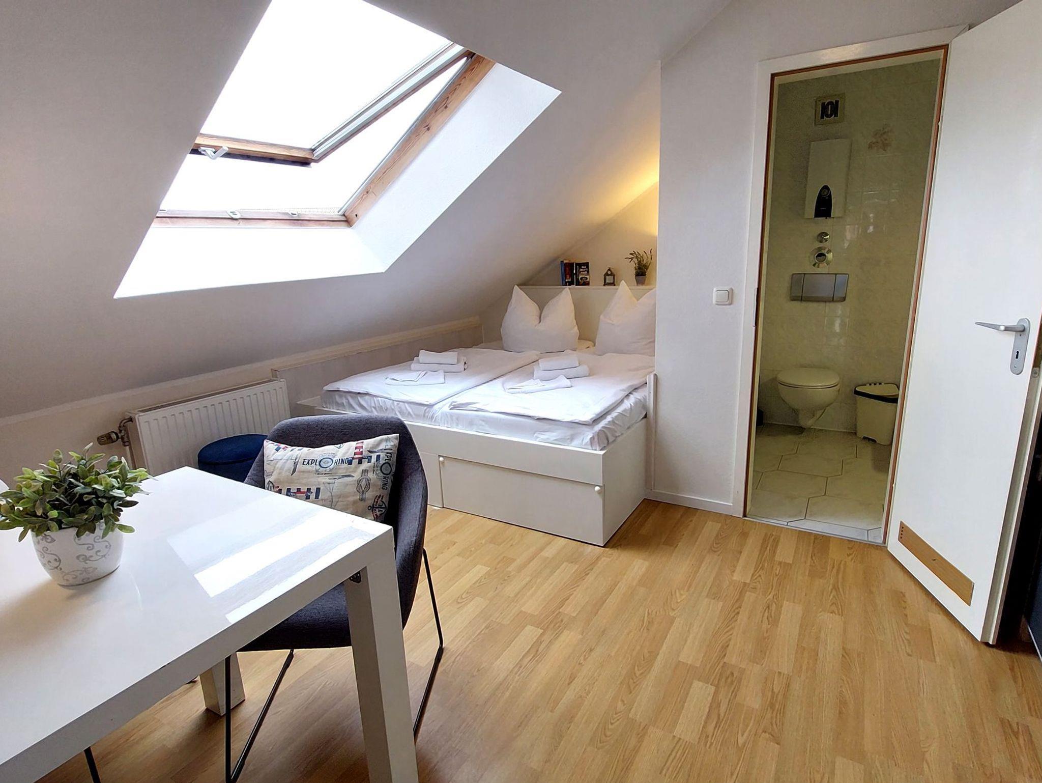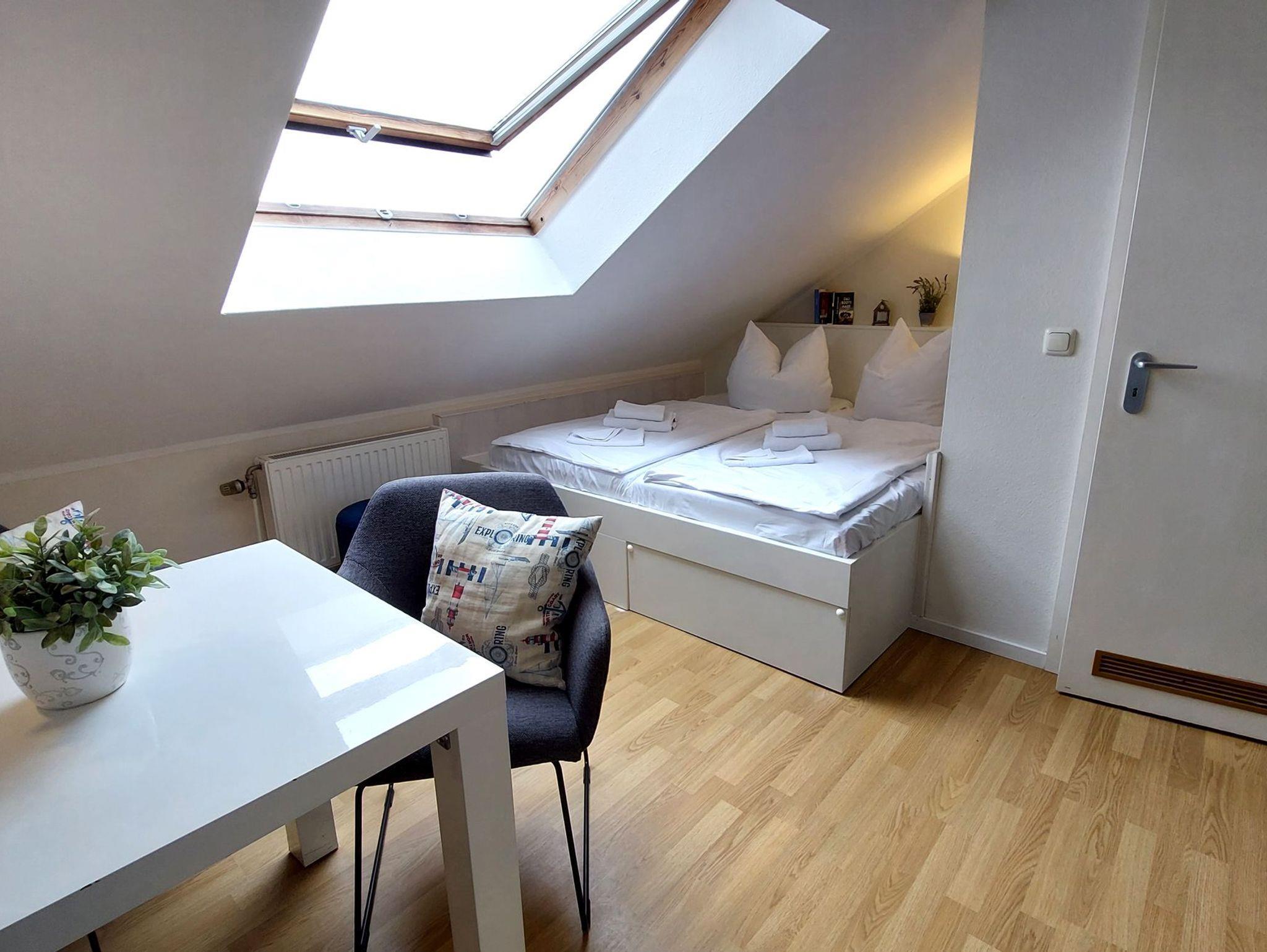 Gemütliches Microappartement in Binz mit Dachschräge, Miniküche, WLAN und kostenfreiem Stellplatz.