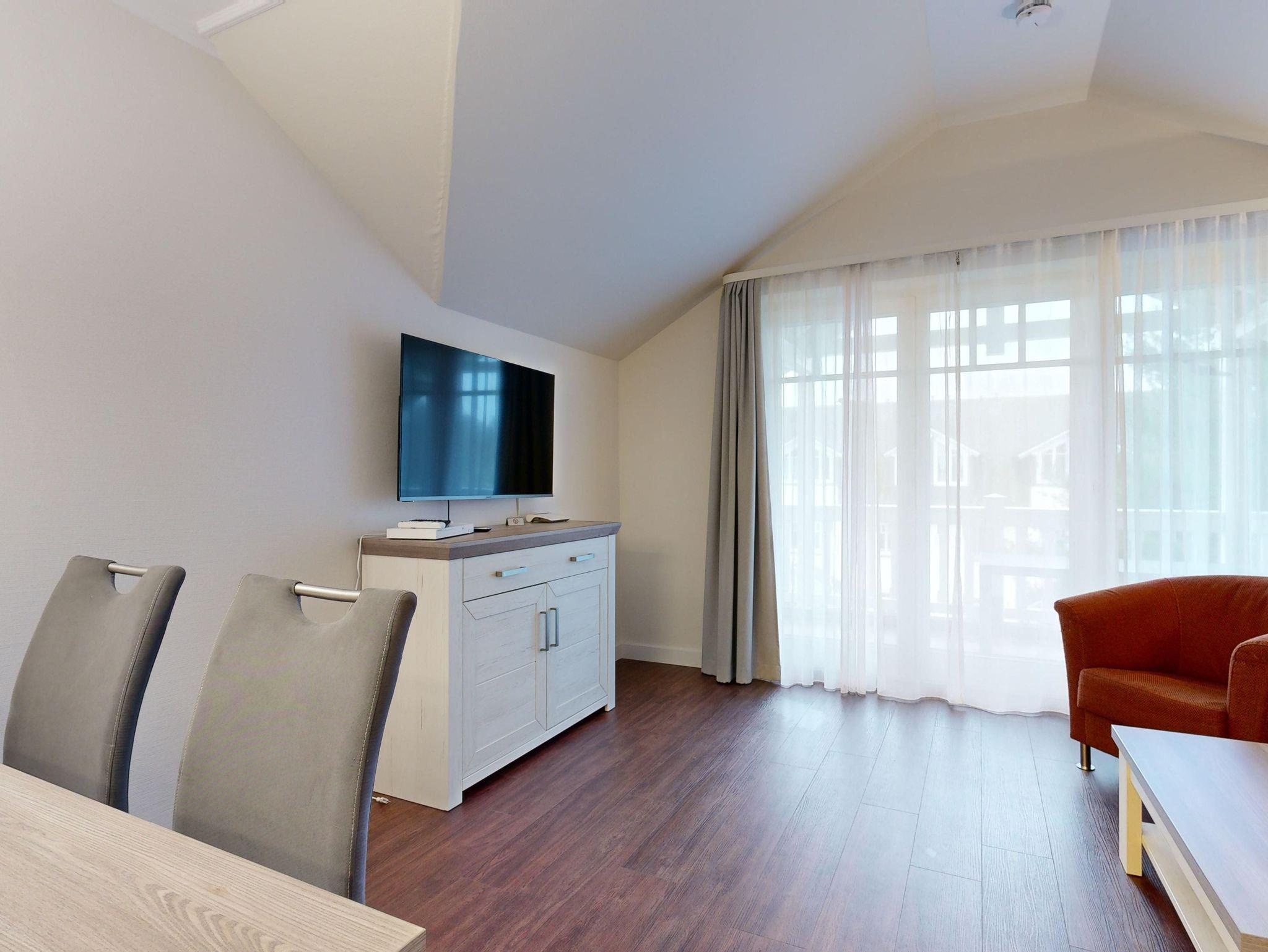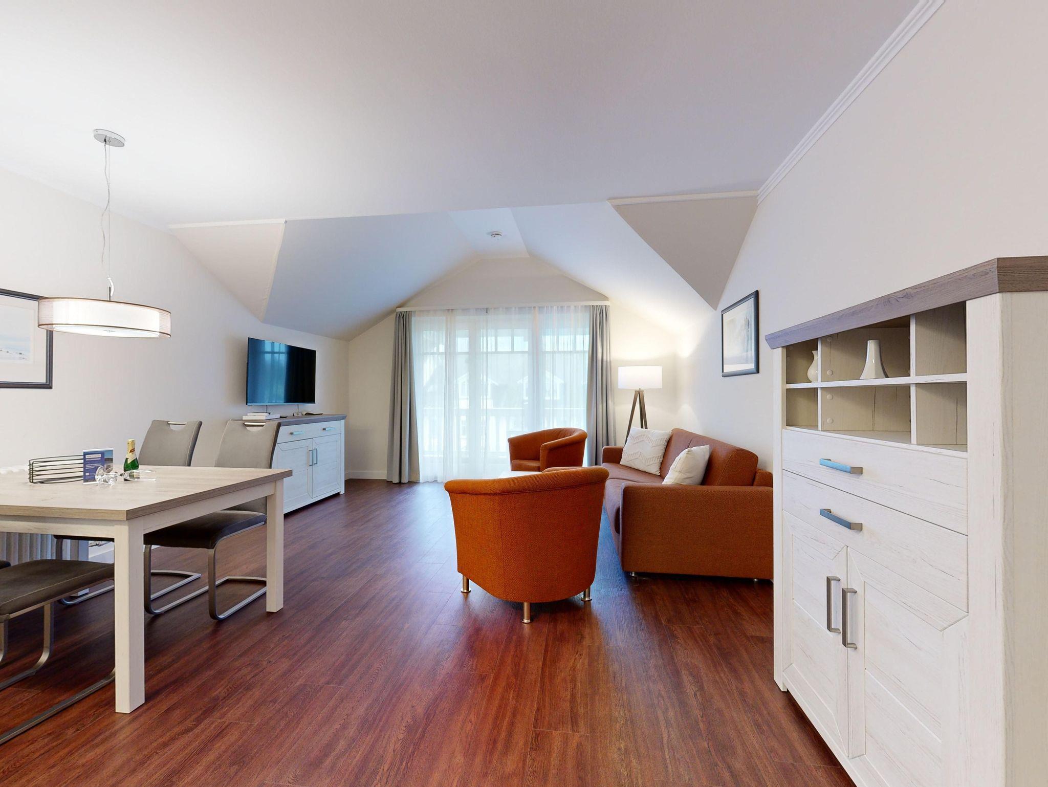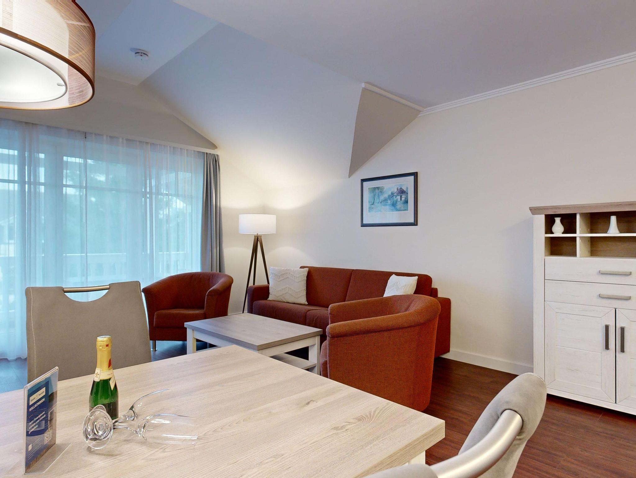 Im Dünenpark Binz befindet sich im Haus 9 die großzügige Komfort-Komfort-Ferienwohnung im OG (2 Zimmer / 62 m²) mit 1 Schlafzimmer, einer Schlafcouch und Balkon