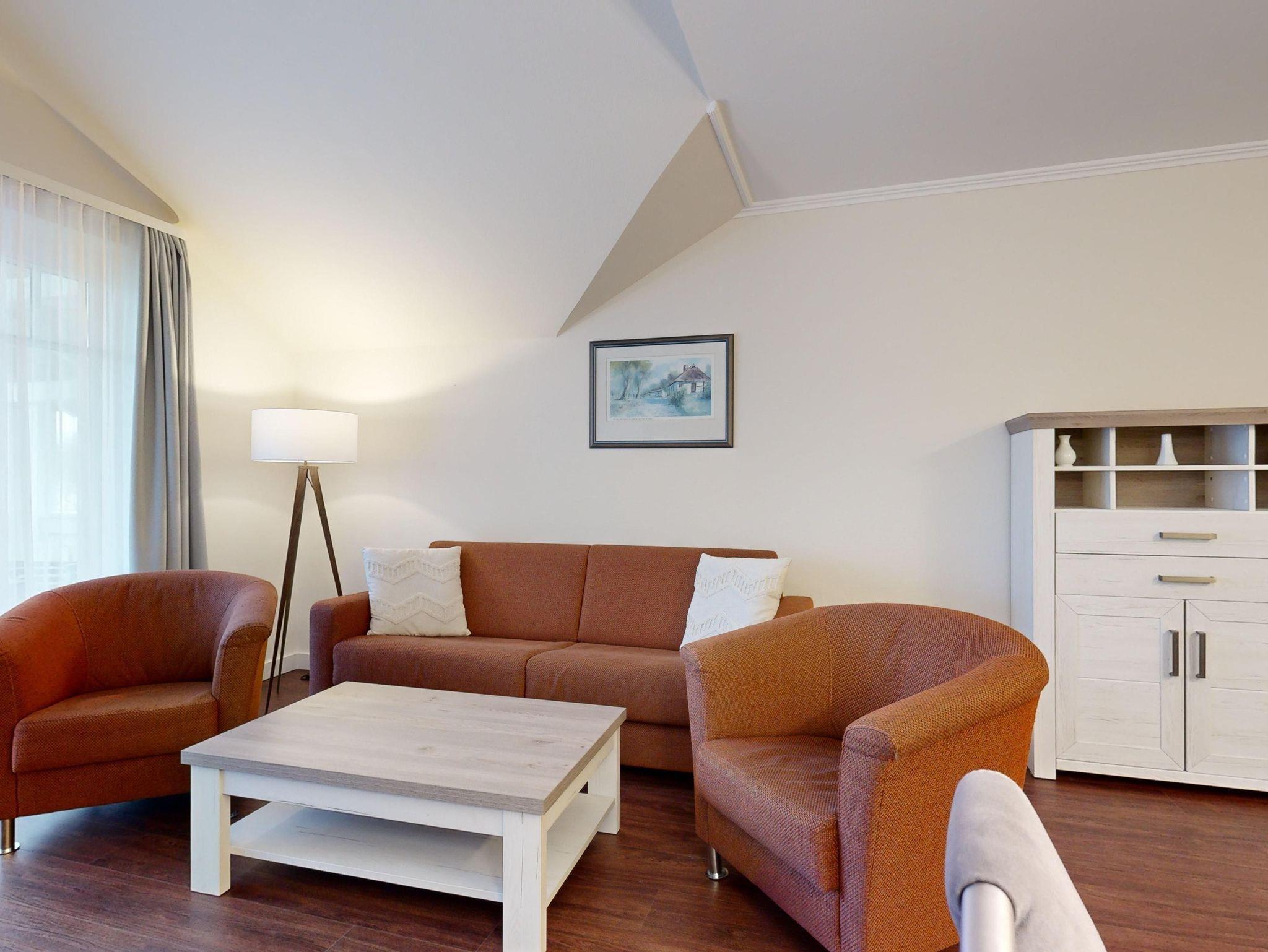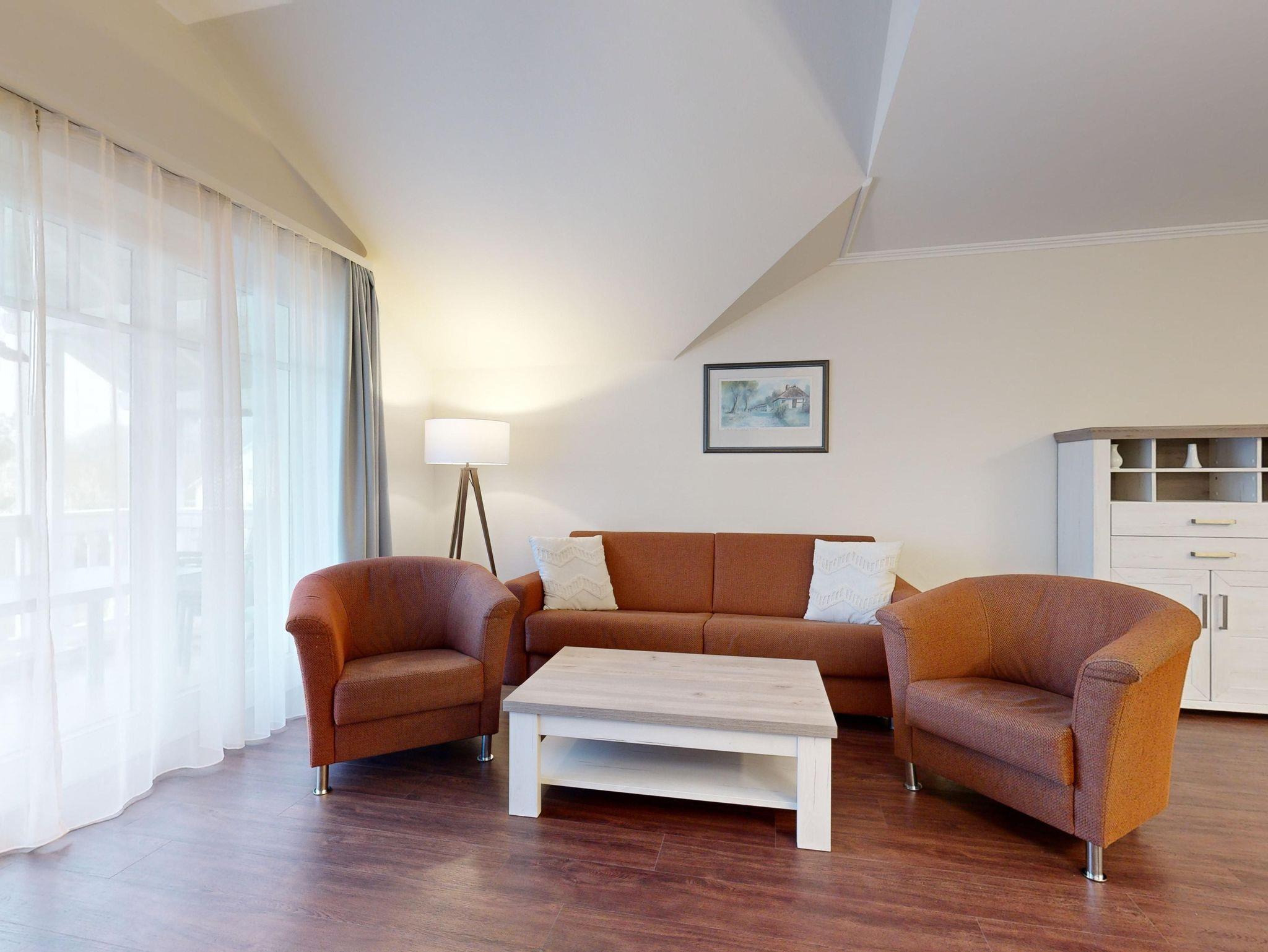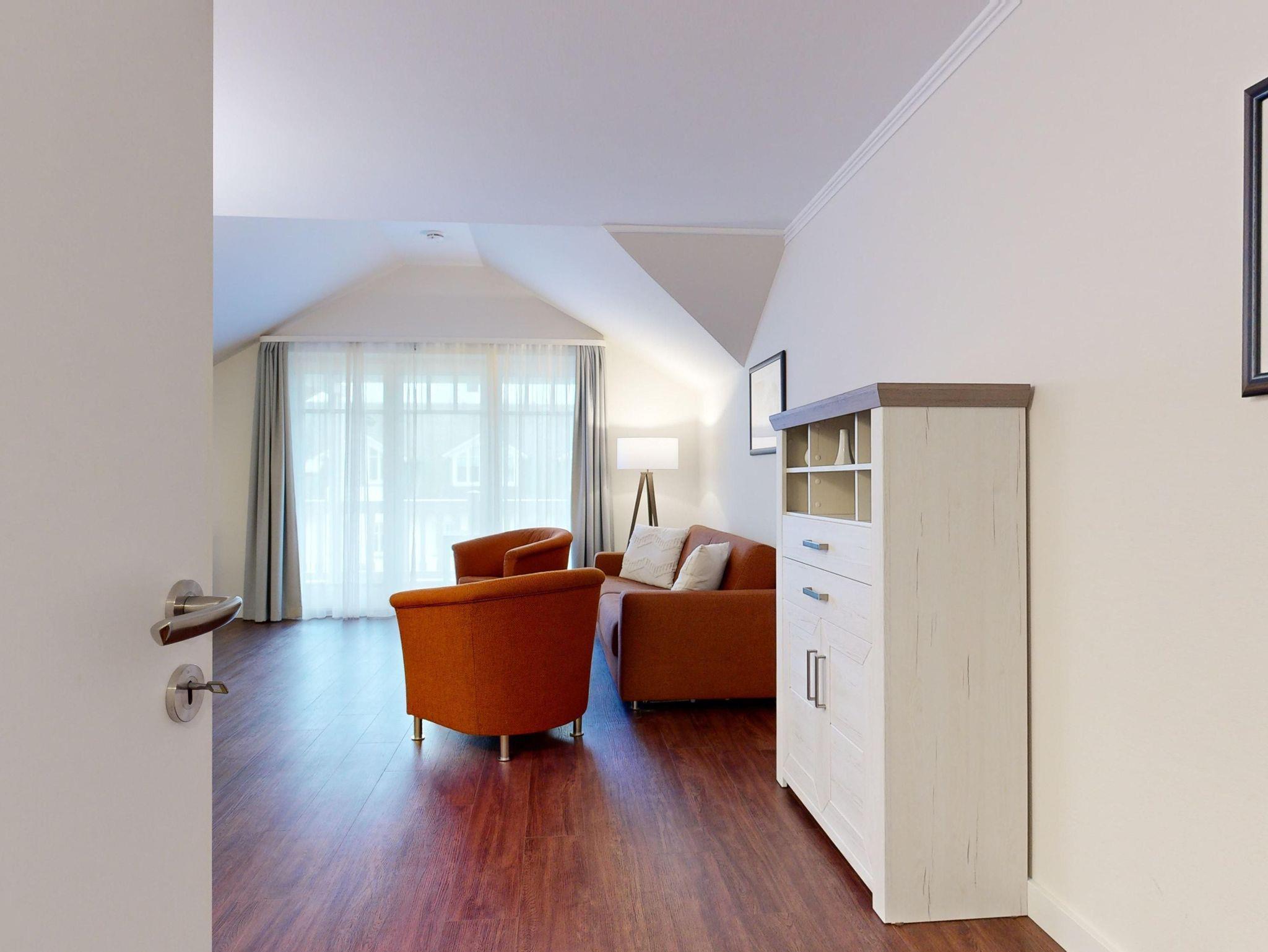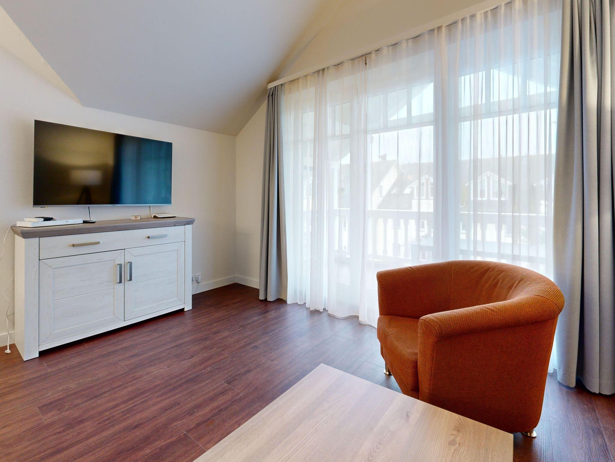 Im Dünenpark Binz befindet sich im Haus 9 die großzügige Komfort-Komfort-Ferienwohnung im OG (2 Zimmer / 62 m²) mit 1 Schlafzimmer, einer Schlafcouch und Balkon