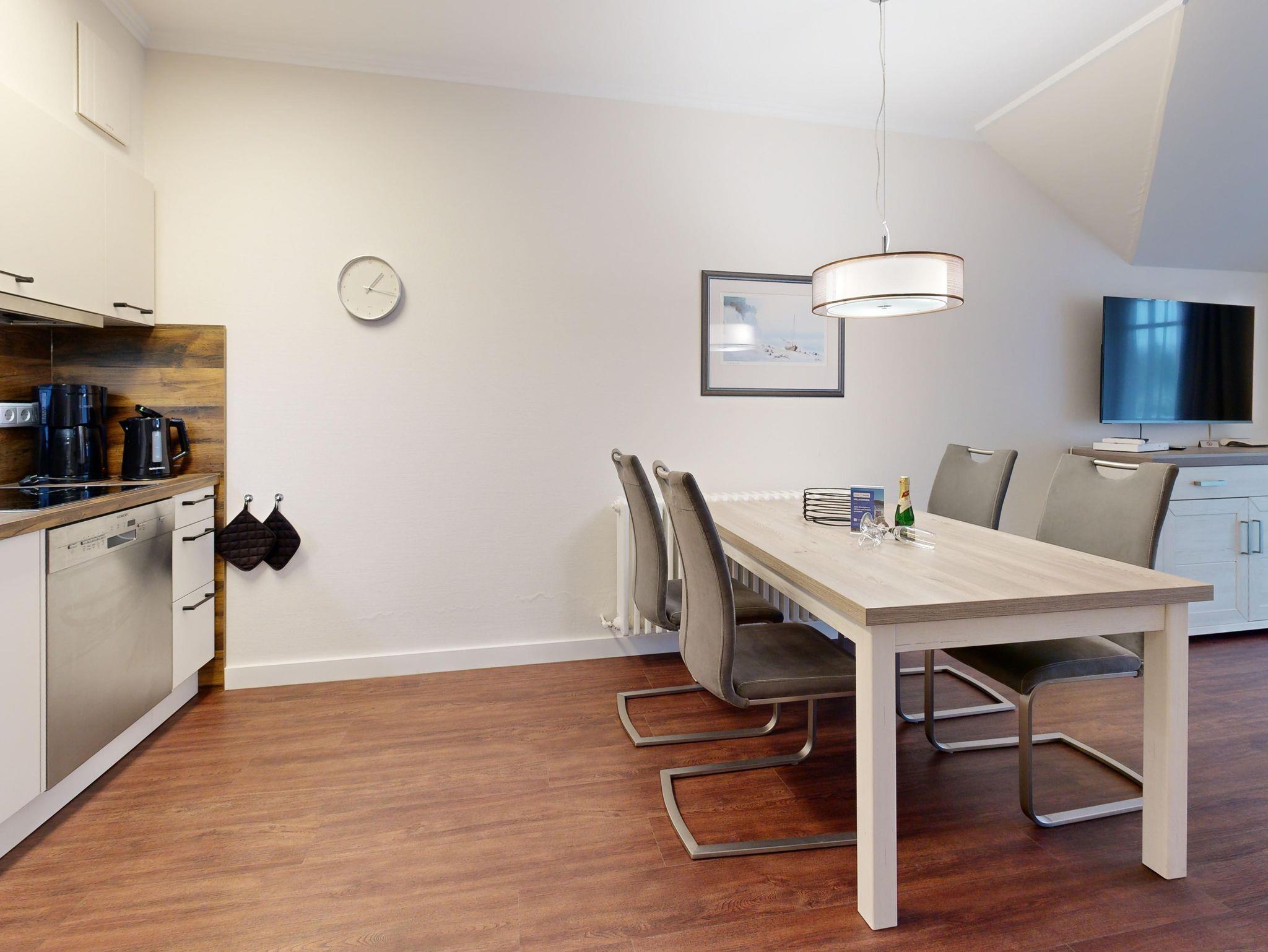 Ausstattung der großzügigen Komfort-Ferienwohnung im Dachgeschoss (2 Zimmer / 62 m², Haus Nr.9):