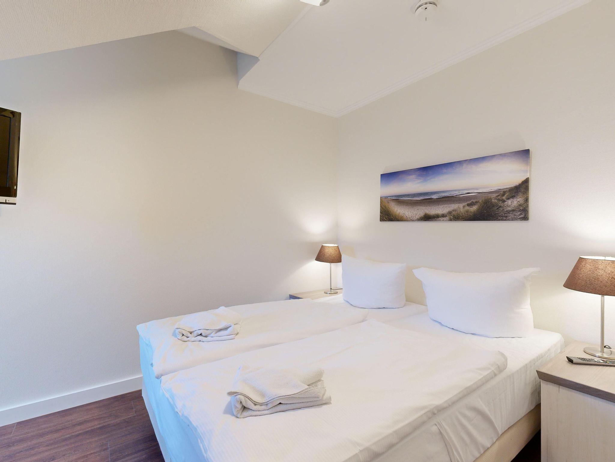 In der Ende der 90er Jahren neu gebauten Anlage gibt es großzügige Ferienwohnungen mit 1 Schlafzimmer, Internet und Terrasse oder Balkon. Je ein Außenstellplatz oder ein Tiefgaragen-Stellplatz stehen pro Wohnung zur Verfügung.
