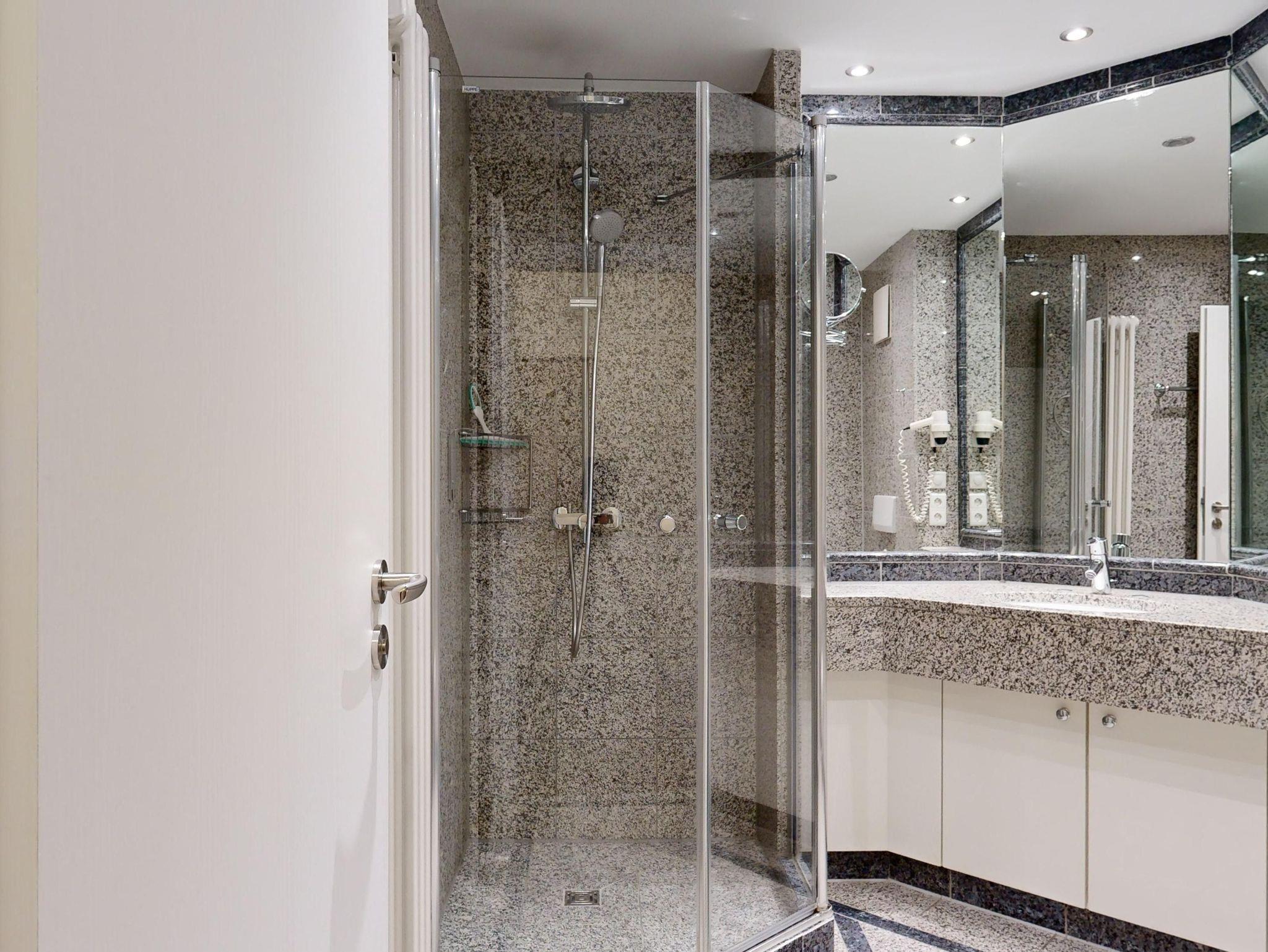 1 Badezimmer mit Dusche, WC und Föhn
