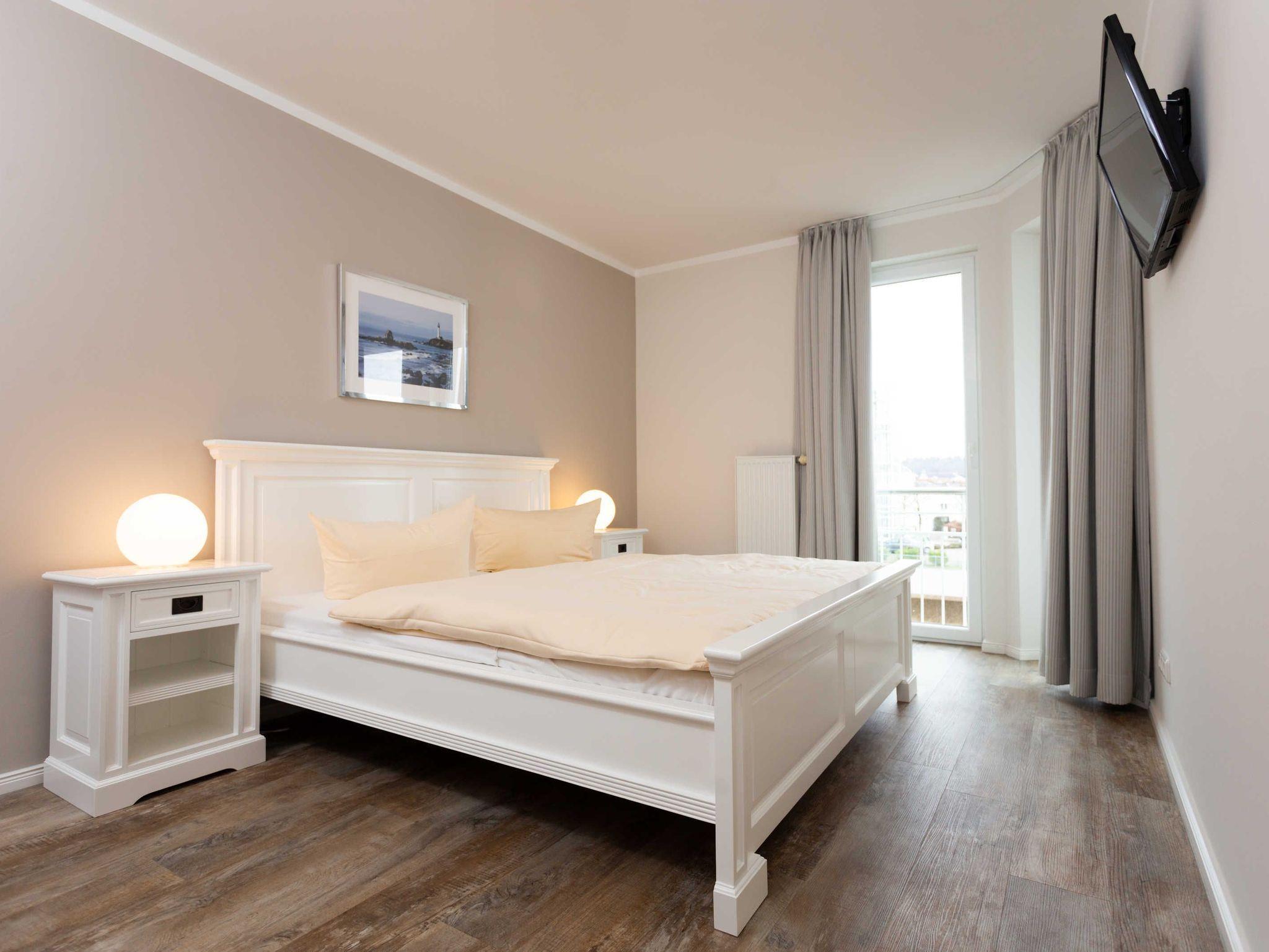 1 Schlafzimmer mit einem Doppelbett, Kleiderschrank und TV
