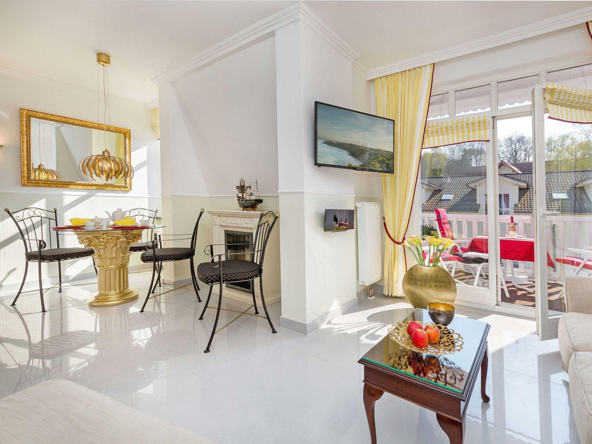 Das Appartement Gelbe Calla in Binz bietet gemütlichen Komfort, Balkon und moderne Ausstattung nur 300 m vom Strand entfernt.