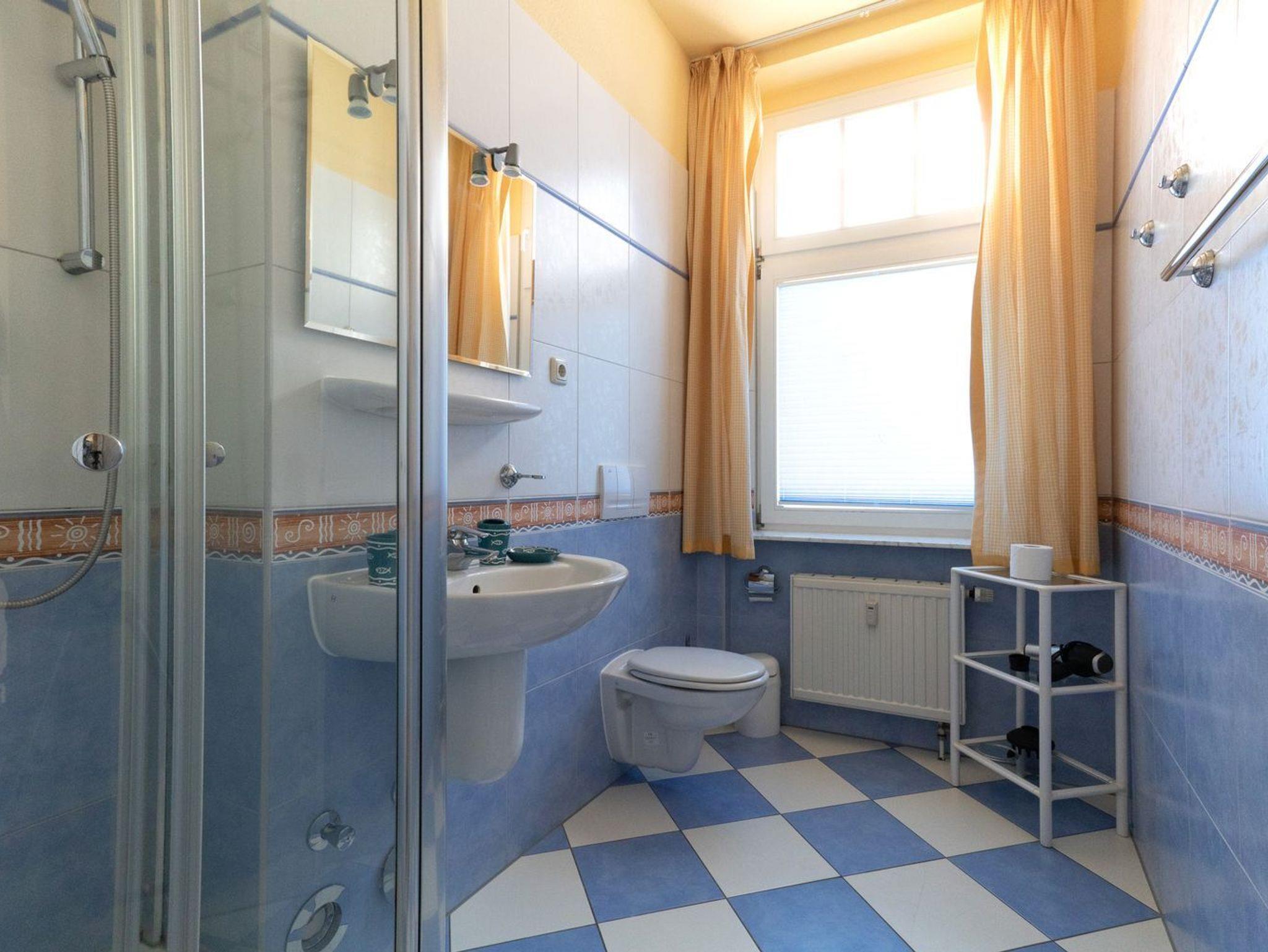 Ein Tageslichtbad mit Dusche vervollständigt die Einrichtung der Ferienwohnung.