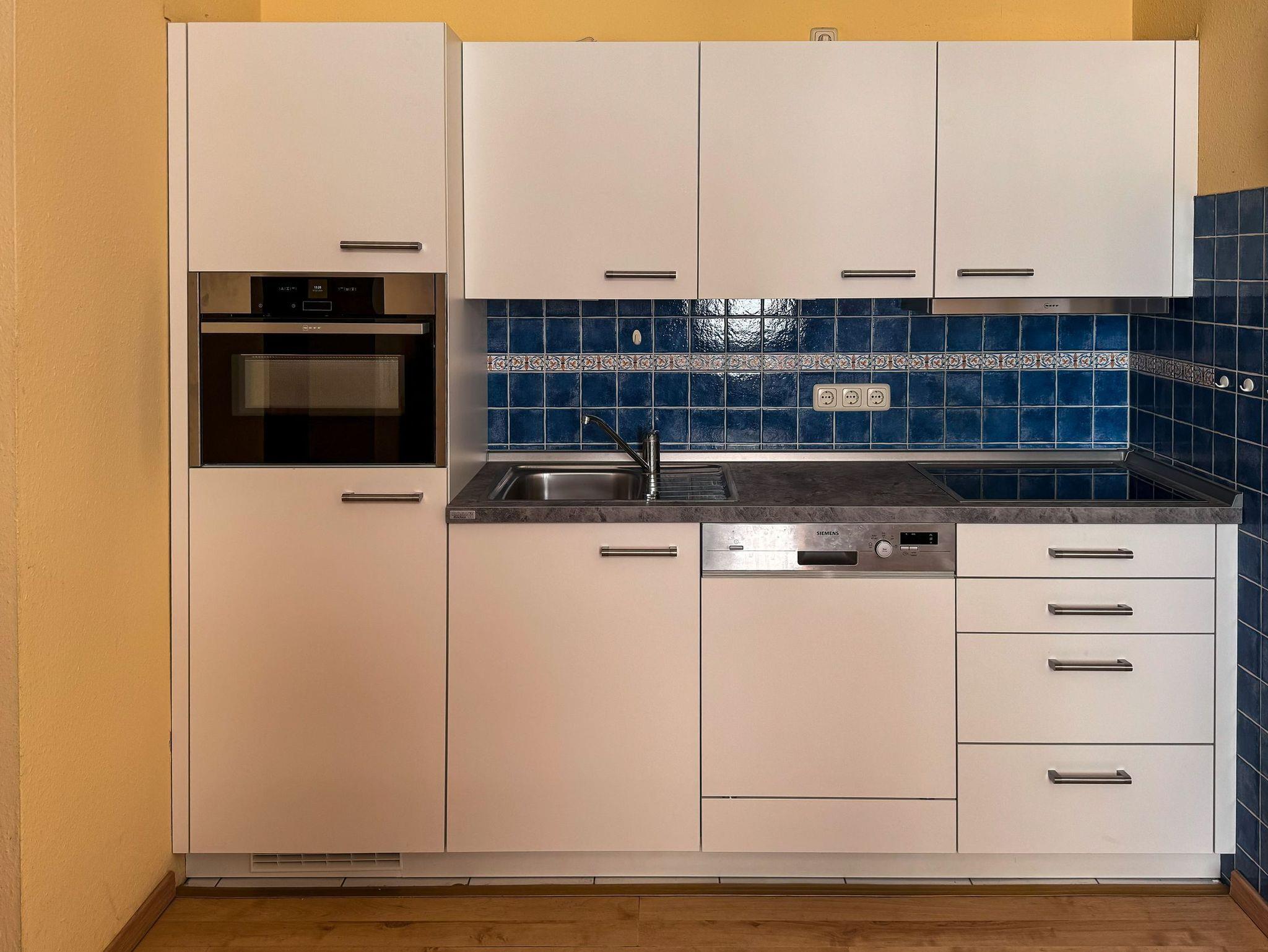 Die Küchenzeile mit Essbereich lädt zum Wohlfühlen ein. Sie ist umfangreich mit einem Herd, Kühlschrank, Geschirrspüler und allem weiteren notwendigen Utensilien ausgestattet.