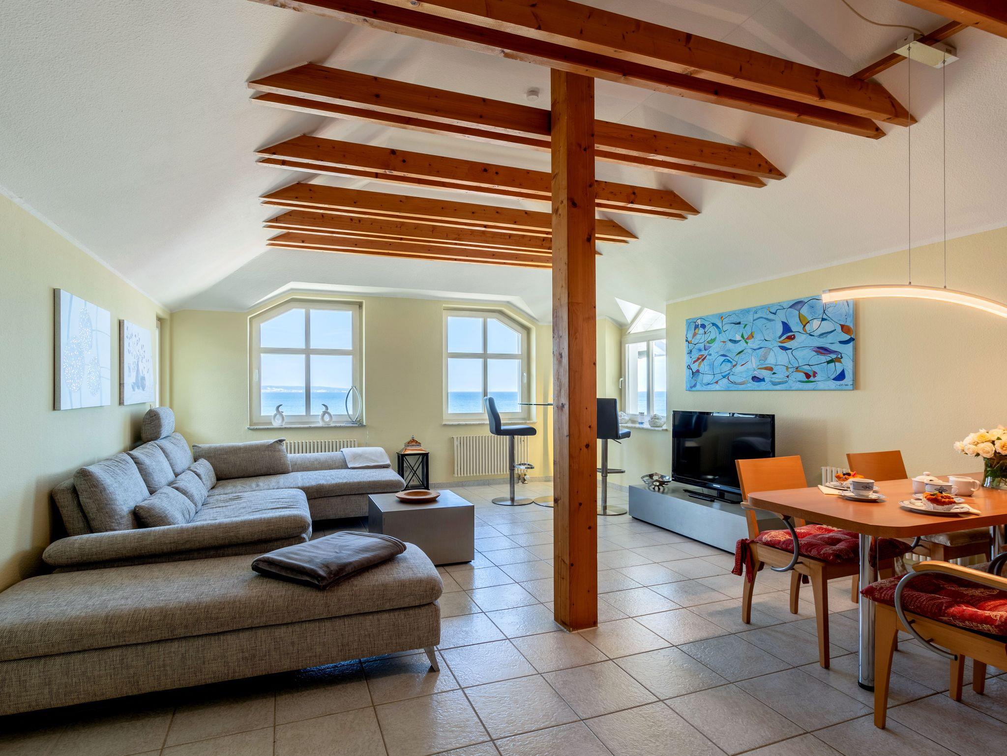 Das 2-Raum- Apartment befindet sich im Dachgeschoss der Villa Strandeck und ist für 2 Erwachsene und 1 Kind bis 13 Jahre.