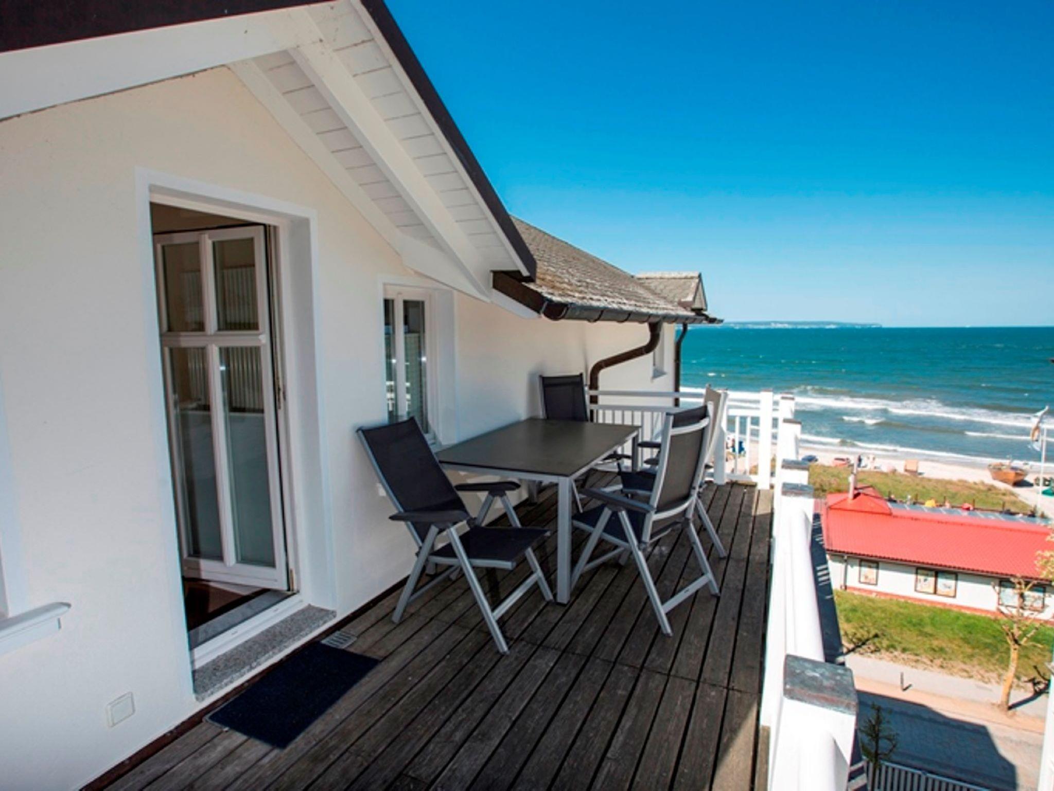 Die Villa Strandeck in Binz bietet ein Dachgeschoss-Apartment mit Ostseeblick, Balkon und direkter Strandnähe für entspannte Urlaubstage.