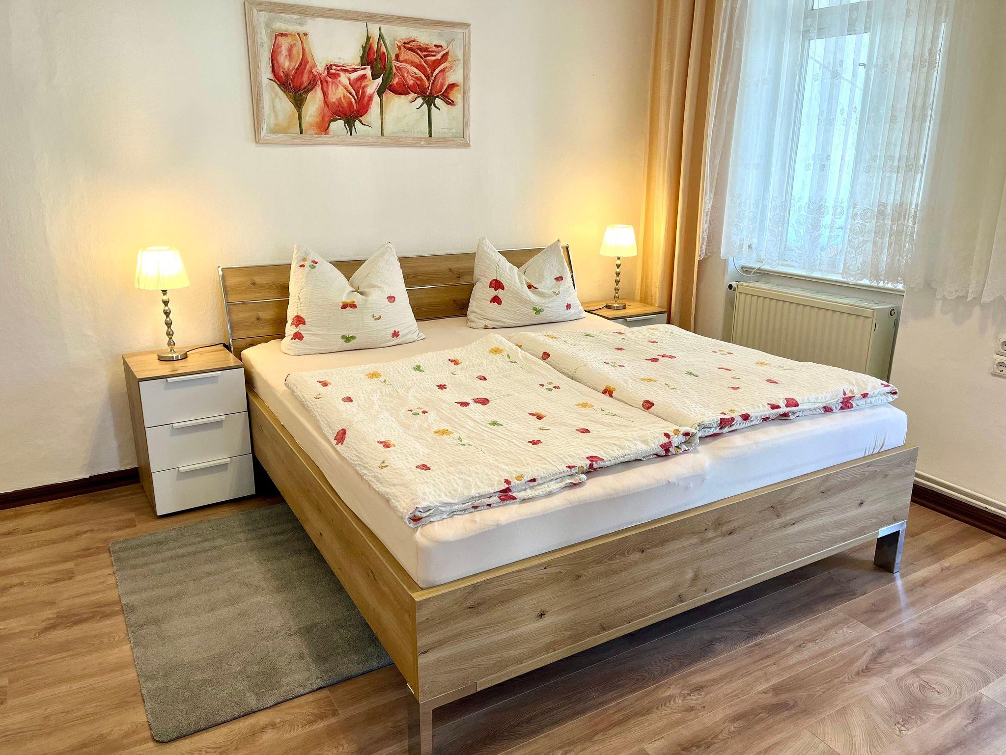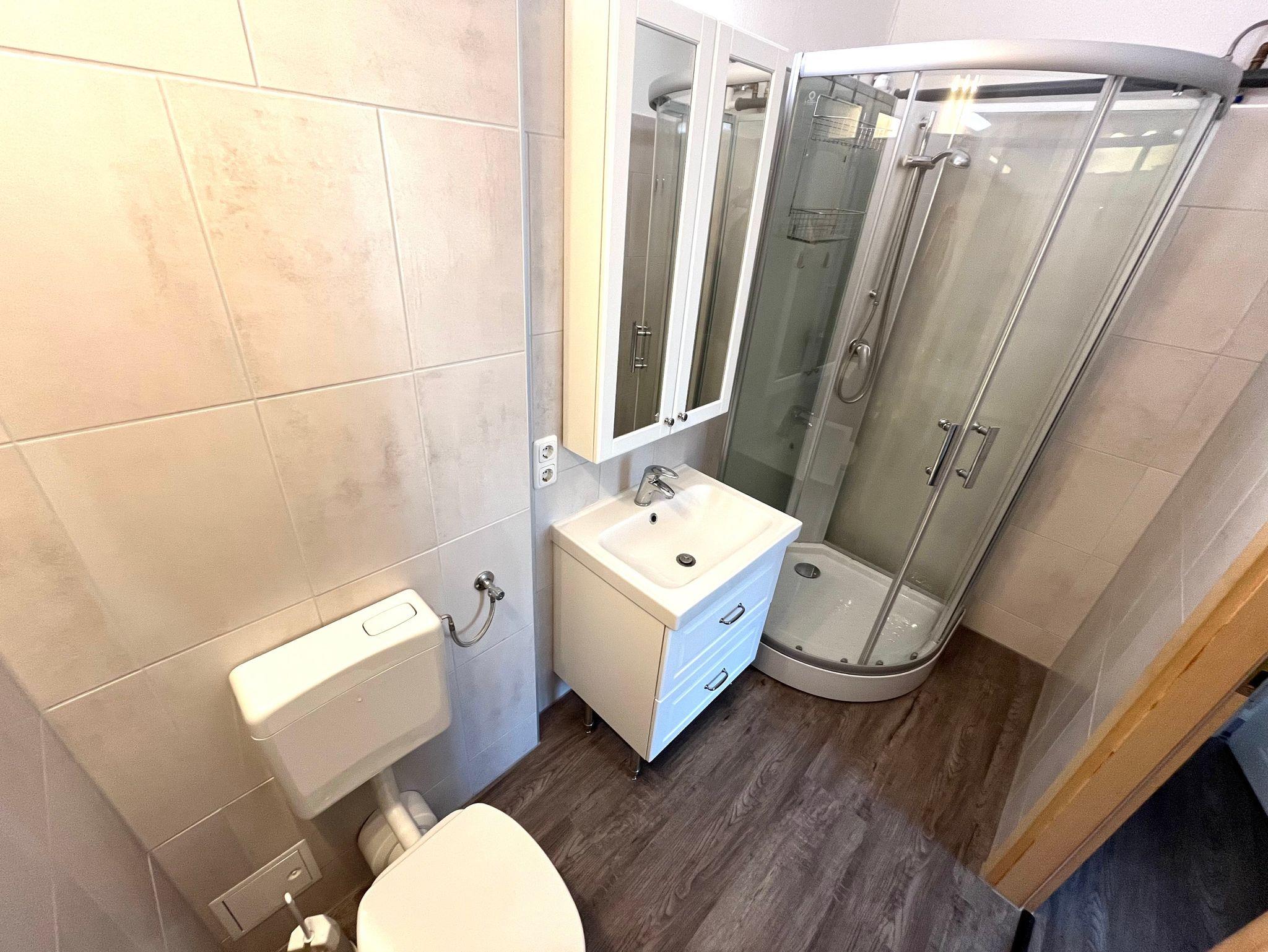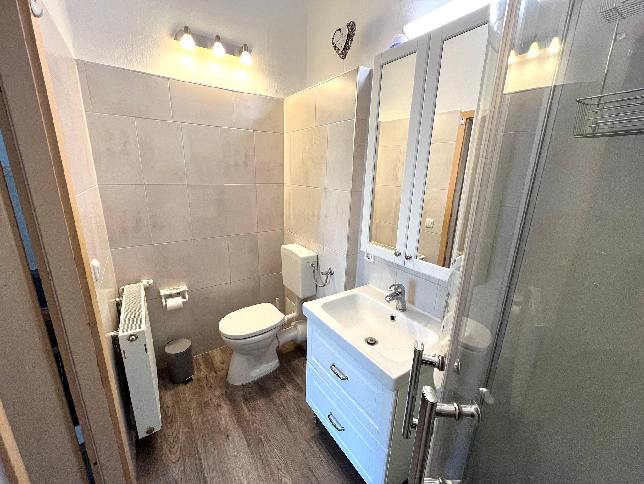 Die helle 2-Raum Ferienwohnung befindet sich im 1 Obergeschoss. Am gemütlichen Wohnzimmer lädt ein geschlossener Balkon zum verweilen ein. Die Küche ist zweckmäßig mit Kühlschrank, 2 Plattenherd, Mikrowelle und diversen Kleinstutensilien ausgestattet und wurde 2020 erneuert. Im Schlafzimmer befindet sich ein Doppelbett mit getrennter Matratze (1,80 x 2,00). Badezimmer mit WC und Dusche.