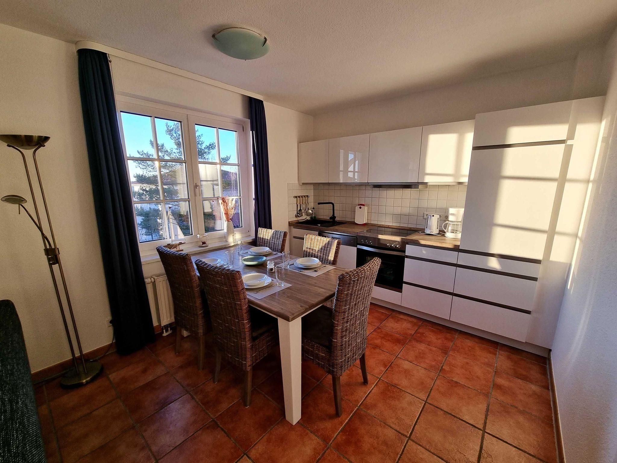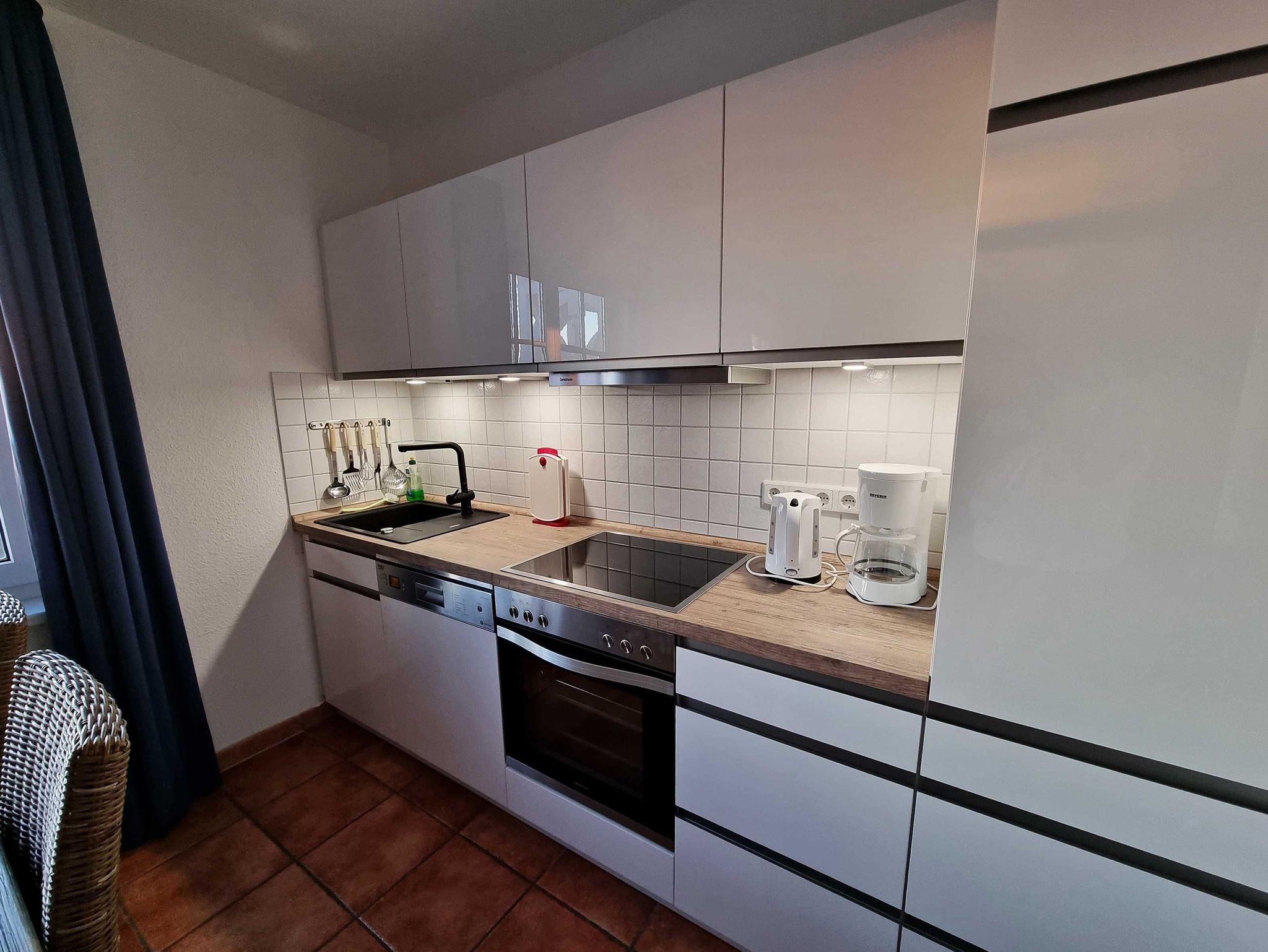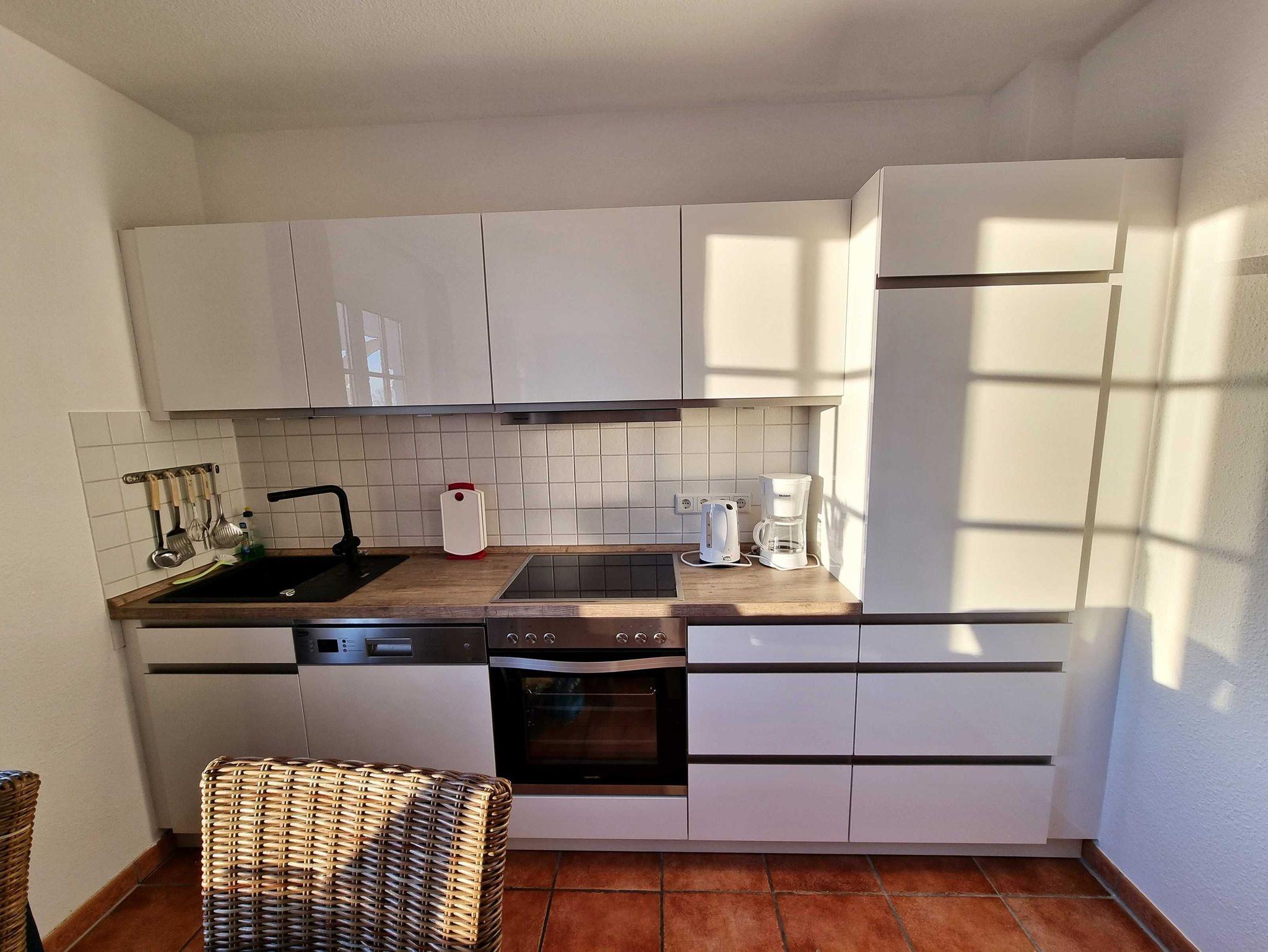 Das Wohnzimmer ist mit einer gemütlichen Schlafcouch, Sesseln und einem Flachbild TV eingerichtet. In der offenen Küche mit Essbereich ist alles für Ihren Urlaub vorhanden. Ein 4-Platten Herd mit Backofen, Kühlschrank mit Gefrierfach, Spülmaschine,Filterkaffeemaschine, Toaster, Wasserkocher, und reichlich Küchenutensilien sind selbstverständlich. Das Schlafzimmer ist mit einem gemütlichen Doppelbett und Kleiderschrank eingerichtet. Das Bad ist mit einer Dusche und WC ausgestattet.