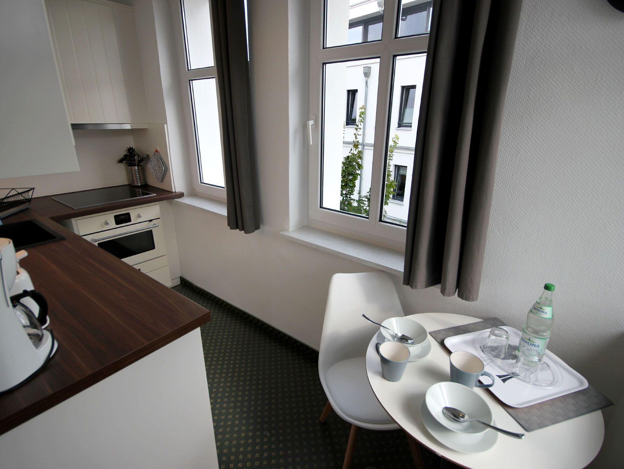 Gemütliche 1-Raum-Wohnung in Binz mit Strandnähe, moderner Küche und eigenem Parkplatz.