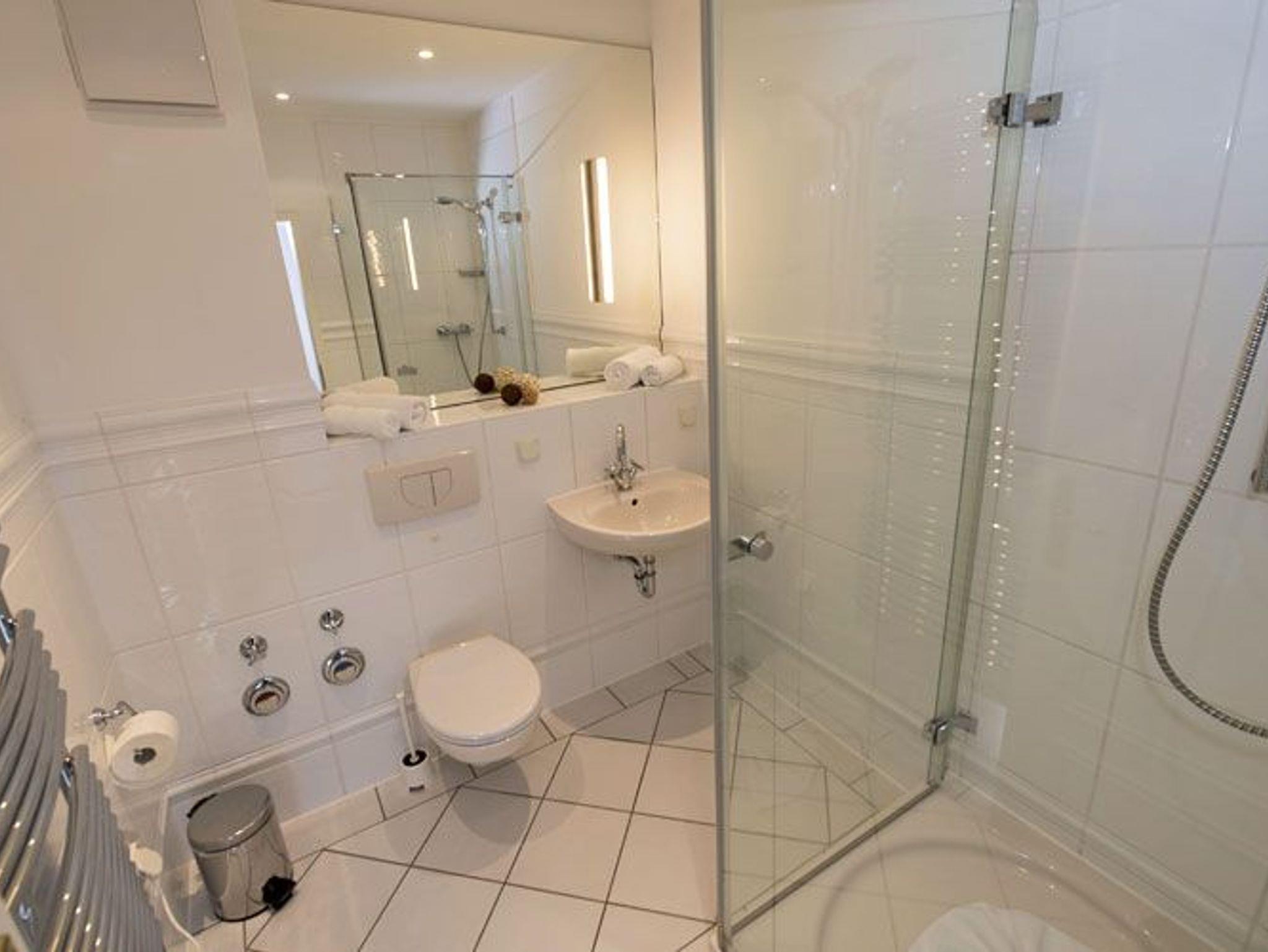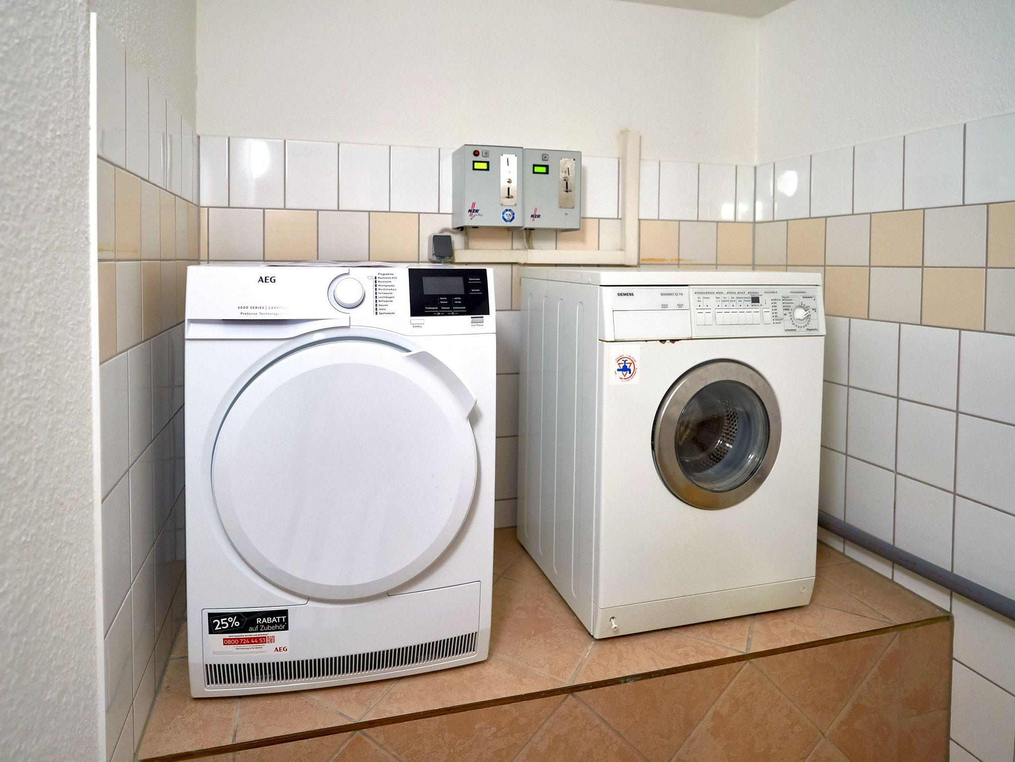 Ein Duschbad und ein Bad mit Badewanne sind vorhanden. Zusätzlich können Sie im Haus eine gemeinschaftliche Sauna und eine Waschmaschine und ein Wäschetrockner gegen Gebühr benutzen.